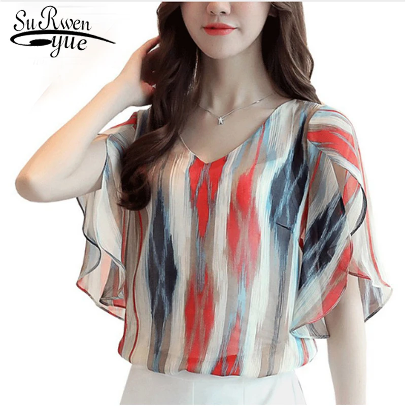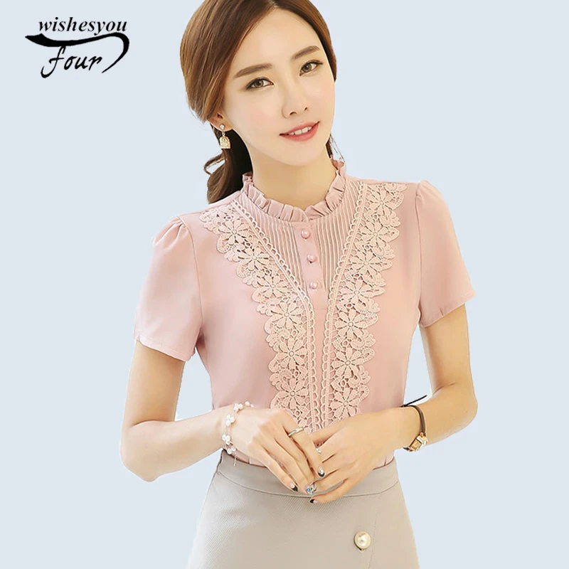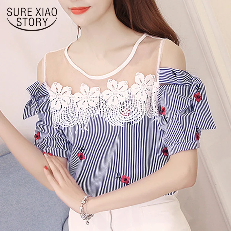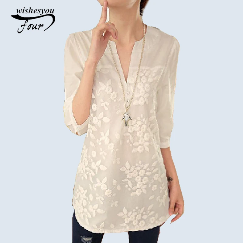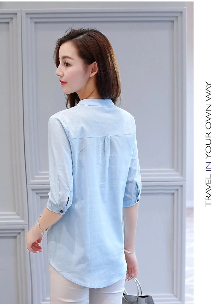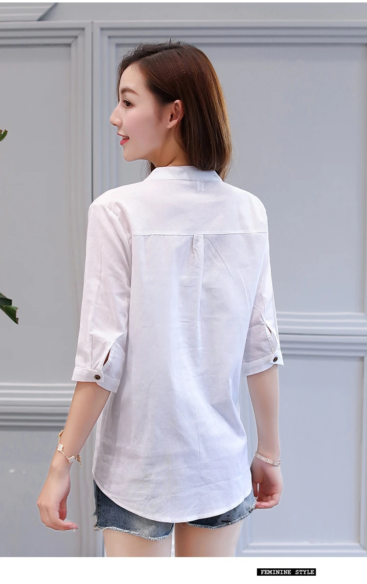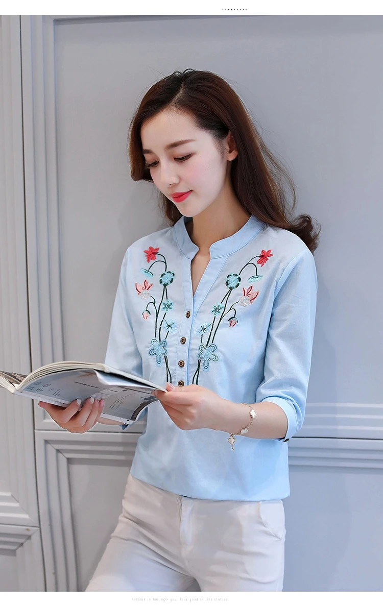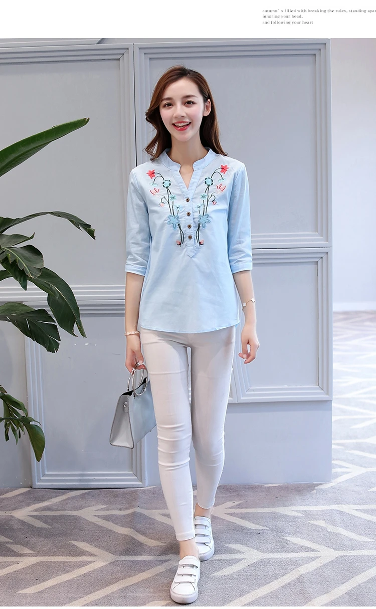 2018 new summer elegant fashion embroidered office lady shirt V-neck half sleeves casual loose women blouse top blusas 812F 30