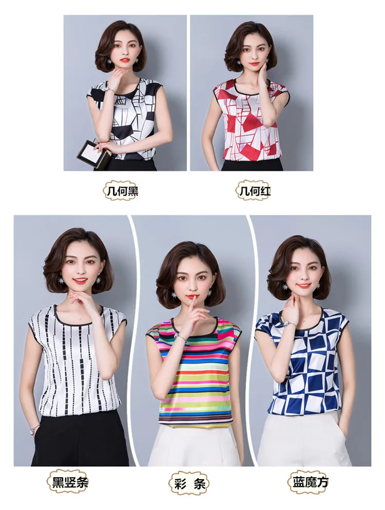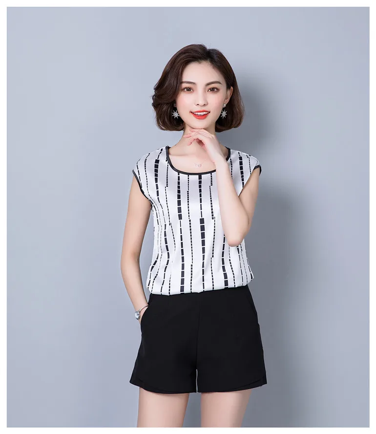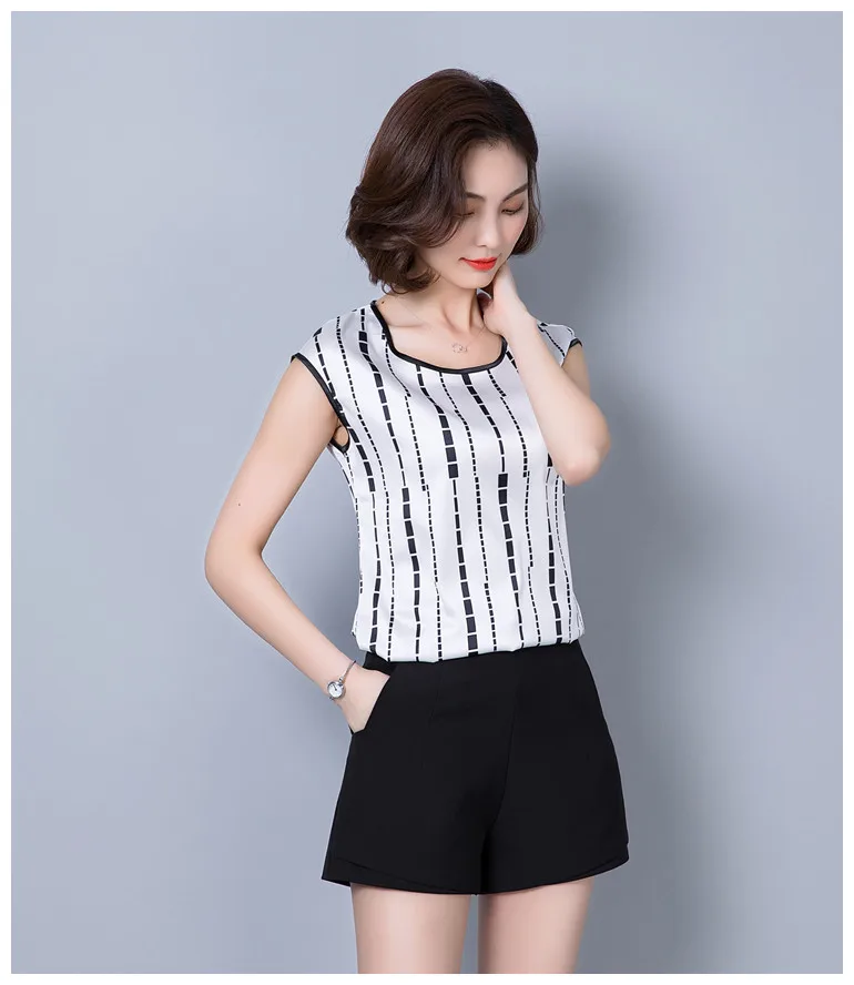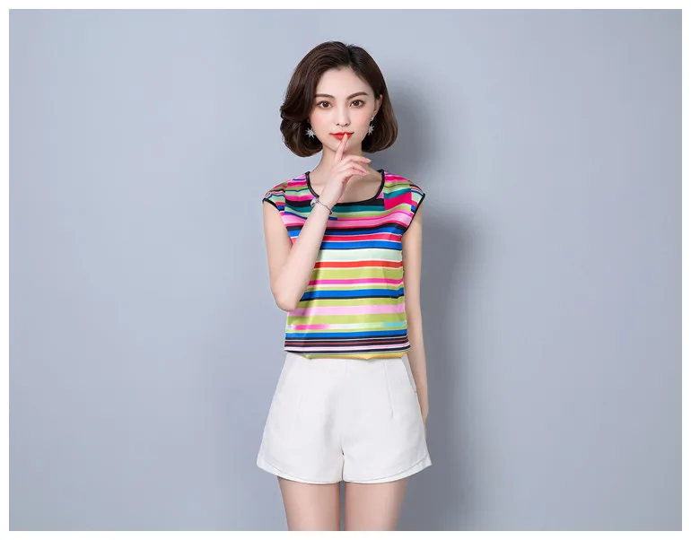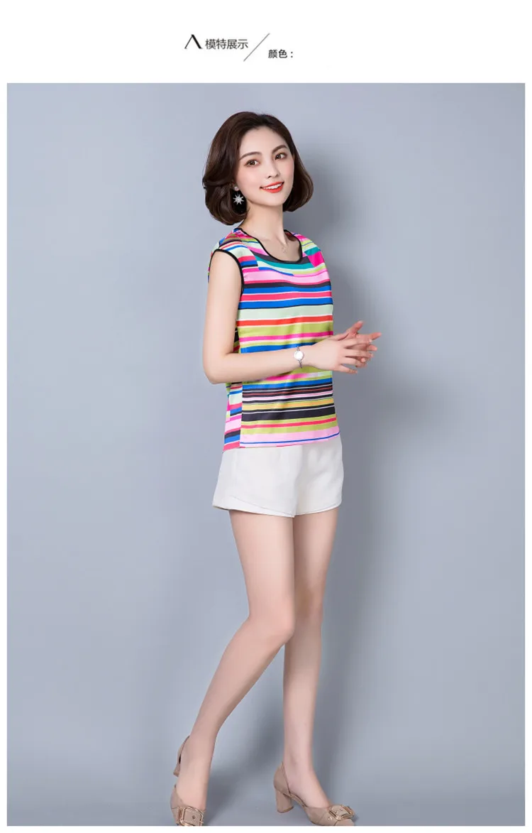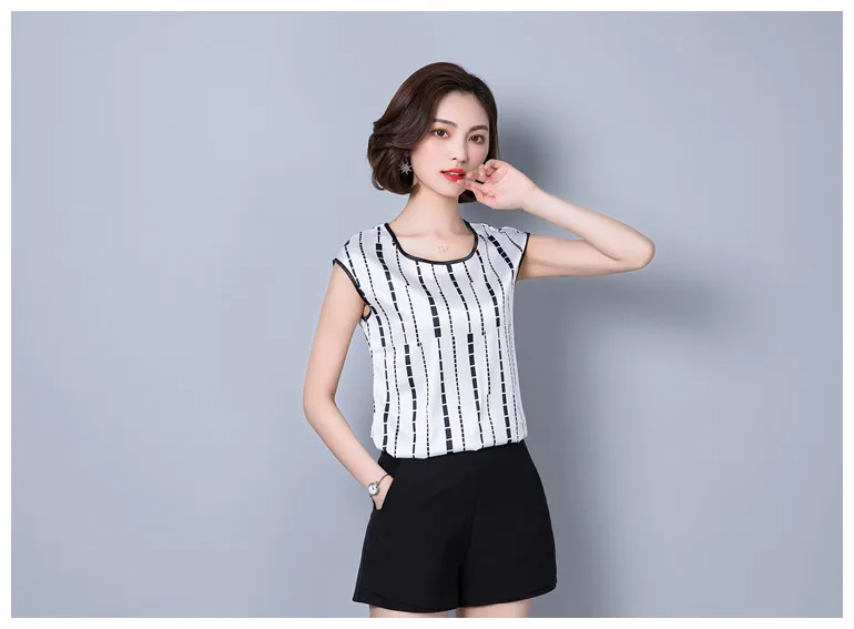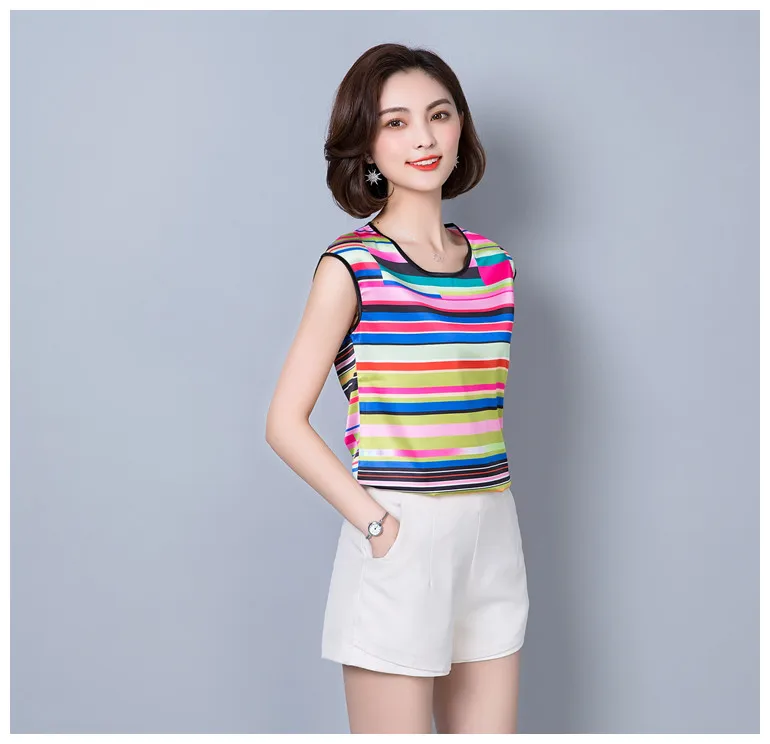 2018 new summer sleeveless chiffon women blouse shirt geometric striped women’s clothing plus size women tops blusas D733 30