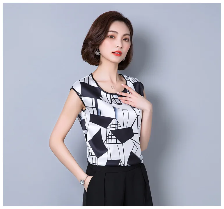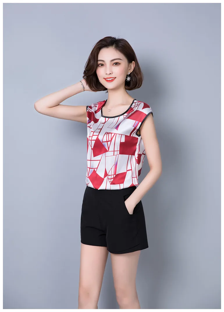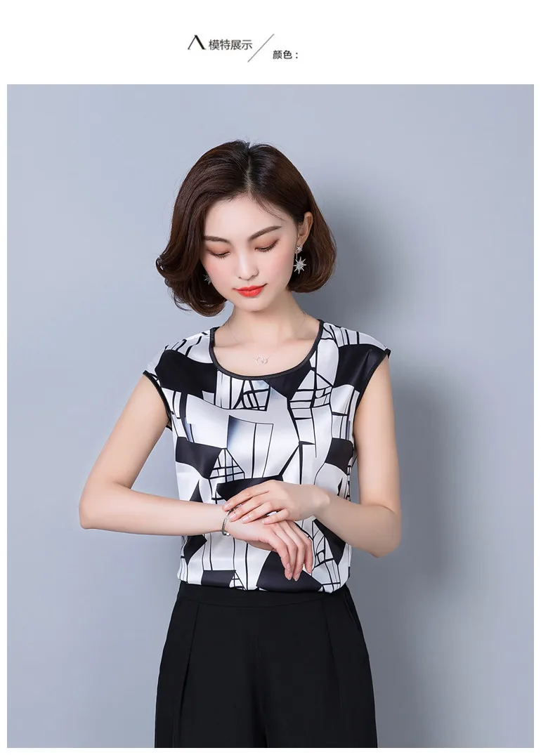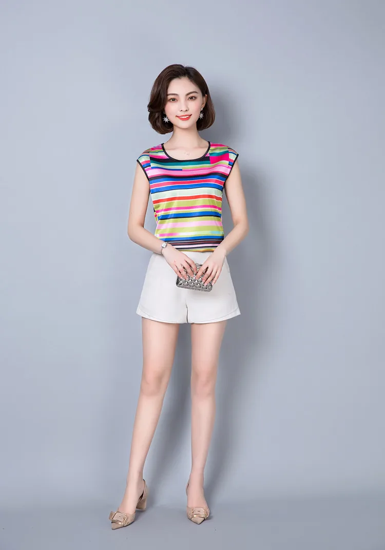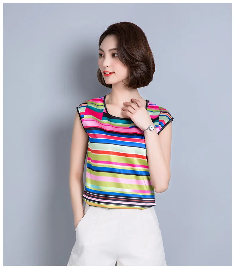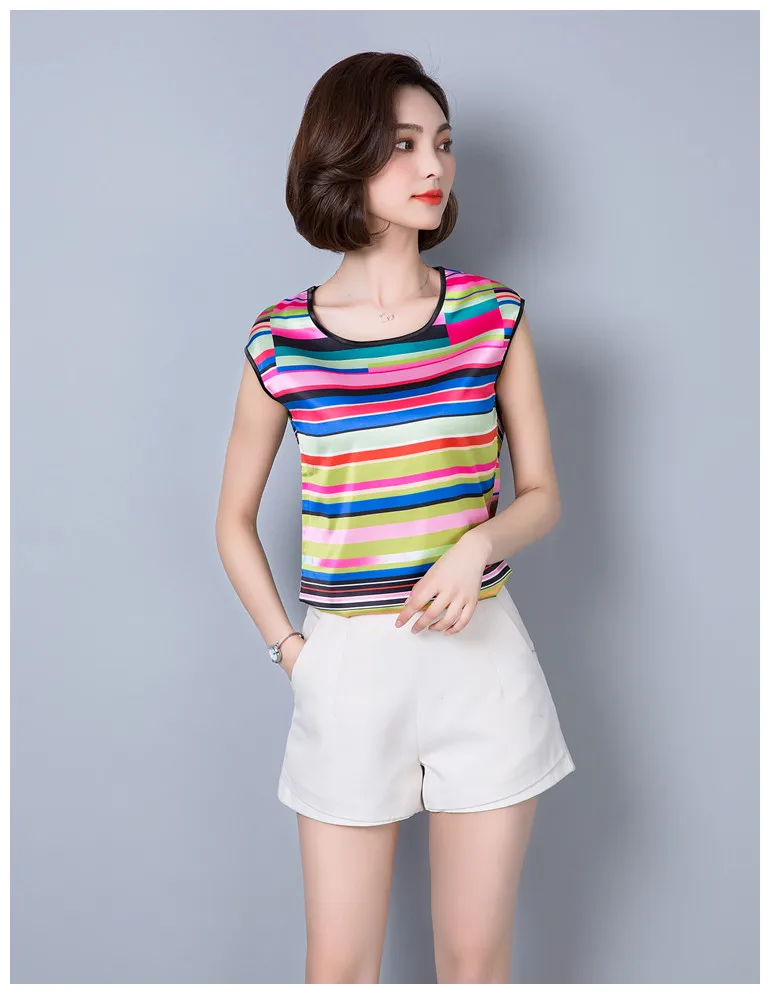 2018 new summer sleeveless chiffon women blouse shirt geometric striped women’s clothing plus size women tops blusas D733 30