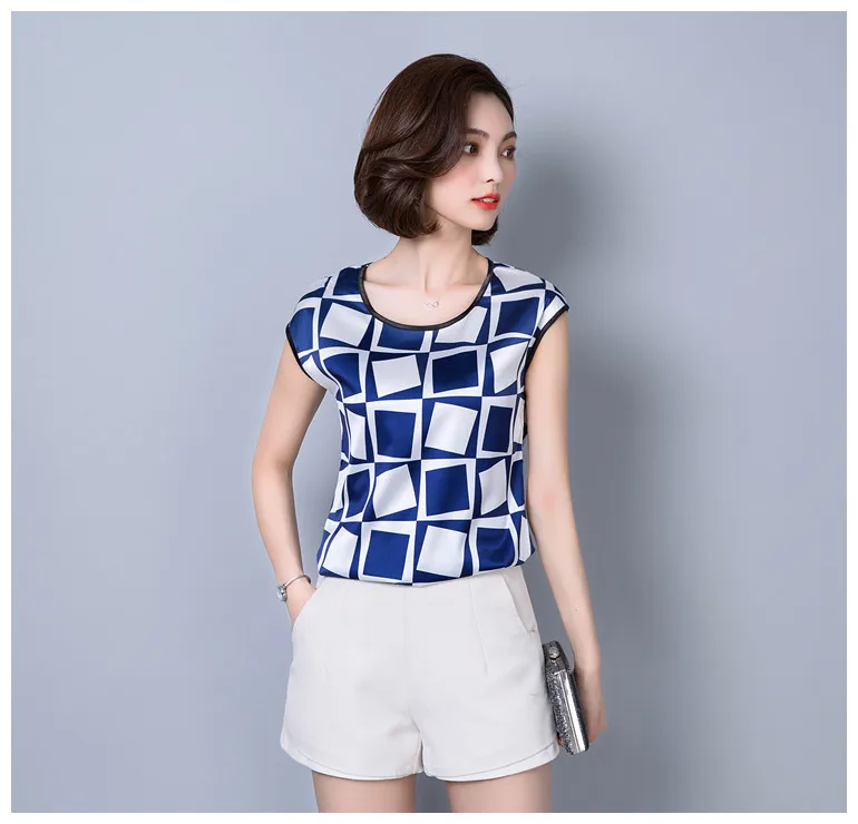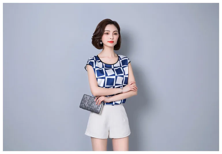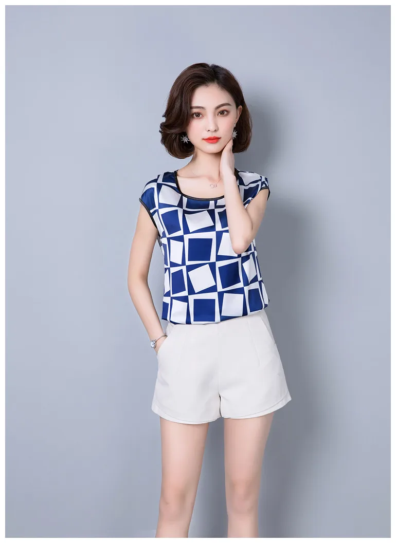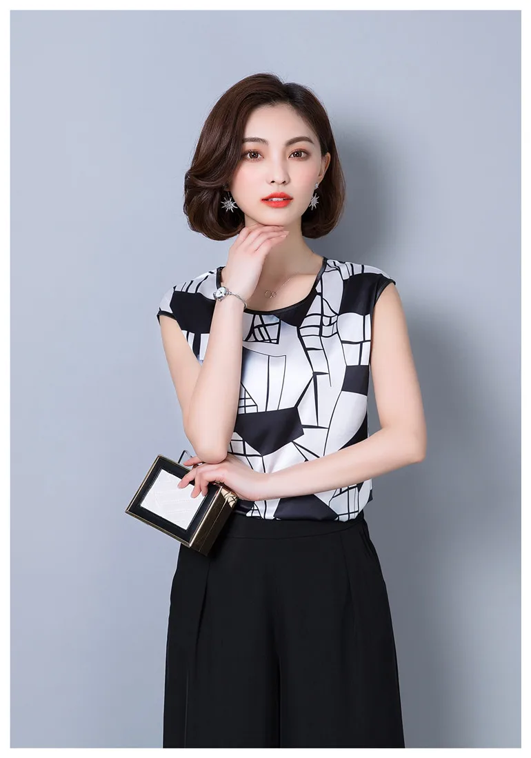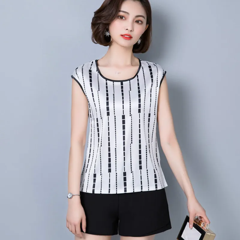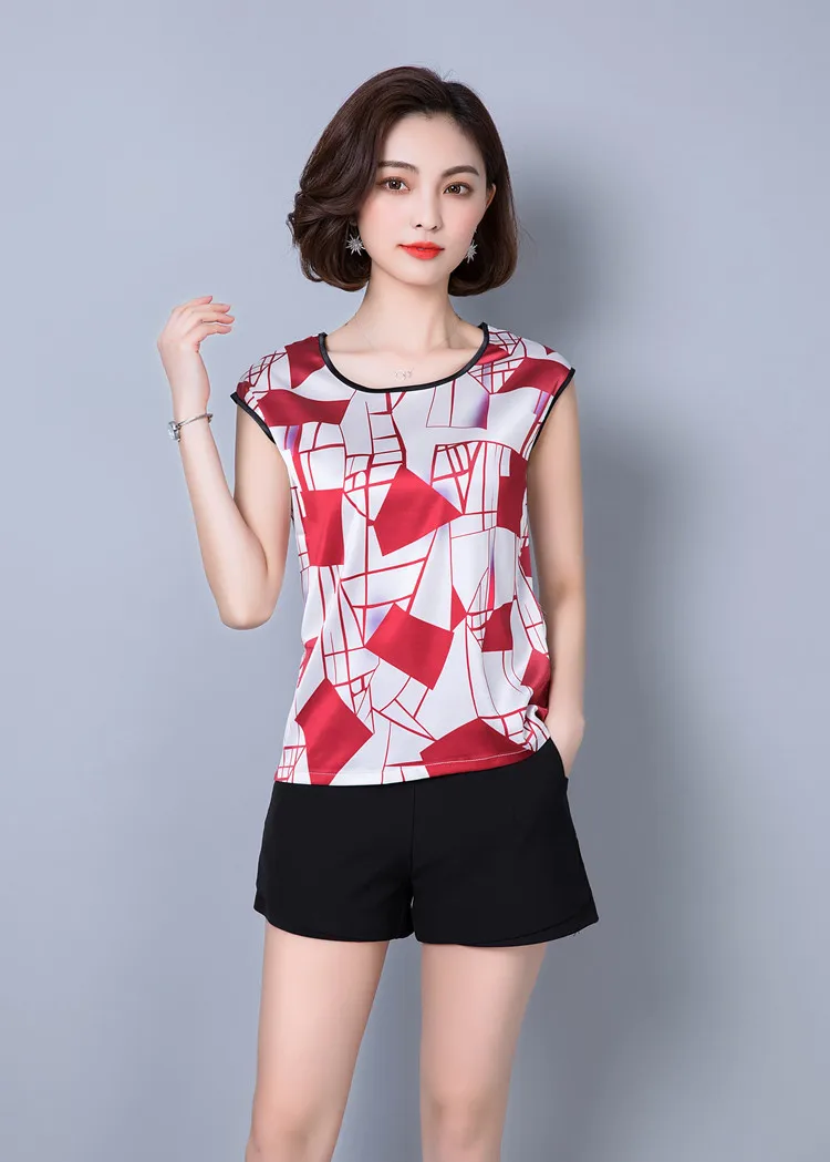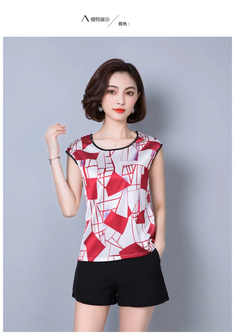 2018 new summer sleeveless chiffon women blouse shirt geometric striped women’s clothing plus size women tops blusas D733 30