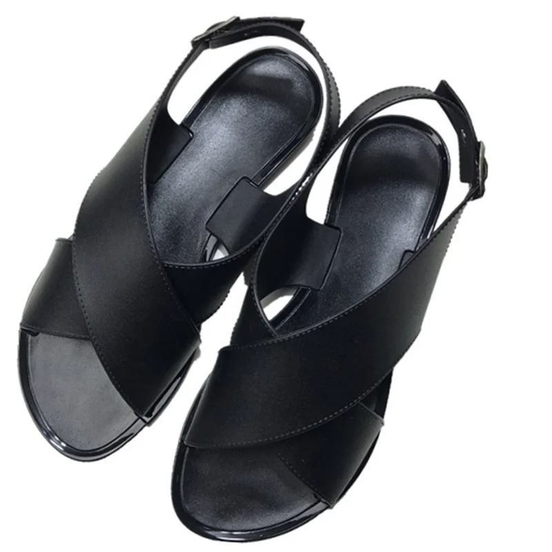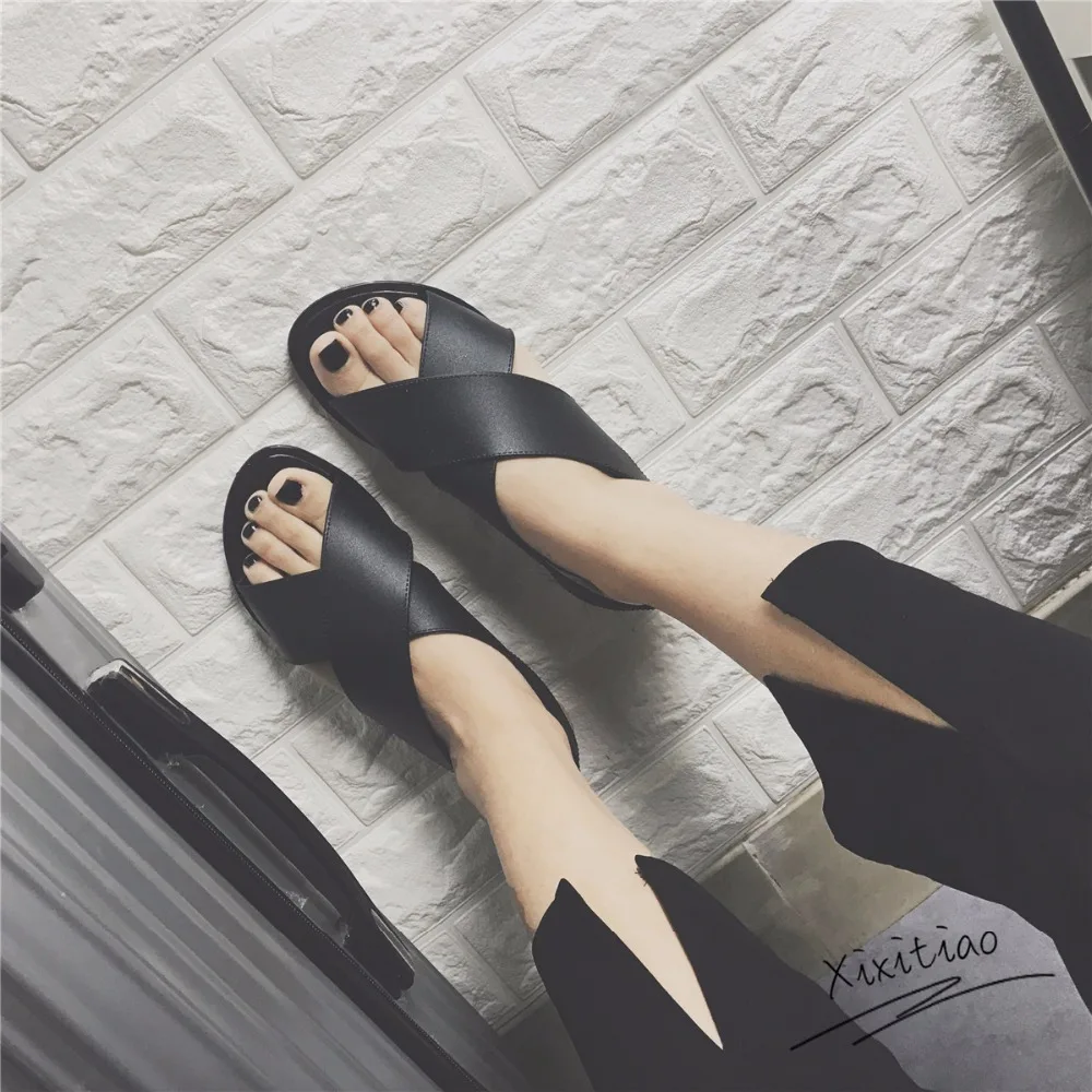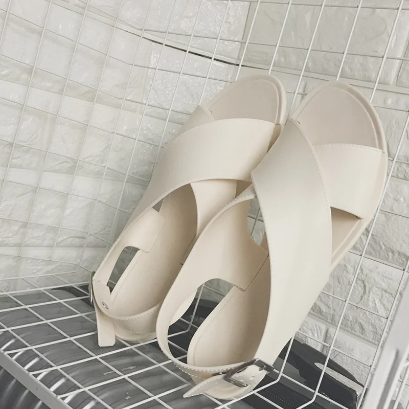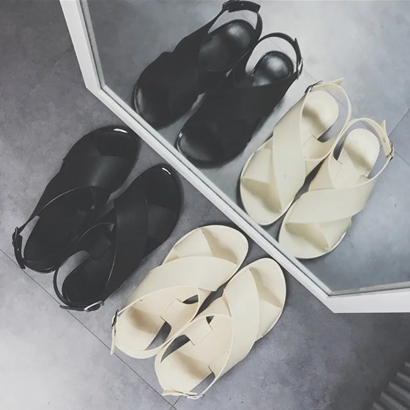 2018 New Summer Woman Fashion Simple Harajuku Style Sandals Student Flat Cross Strap Solid Sandals Beach Shoes Flat With Shoes