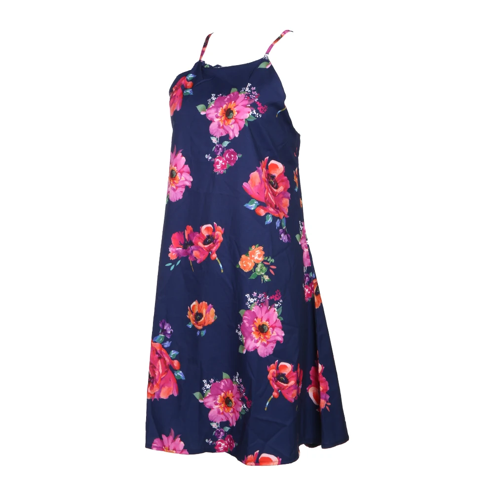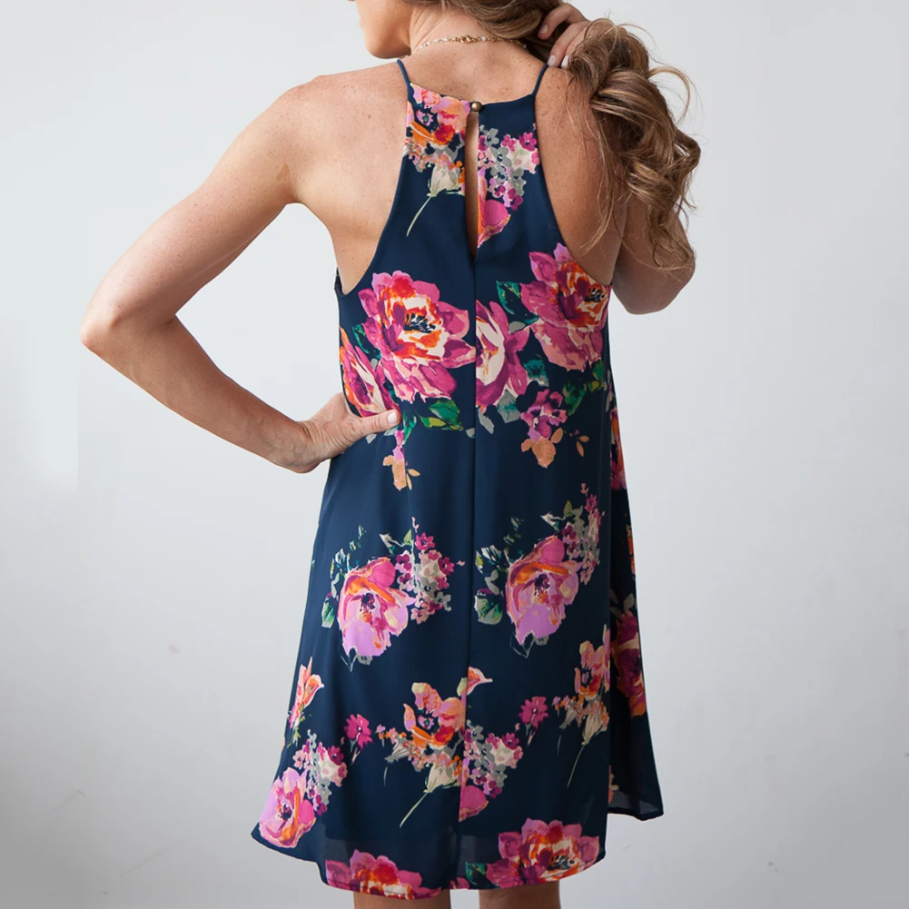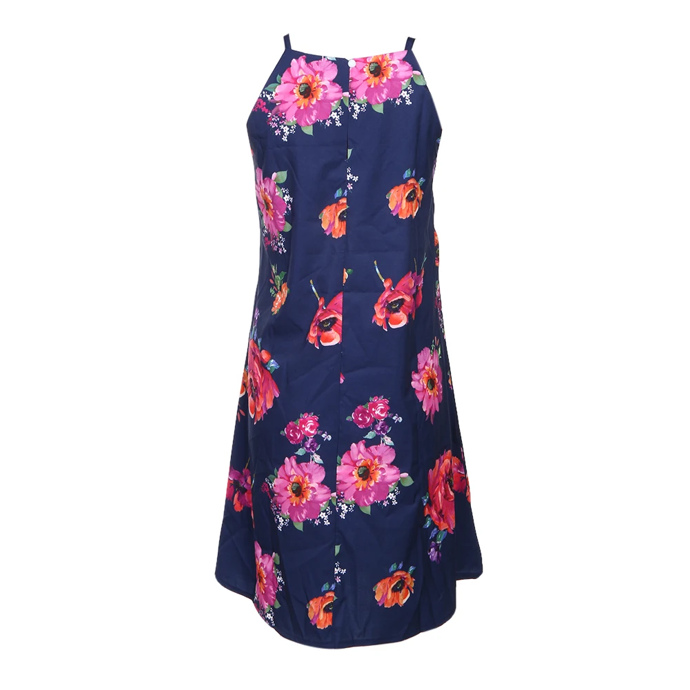 2018 New Summer Women Elegant Flower Printed Sleeveless Ruffle Spaghetti Strap Casual Party Dress