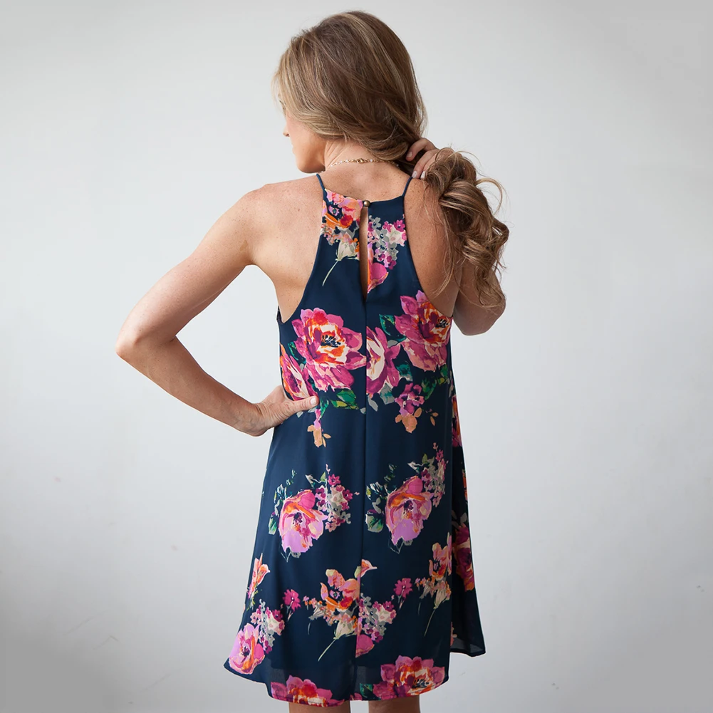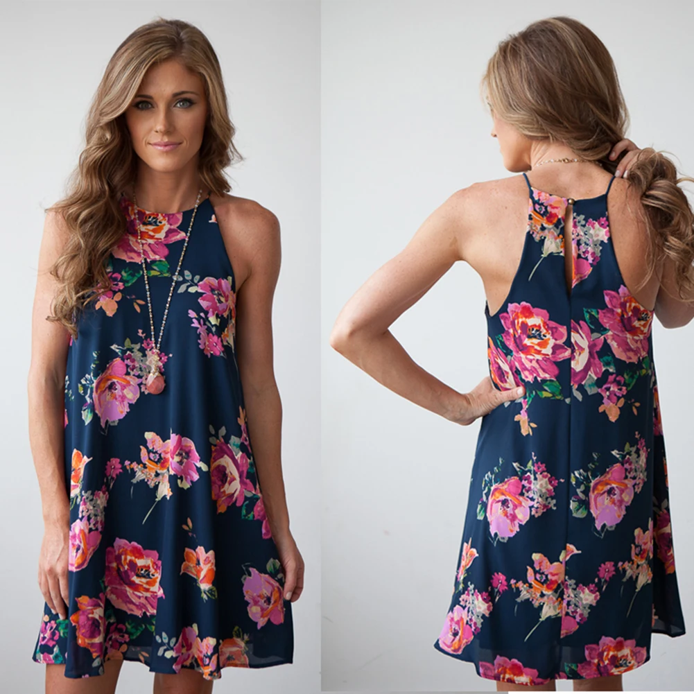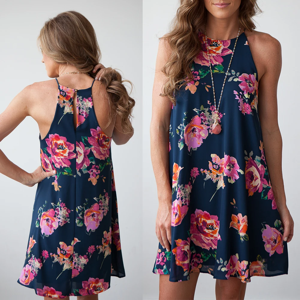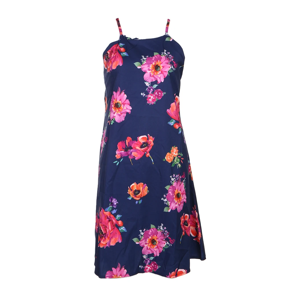 2018 New Summer Women Elegant Flower Printed Sleeveless Ruffle Spaghetti Strap Casual Party Dress