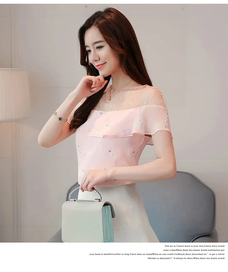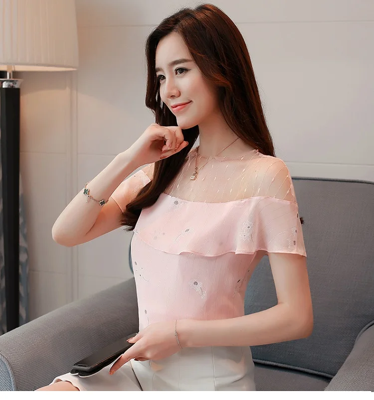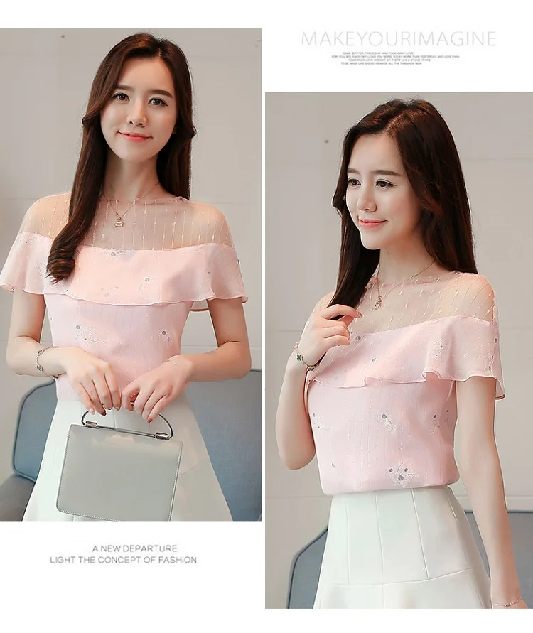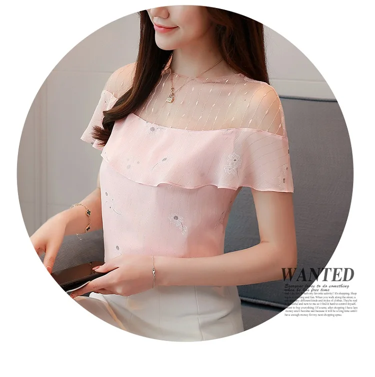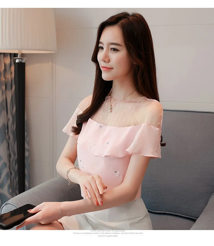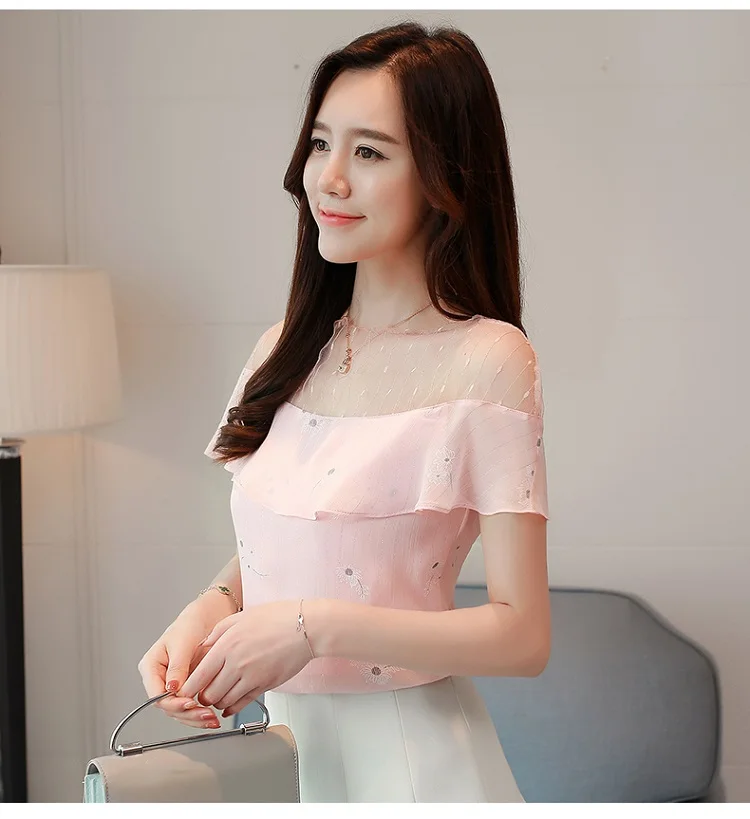 2018 new summer women tops short sleeved blouses chiffon ruffles patchwork pink blouses sweet lady casual women clothing 0228 40