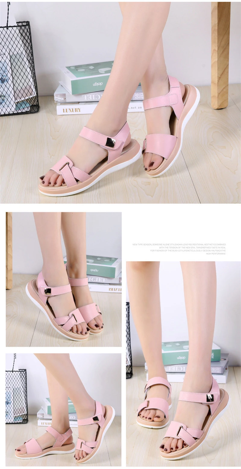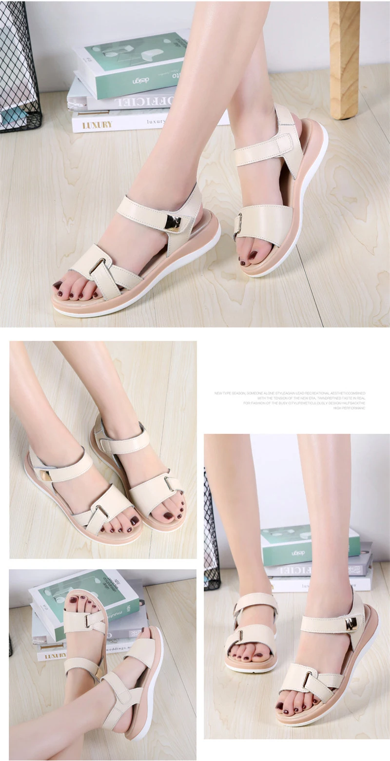 2018 New Summer Women’s Sandals Leather Sandals Female Size Leather Sandals Open toe Fish Mouth Casual Shoes Slippers JDD104