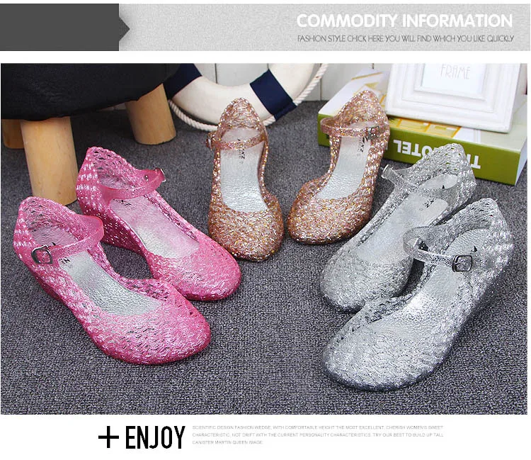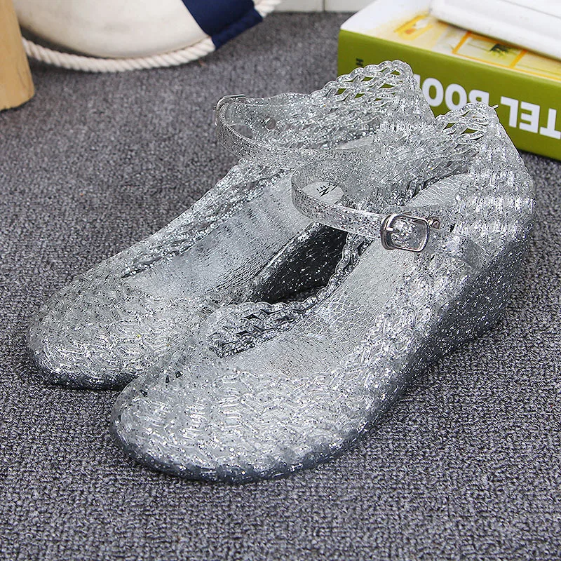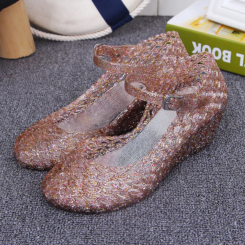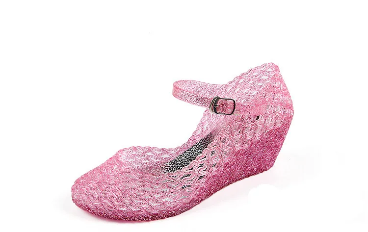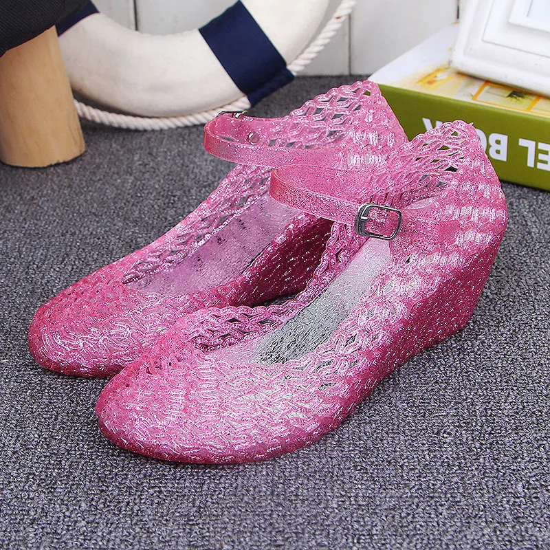 2018 New Summer Women’s Wedge Jelly Shoes Mary Jane Shoes Comfortable Women Sandals Wedges Sandals High Heels Glass Slipper