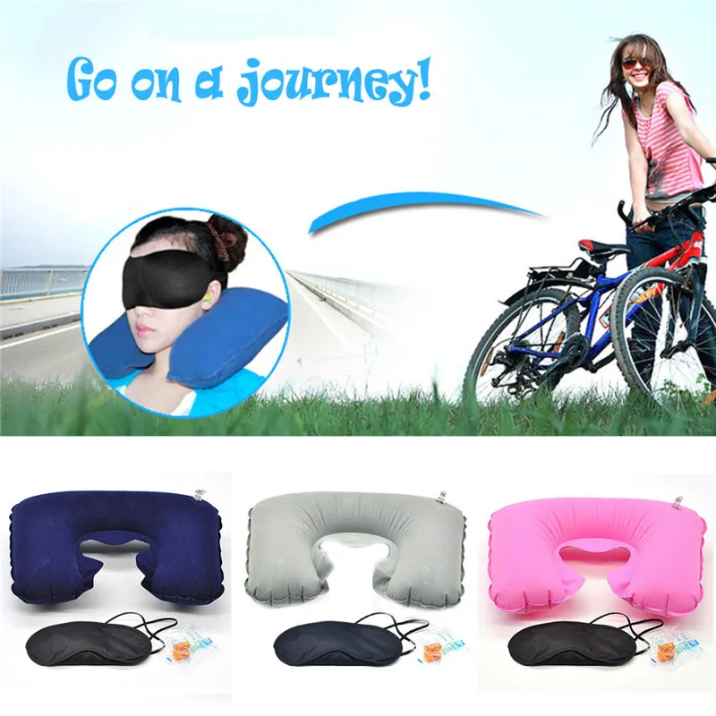 2018 New U-Shape Neck Pillow Travel Pillow Flight Car Pillow Inflatable Pillow Neck U Rest Air Cushion+ Eye Mask + Earbuds LST