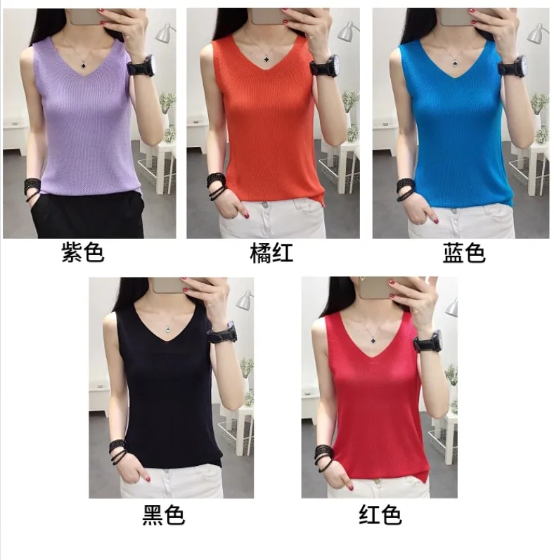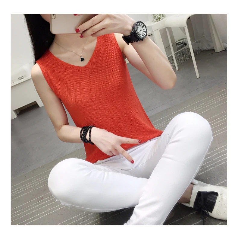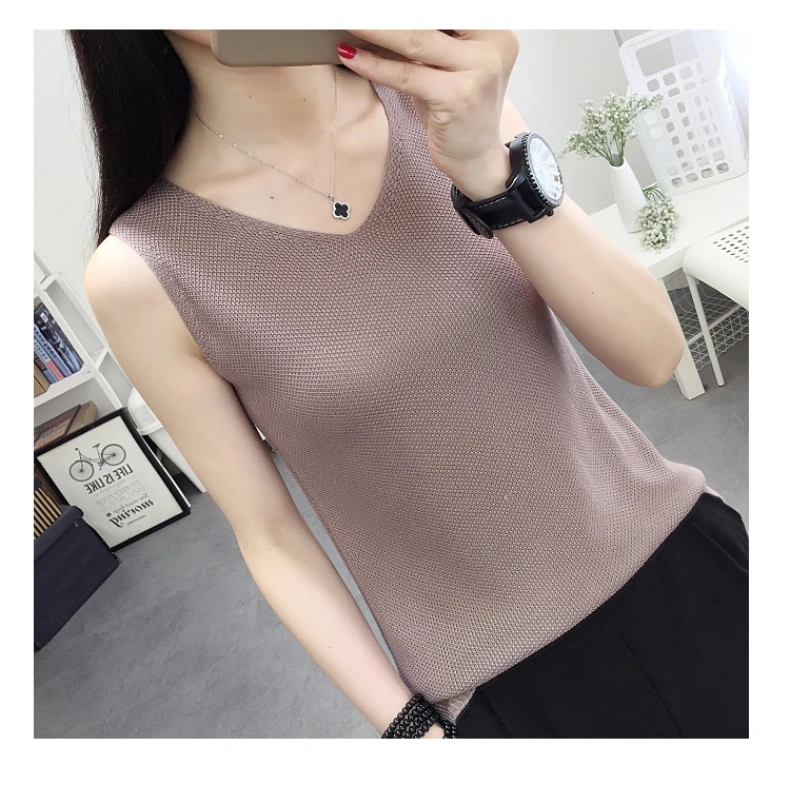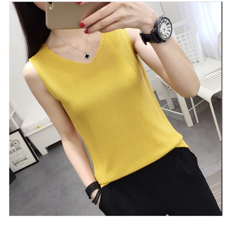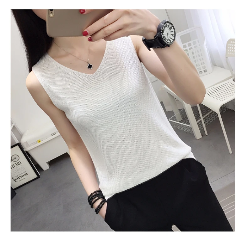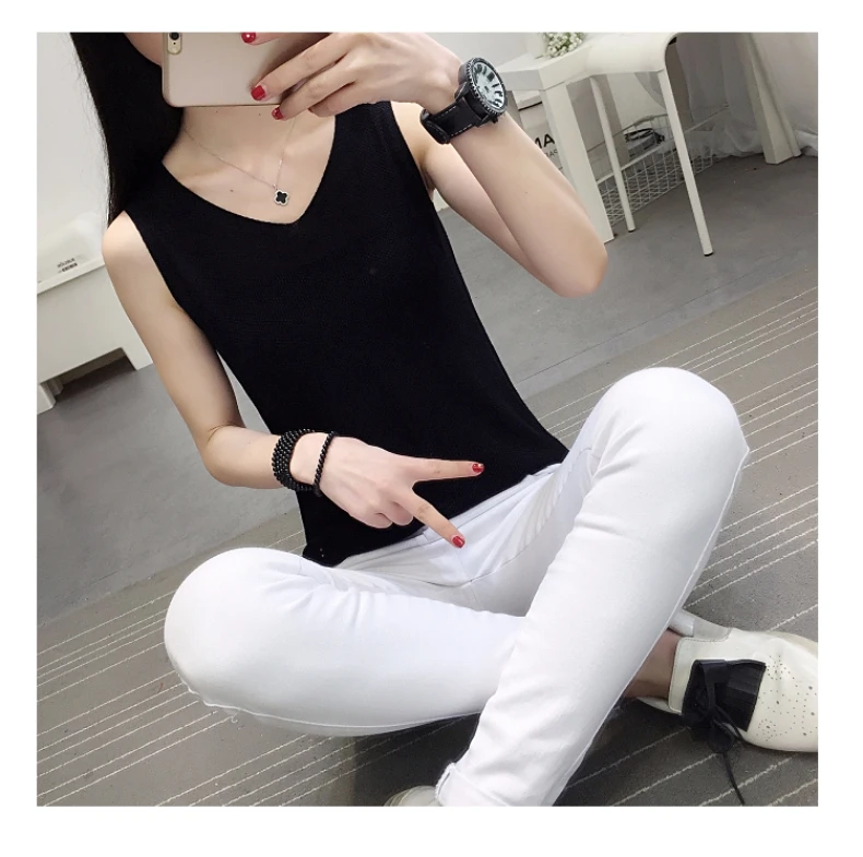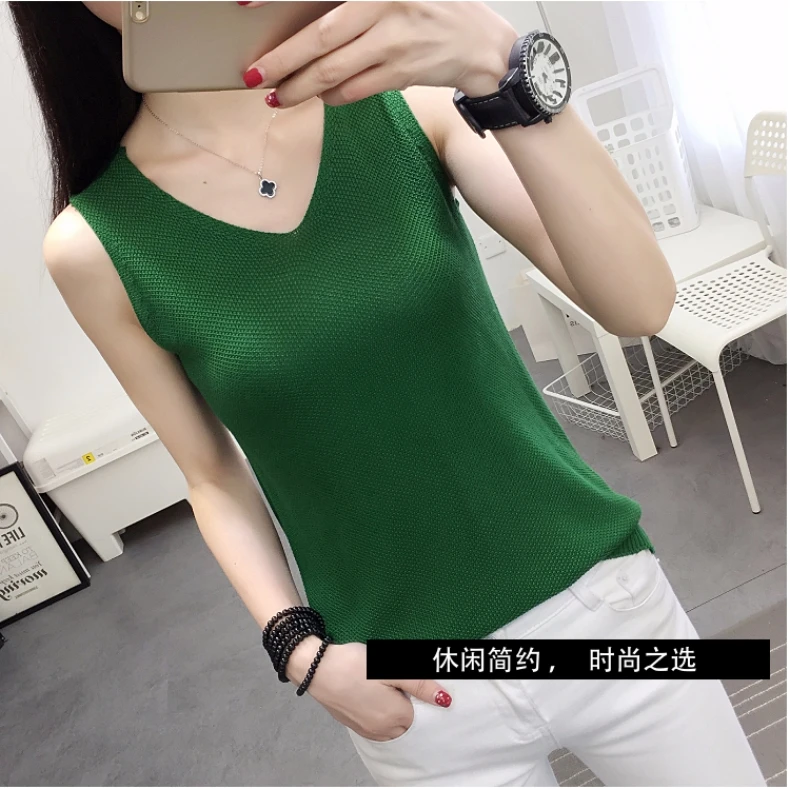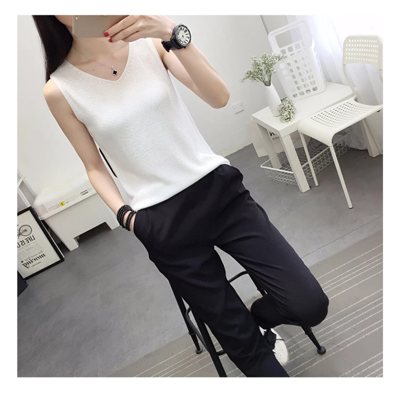 2018 NEW vest outside loose inside take han edition v-neck knitting women sleeveless T-shirt render unlined upper garment jacket