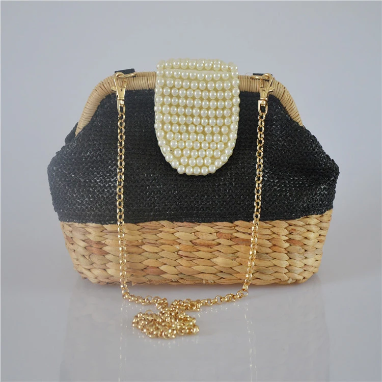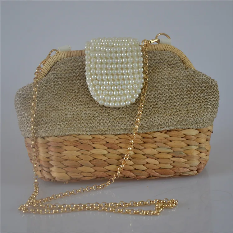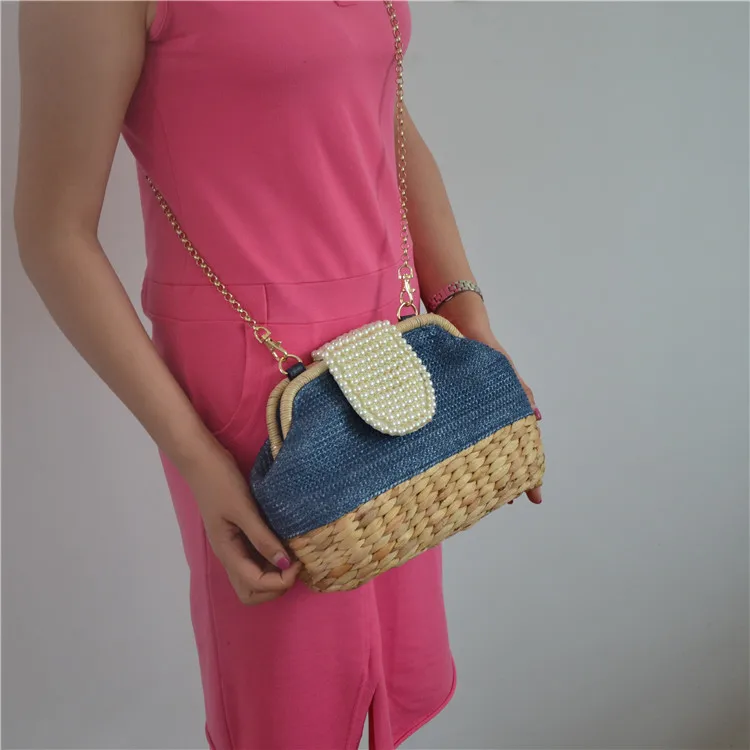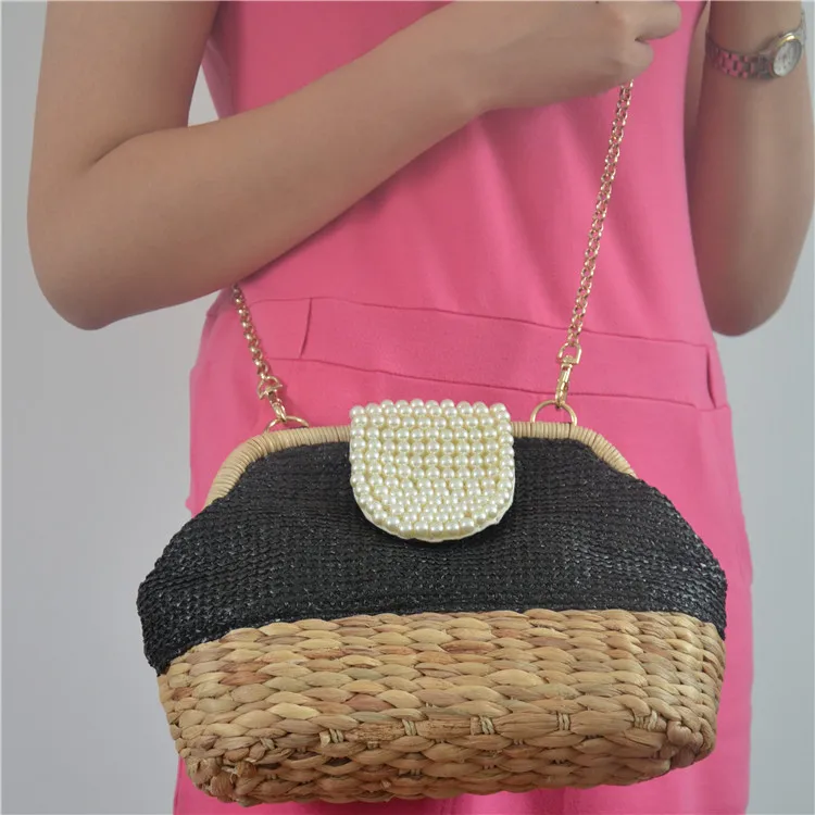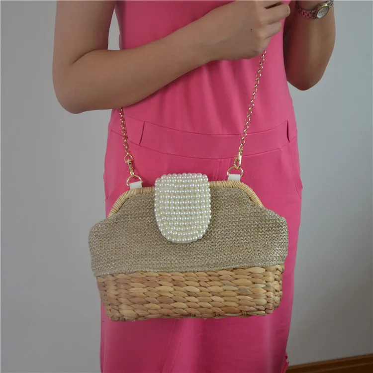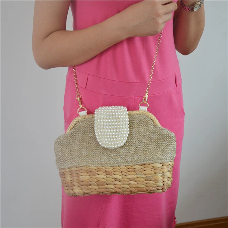 2018 New Women Straw Shoulder Bag Chain Pearl Crossbody Bag Girls Messenger Bag Summer Beach Bag Dropshipping