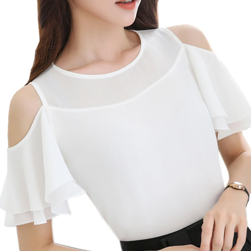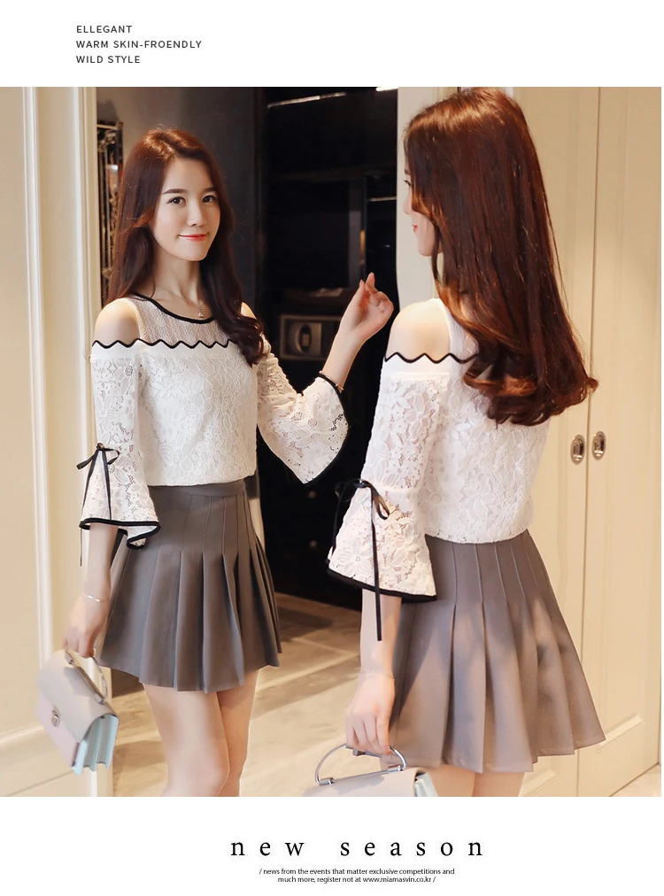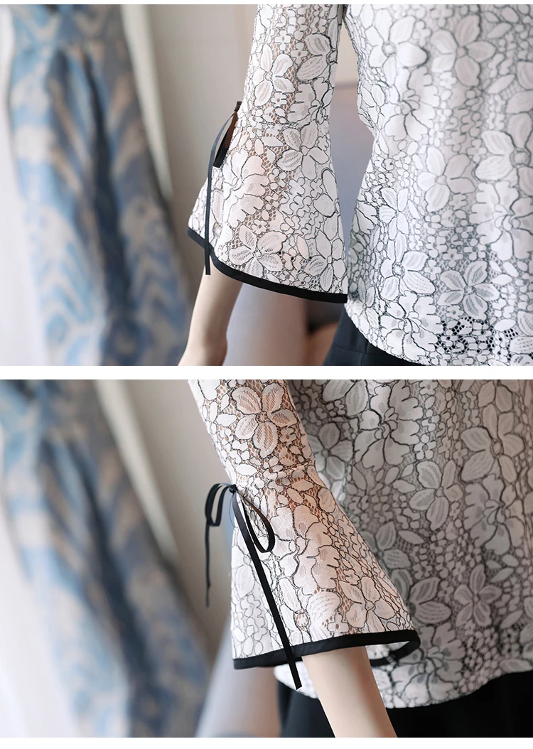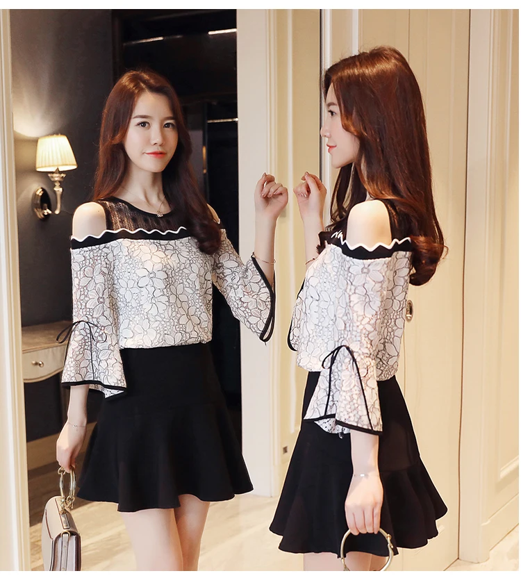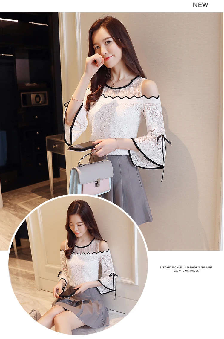 2018 New Women’s Fashion Lace Chiffon Stitching Blouse Flare Sleeve Top Lace O-neck Blouse Strapless Sexy Women Clothing D597 30