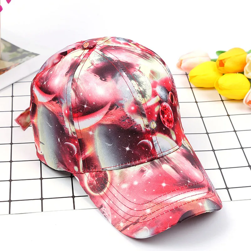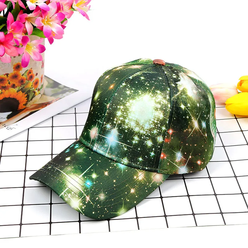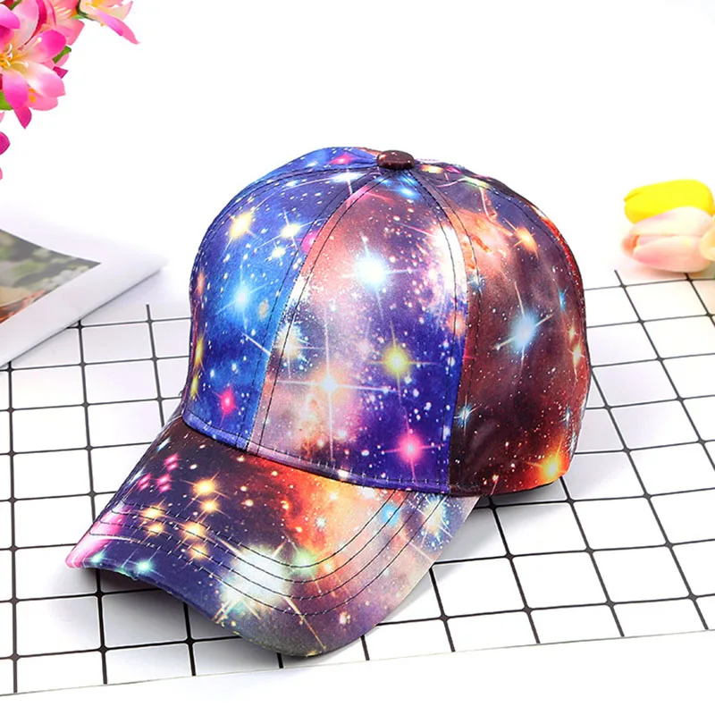 2018 New Women’s Starry Sky Printing Polyester Baseball Cap Summer Sun Hat Snapback Hip Hop Caps Cool Star Party Dance Hats