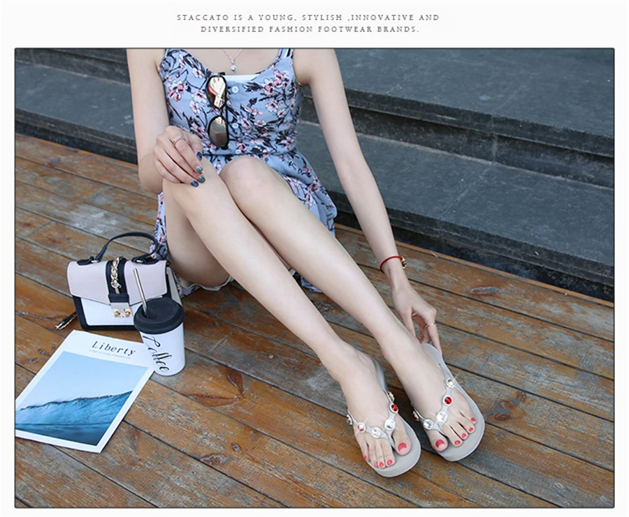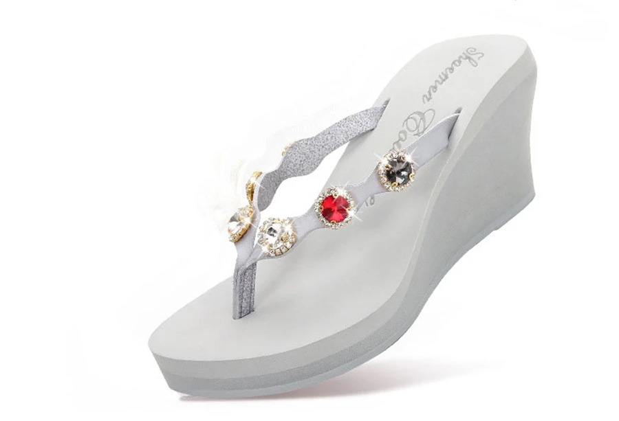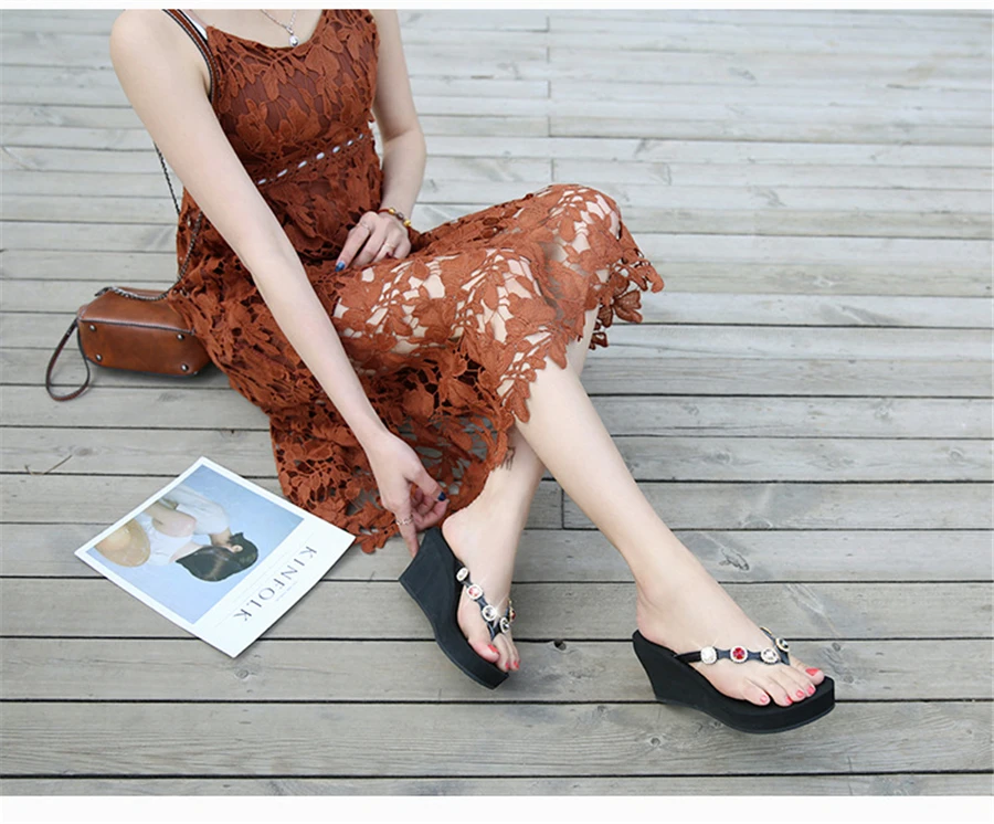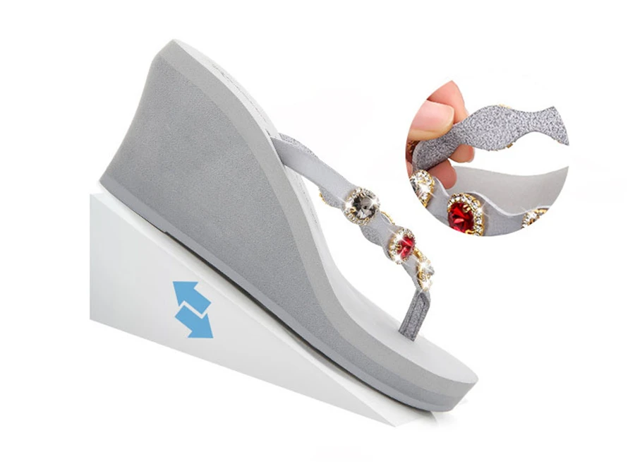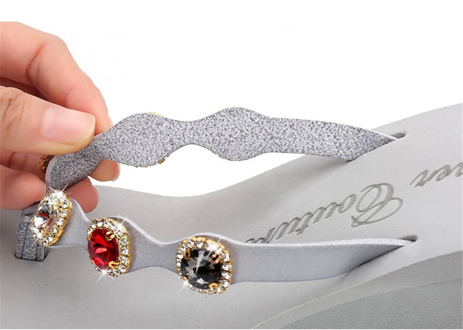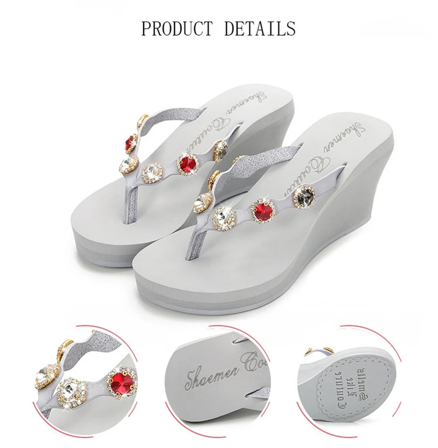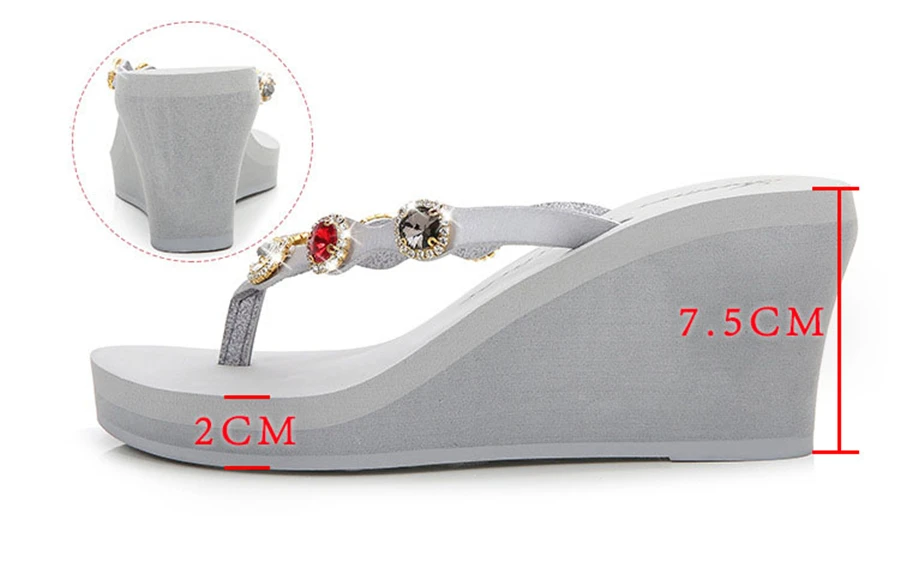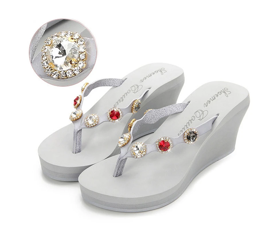 2018 Nouveau Summer Luxury Wedges Slippers Women High Heels Platform Rhinestone Causal Flip flops Beach Shoes Woman ZX-09