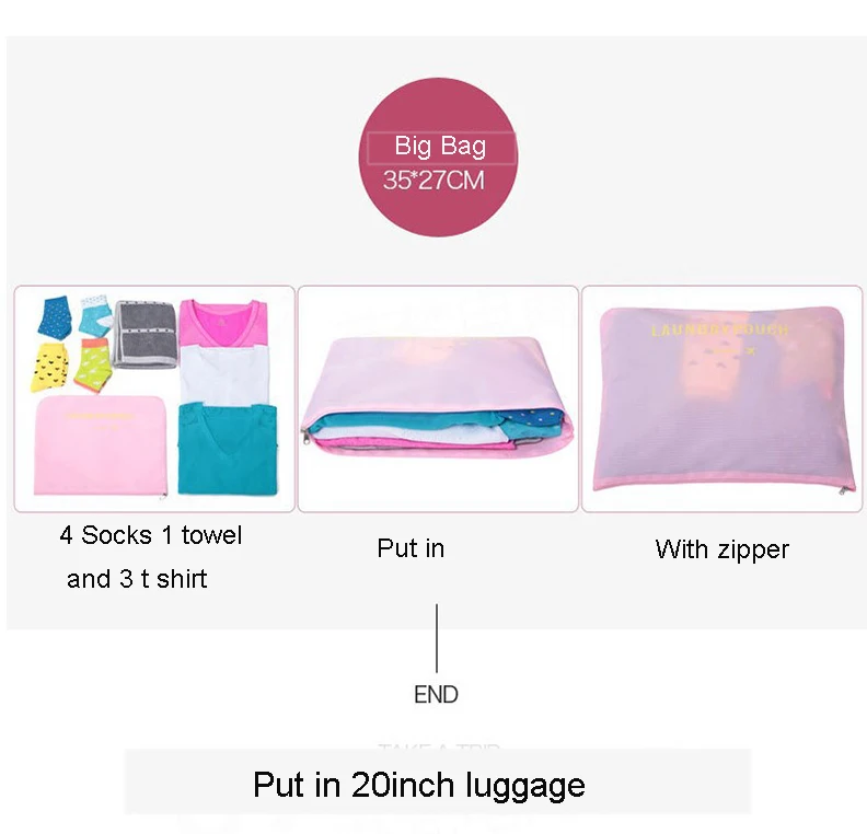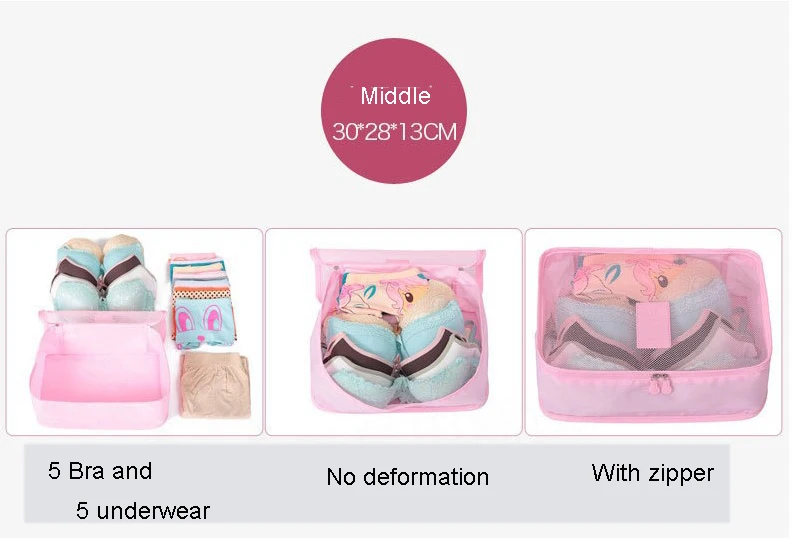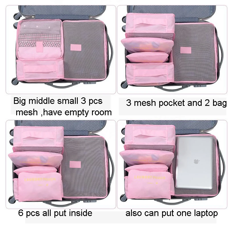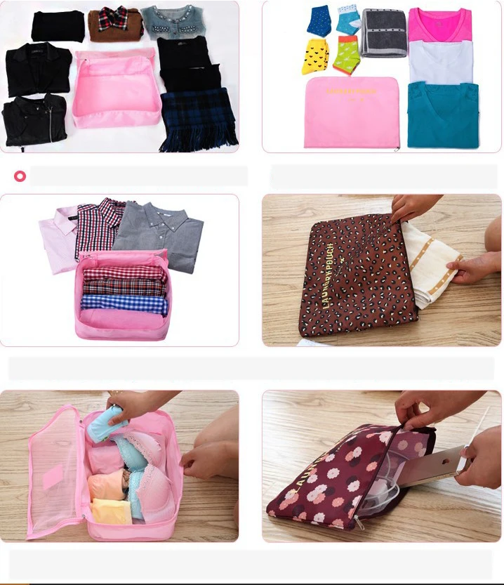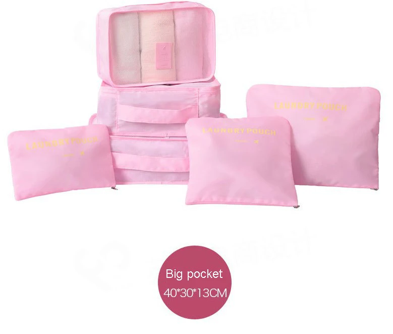 2018 Nylon Packing Cube Travel Bag Double zipper System Durable 6 Pieces One Set Large Capacity Luggage Organize Bag b35