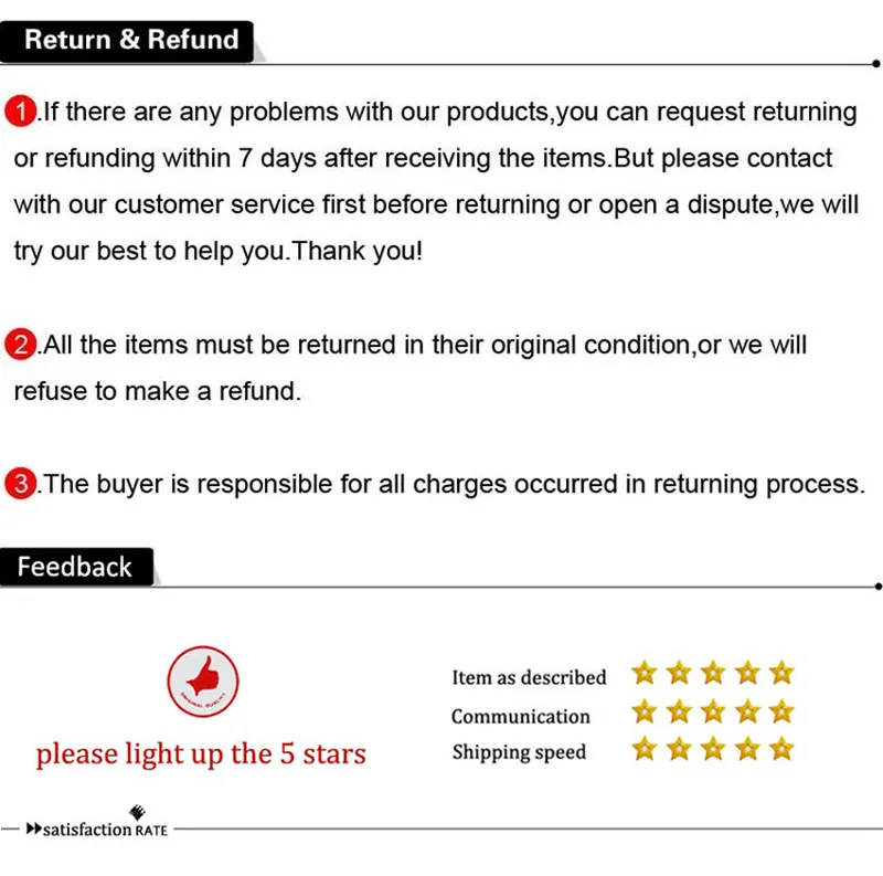 • If you do not want the product you’ve received you may request a refund but you must return the item at your expense and the item must be unused.