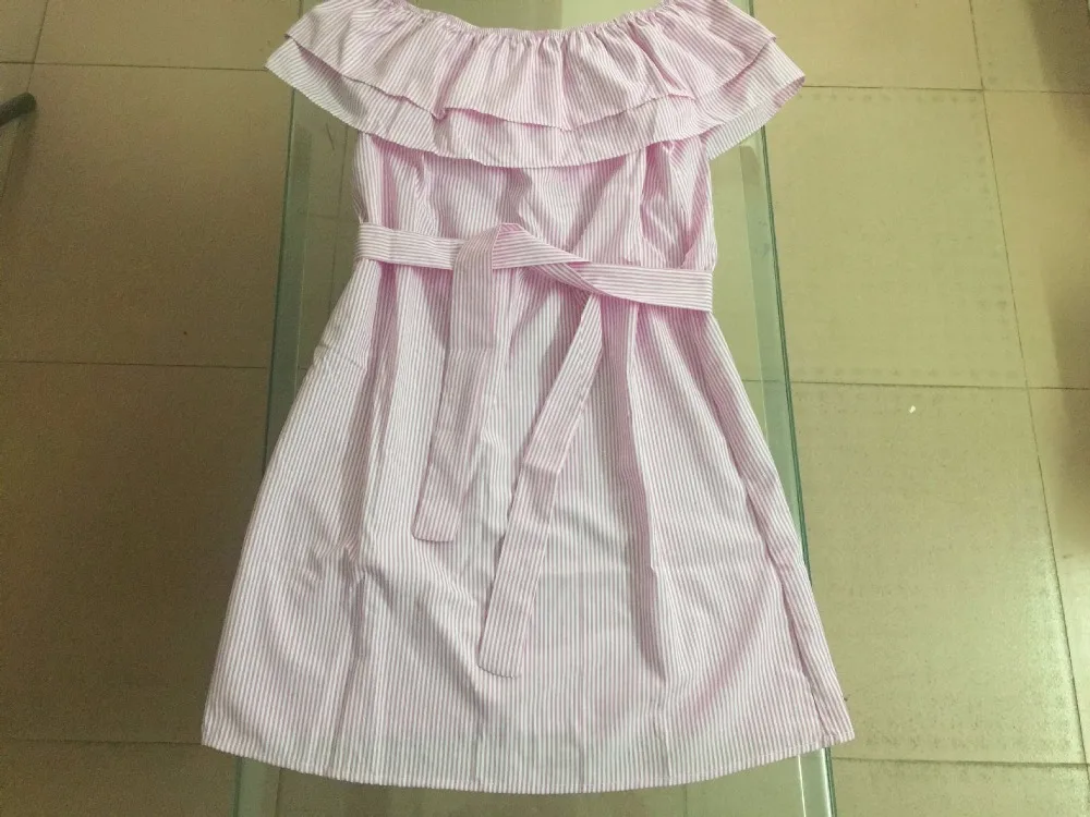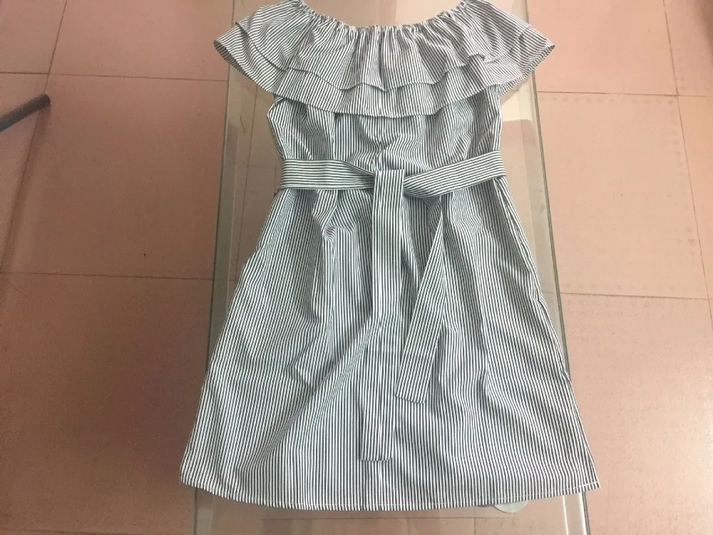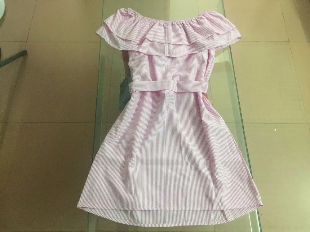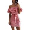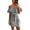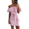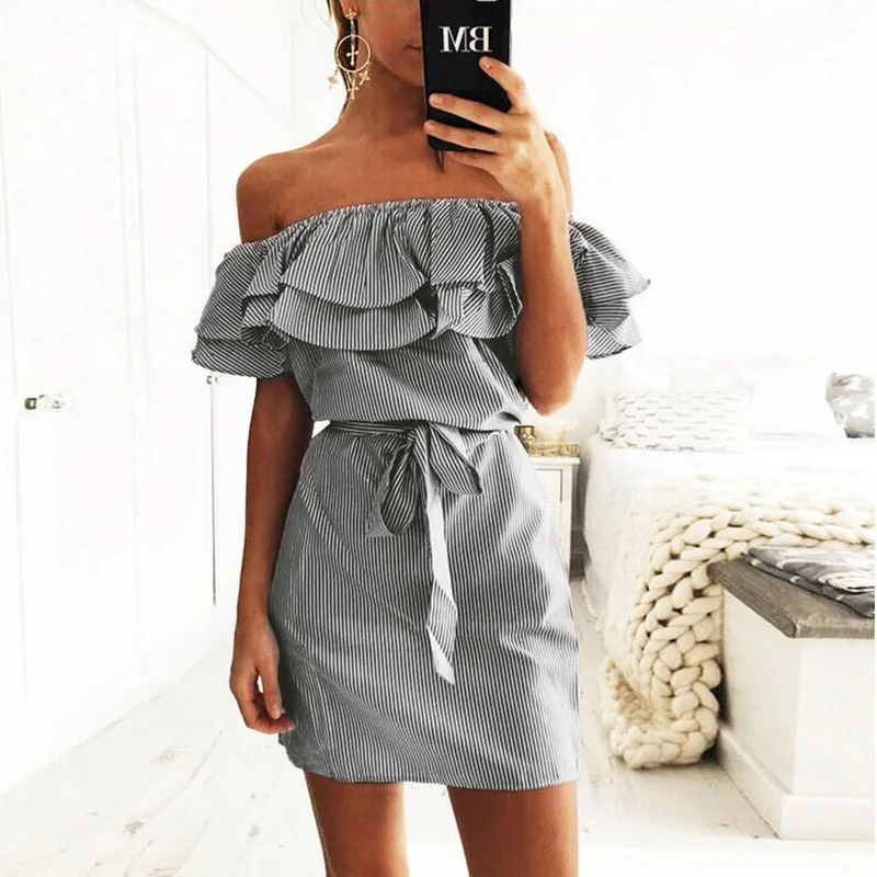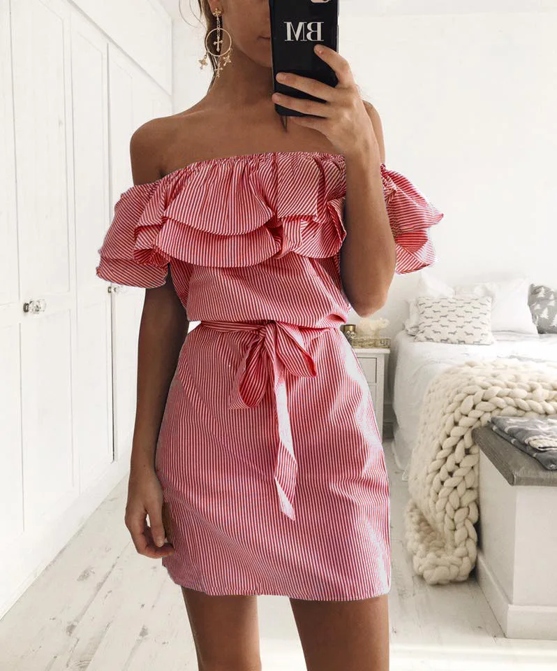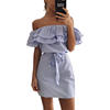 2018 Off Shoulder Strapless Striped Ruffles Dress Women Sexy Summer Sundresses Slim Beach Casual Shirt Short Mini Party Dresses