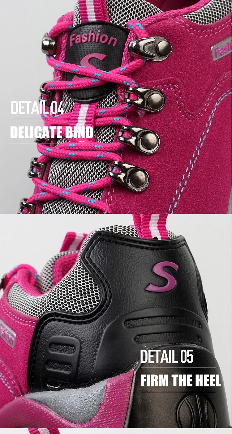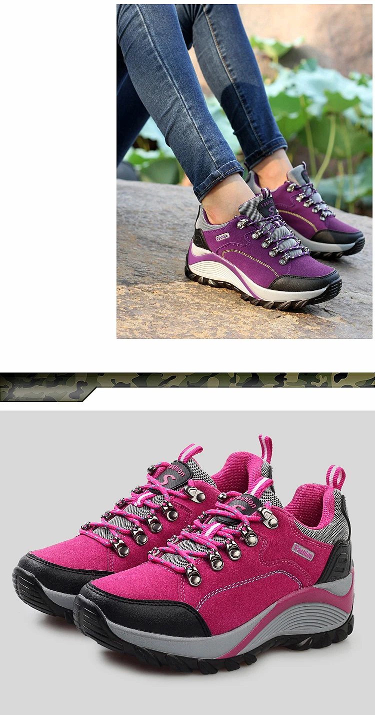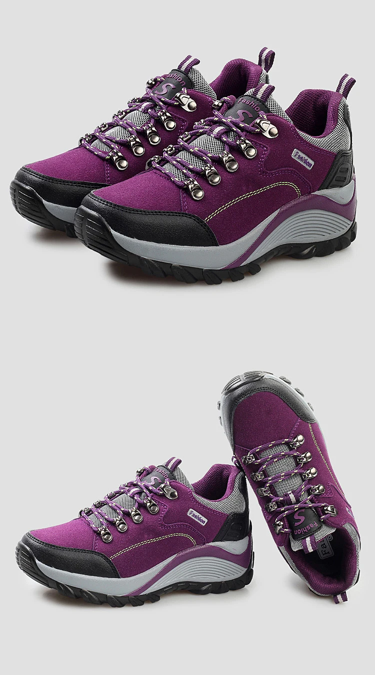 2018 Outdoor Hiking Shoes Leather Women Sneakers Trekking Waterproof Shoe For Woman Breathable Camping Plum Purple Sport Shoes
