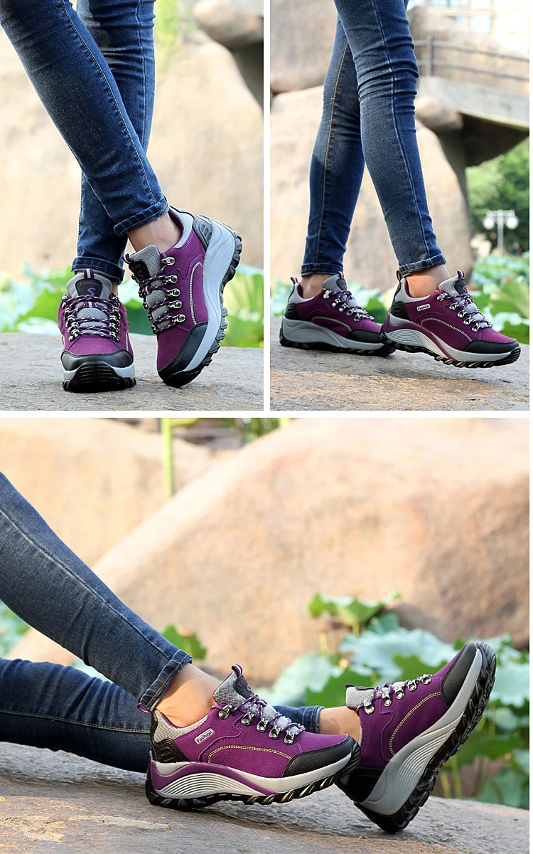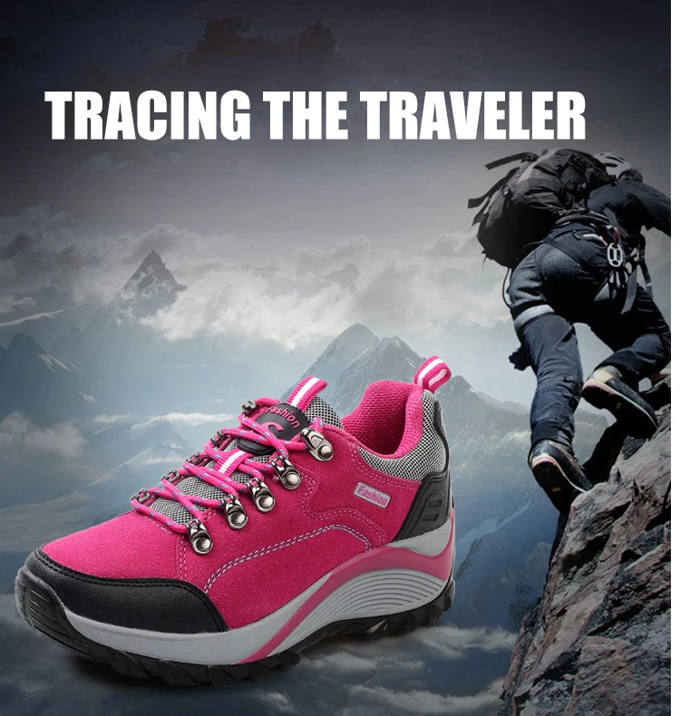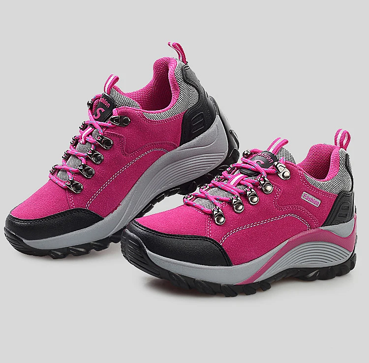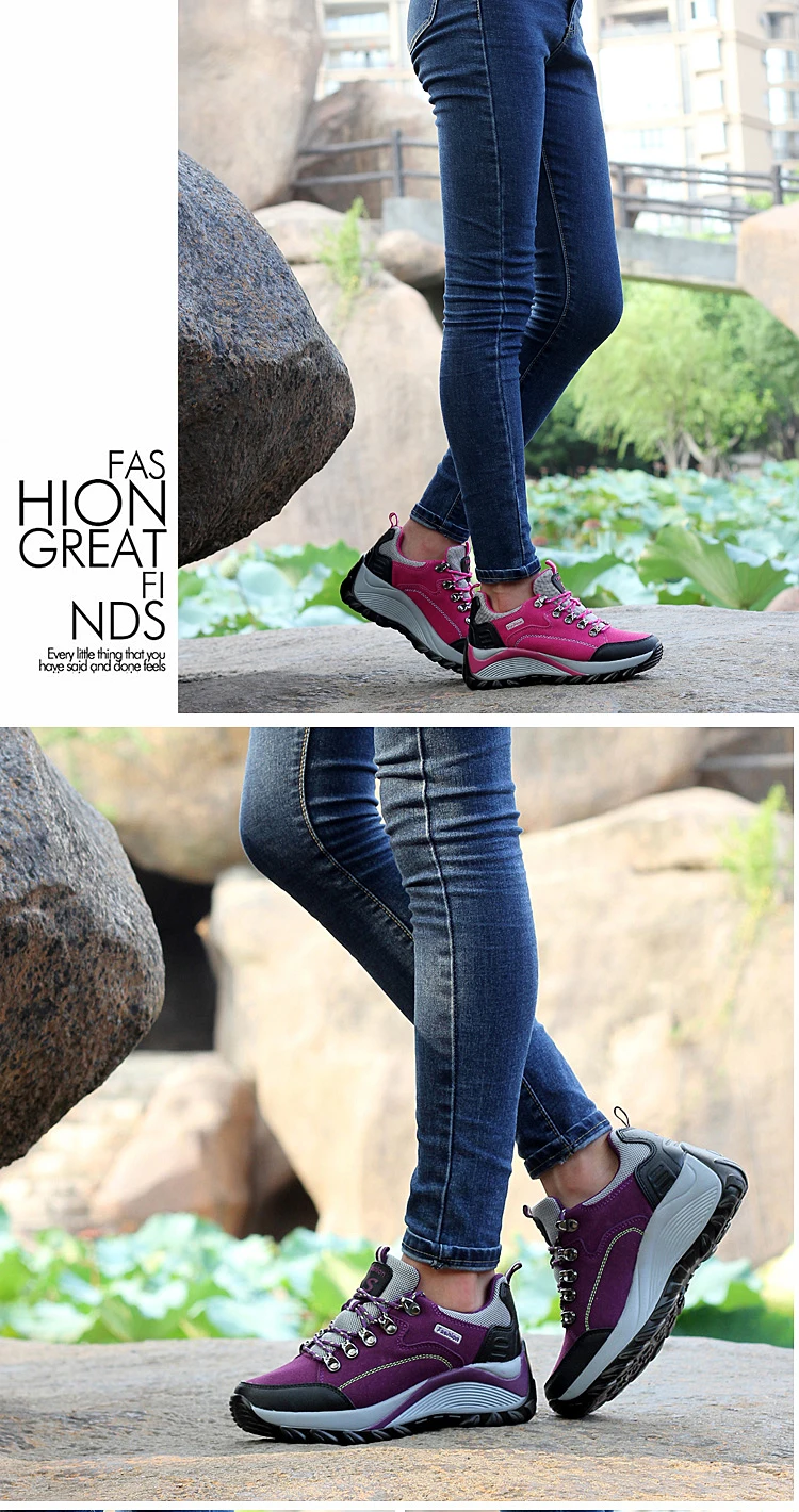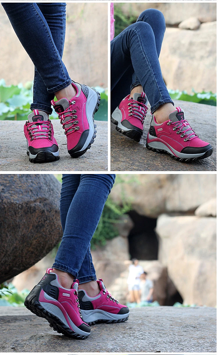 2018 Outdoor Hiking Shoes Leather Women Sneakers Trekking Waterproof Shoe For Woman Breathable Camping Plum Purple Sport Shoes