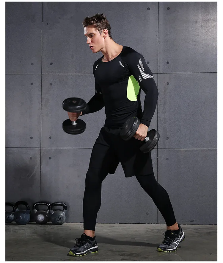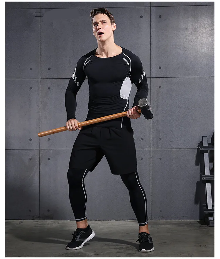 2018 Quick Dry Men’s Running Sets 6pieces/sets Compression Sports Suits Basketball Tights Clothes Gym Fitness Jogging Sportswear