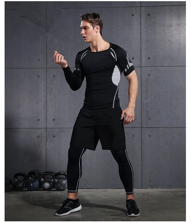 2018 Quick Dry Men’s Running Sets 6pieces/sets Compression Sports Suits Basketball Tights Clothes Gym Fitness Jogging Sportswear