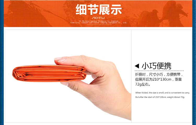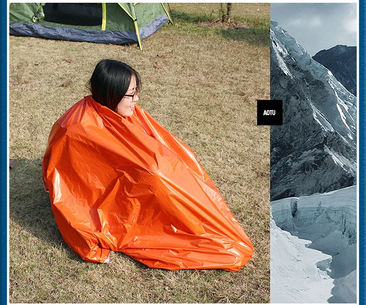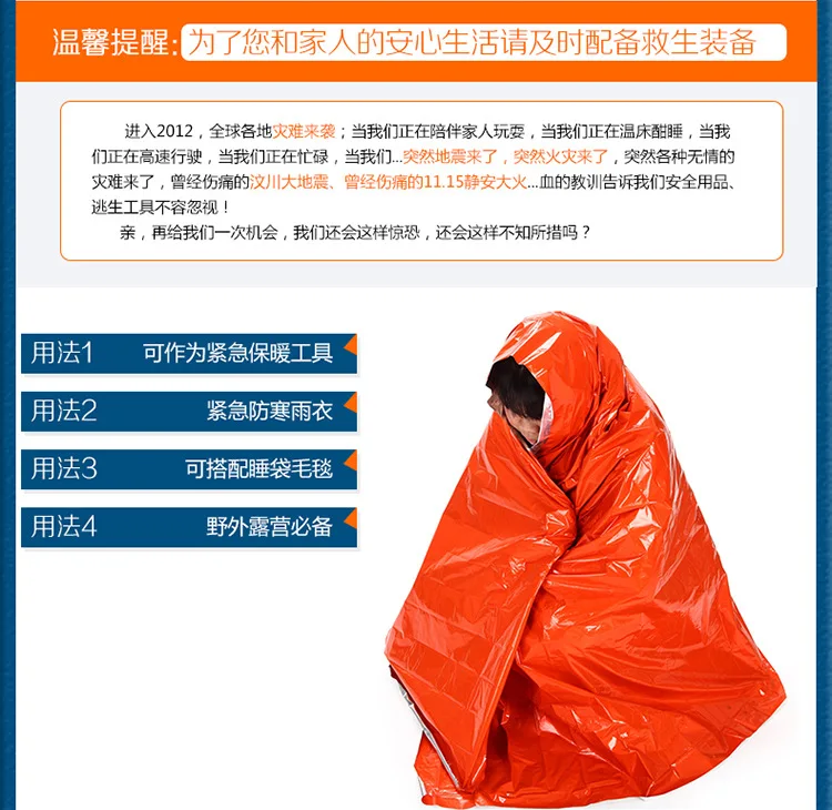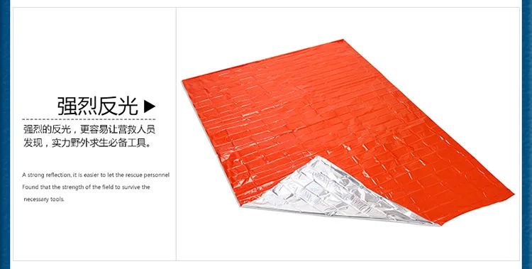 3. professional first aid color, it is easier to let the rescue personnel found, as a tool for survival in the wild. In the sleeping bag with a layer of first aid blanket can improve the ability to keep the heat, to ensure that the sleeping temperature is good.
