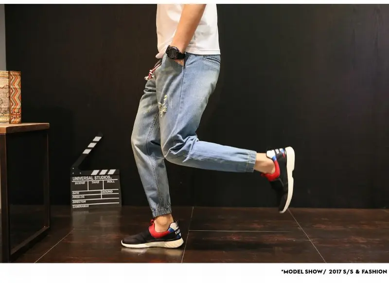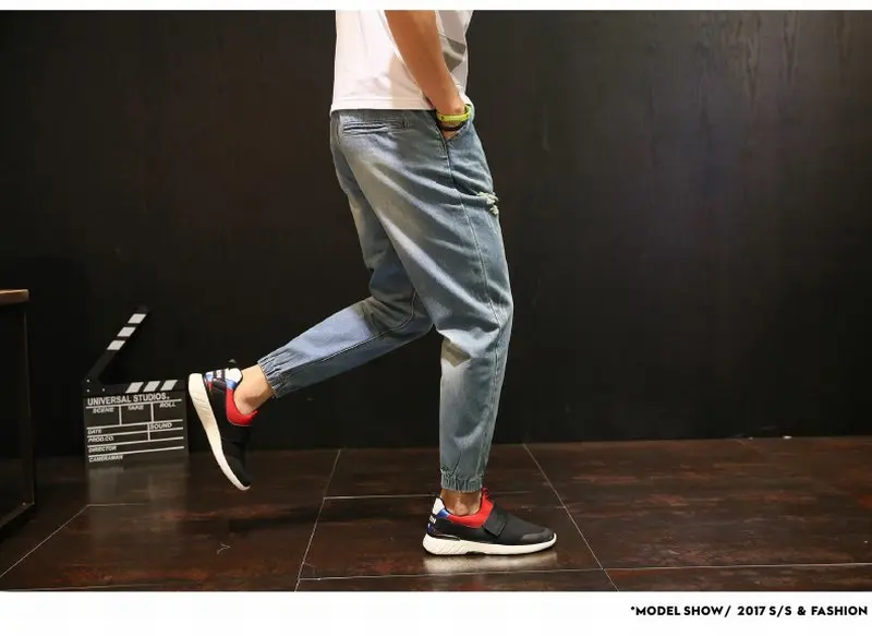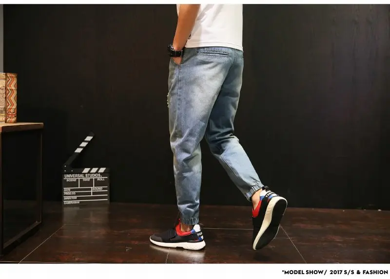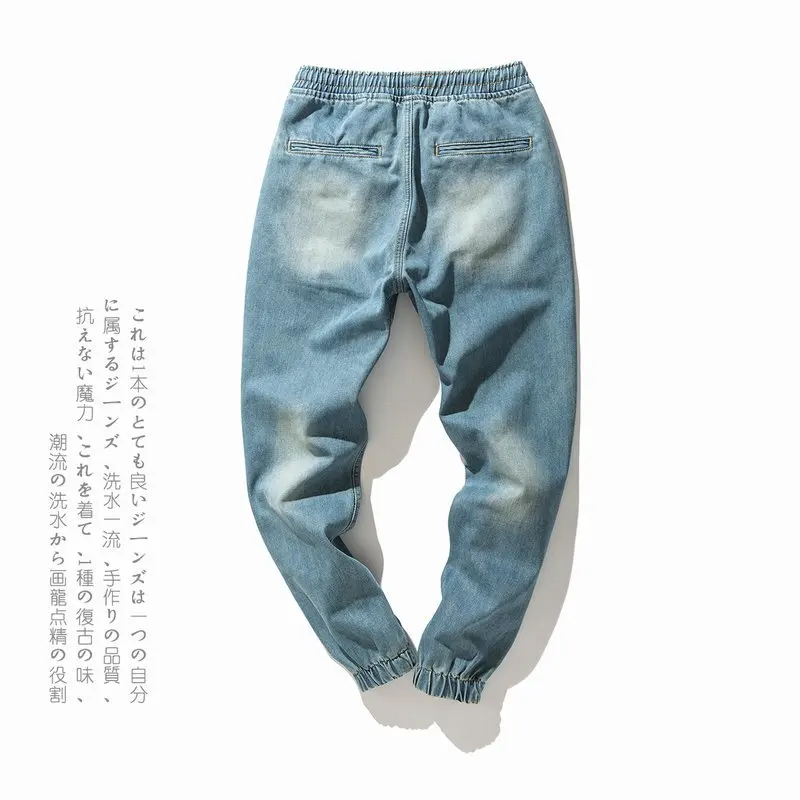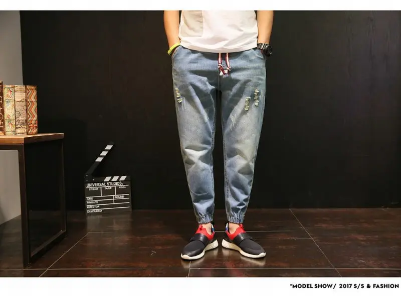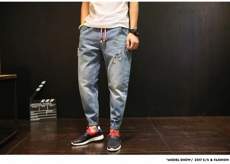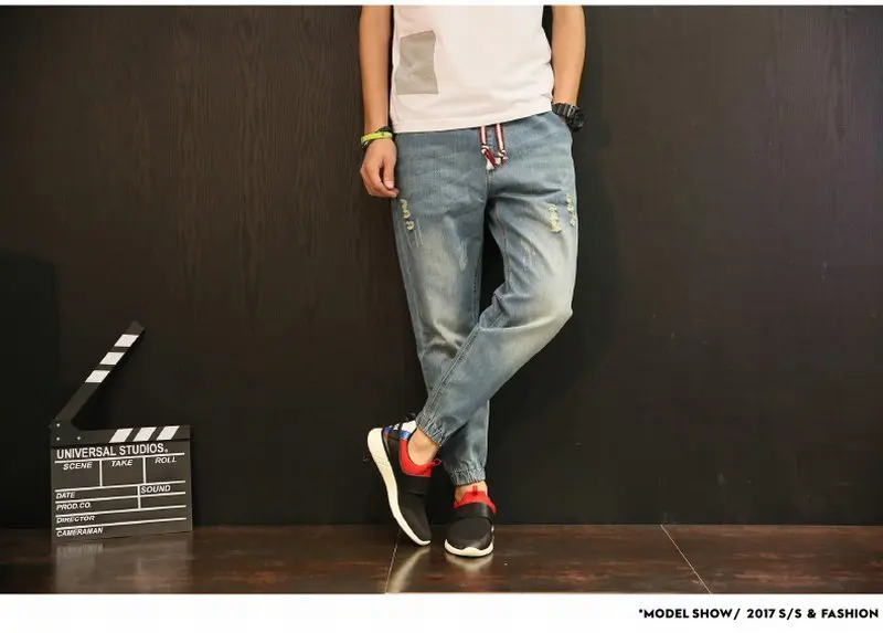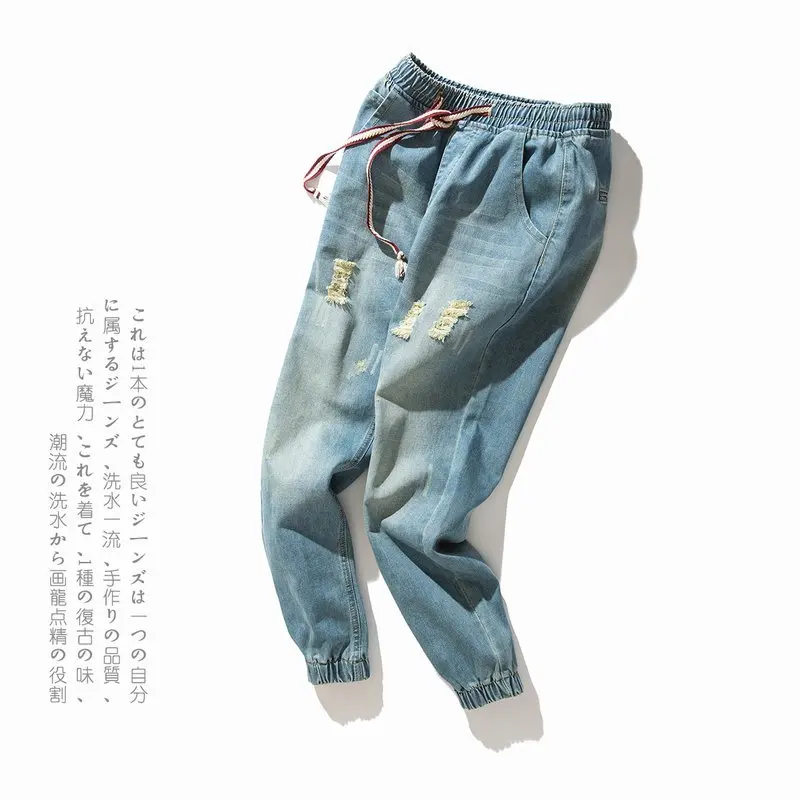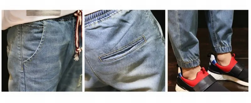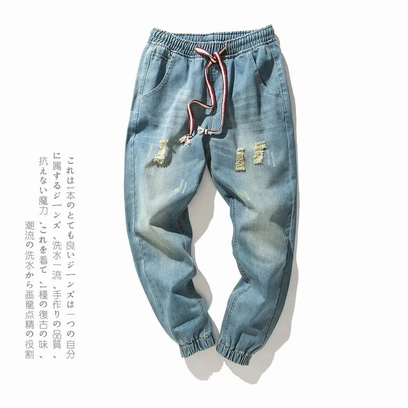 Retro Men Distressed Harem Jeans Oversize 4XL Men Baggy Ripped denim pants Harajuku Drawstring Feet Joggers A60503 |
