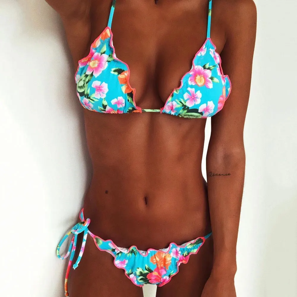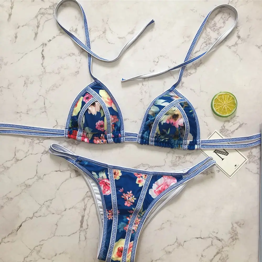 2018 Sexy Bikini Set Women Swimsuit Brazilian Swimwear Female Summer Beach Wear Floral Print Bathing Suit Biquini Vintage Swim