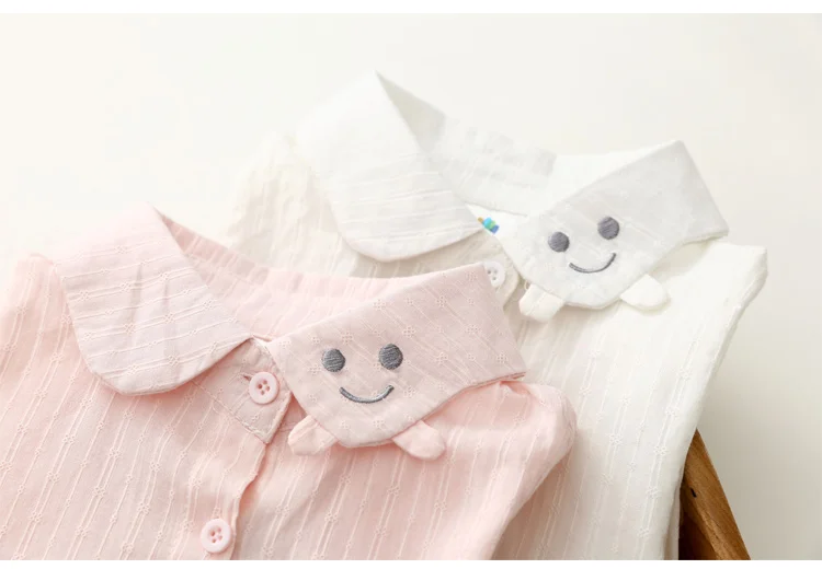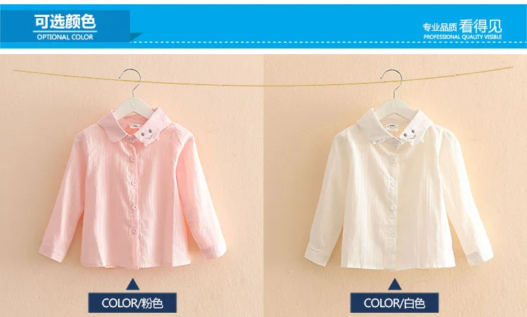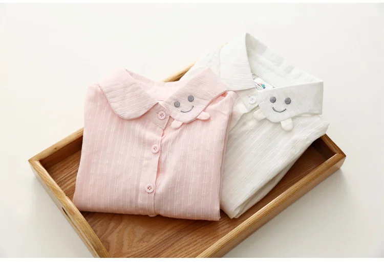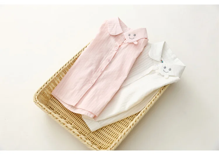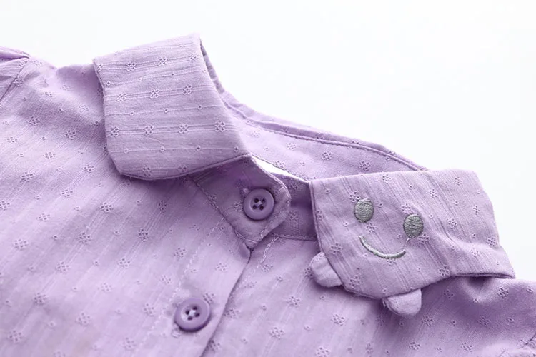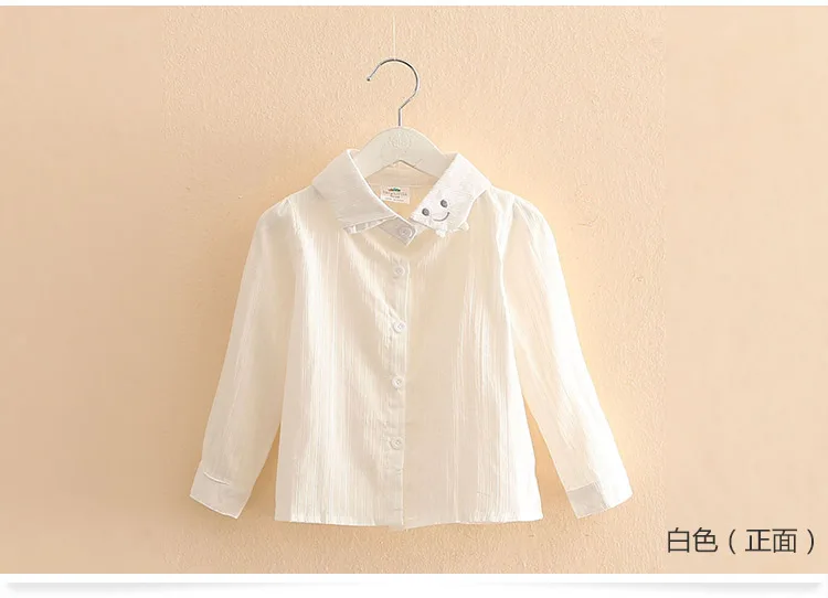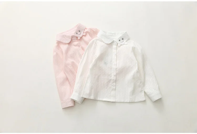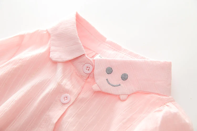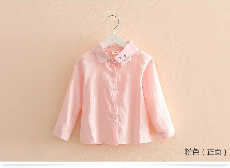 2018 Spring Autumn Casual 2-10 Years Cotton Kids Birthday Clothing Solid Color Cartoon Smile Long Sleeve Girls Blouses Shirts