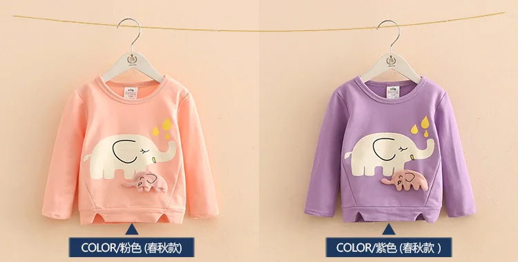 2018 Spring Autumn Female 2-10 Years Old Children’S Birthday Gift Long Sleeve Cartoon Elephant Baby Kids Sweatshirt For Girls