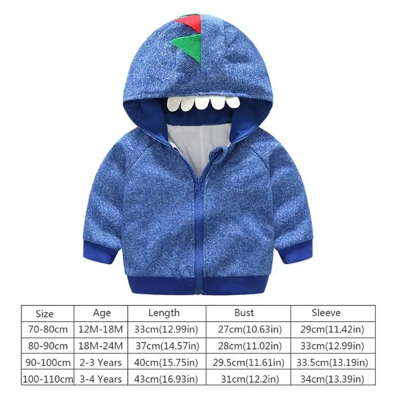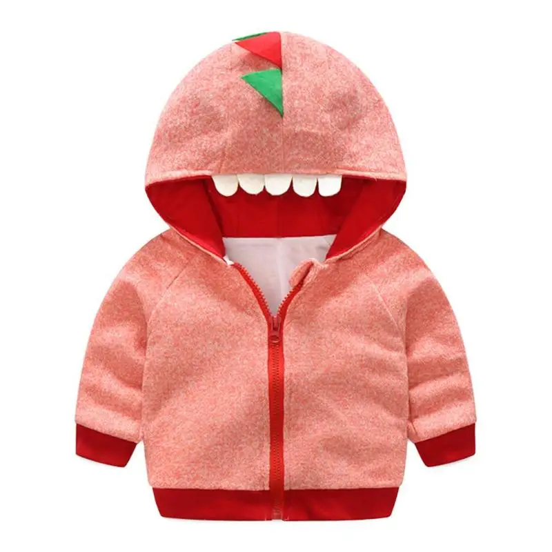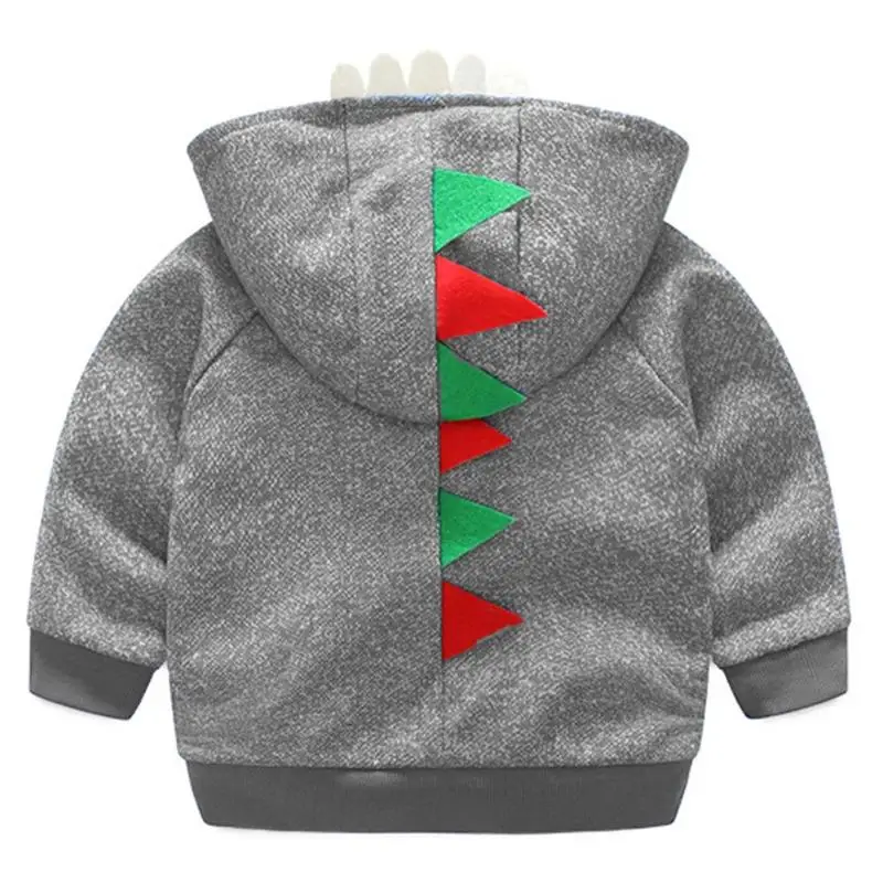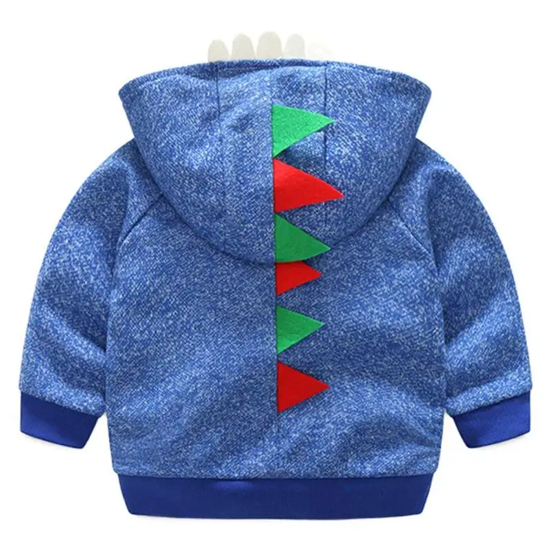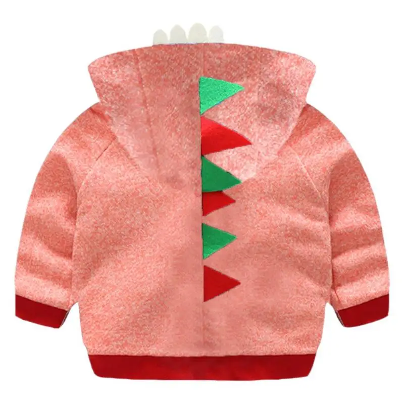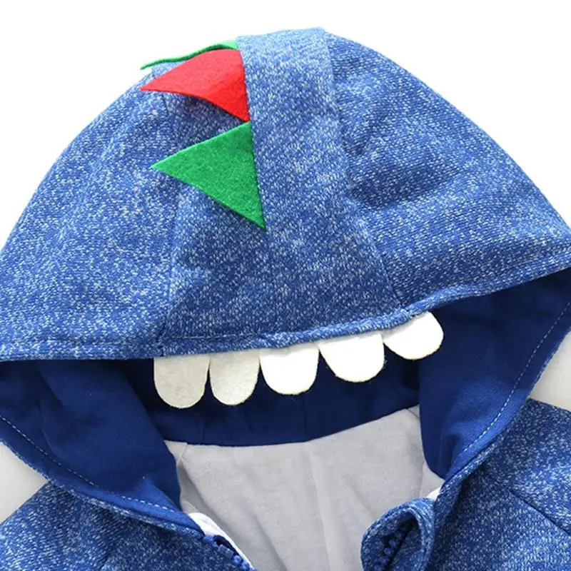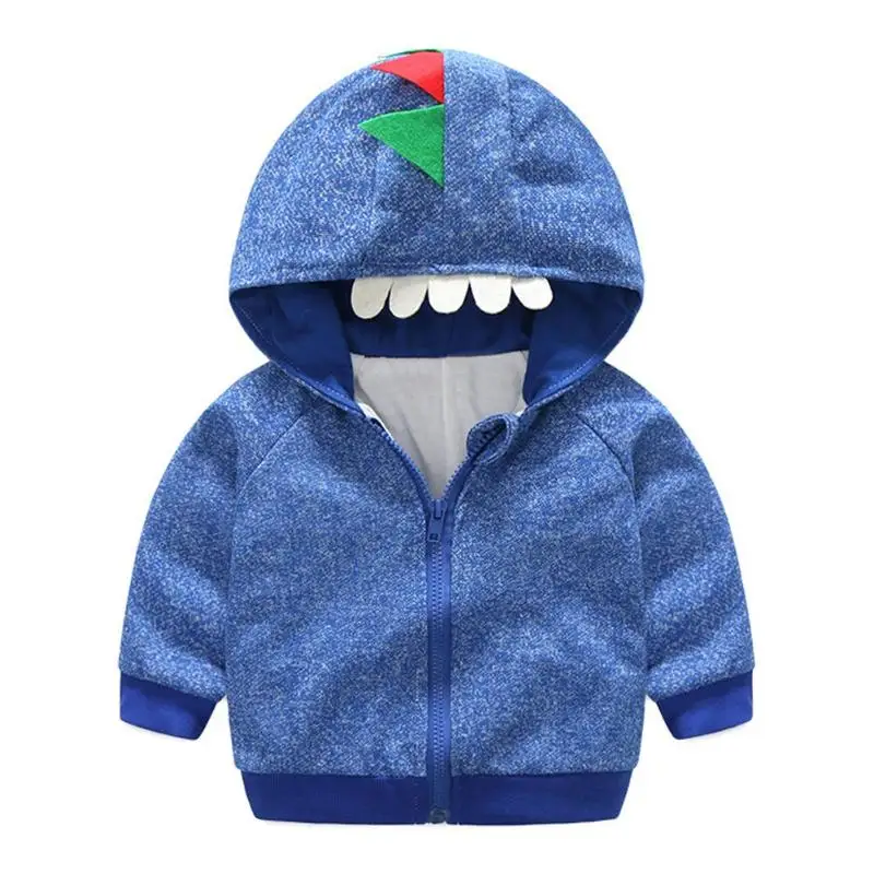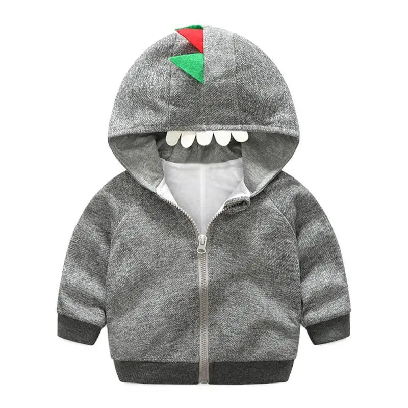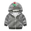 Loose Cartoon Dinosaur Long Sleeve Hooded Jackets Soft Baby Kids Boys Warm Front Zipper Coat