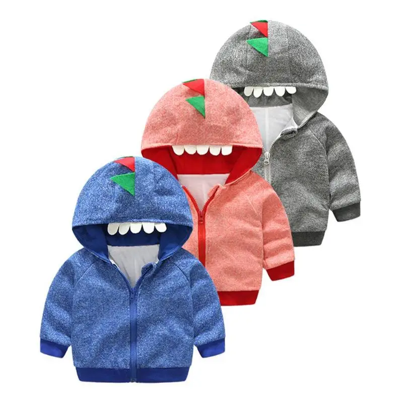 2018 Spring/Autumn/Winter 1-4Y Kids Windbreaker Clothing Loose Cartoon Dinosaur Long Sleeve Hooded Jackets Soft Child Boys Coat