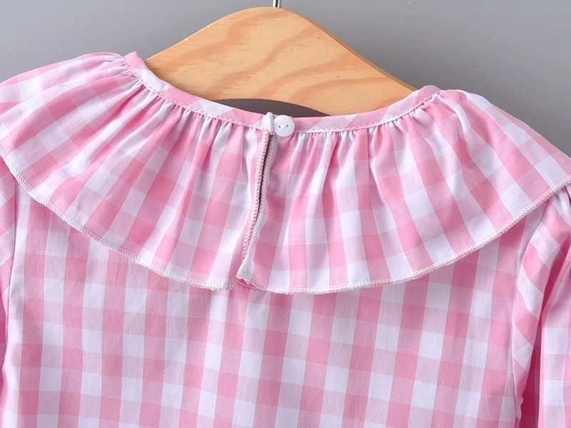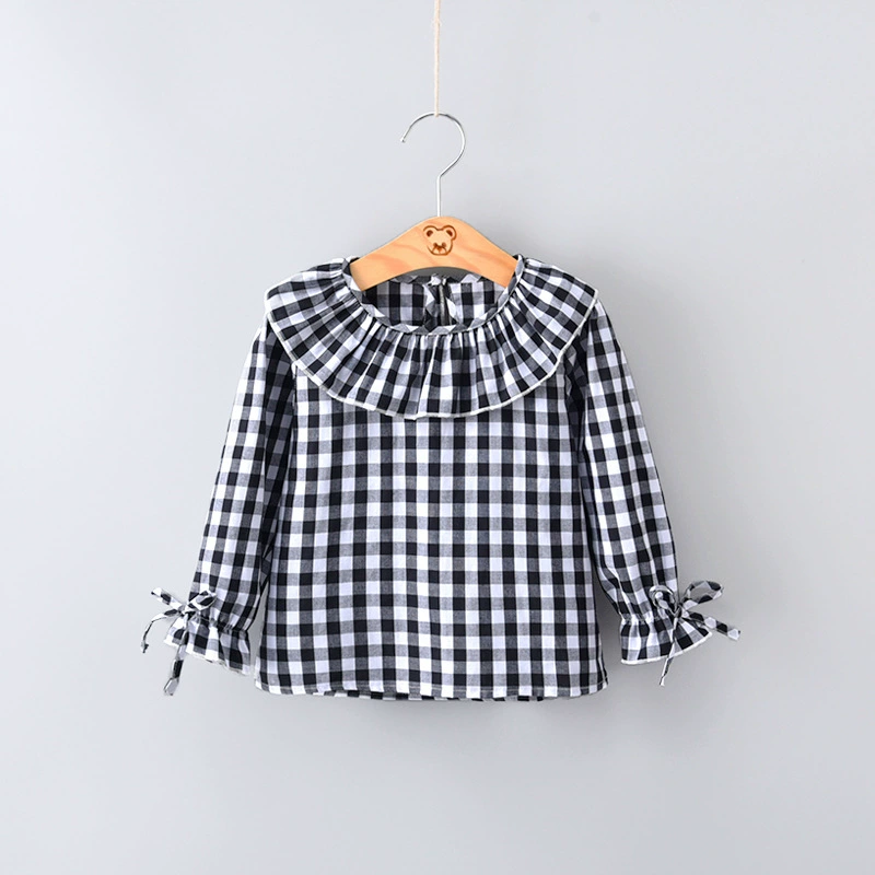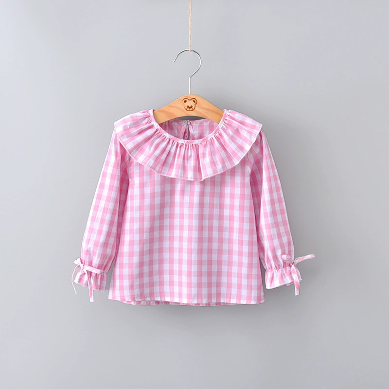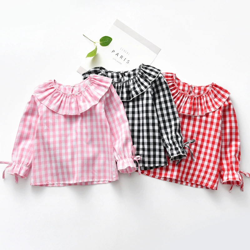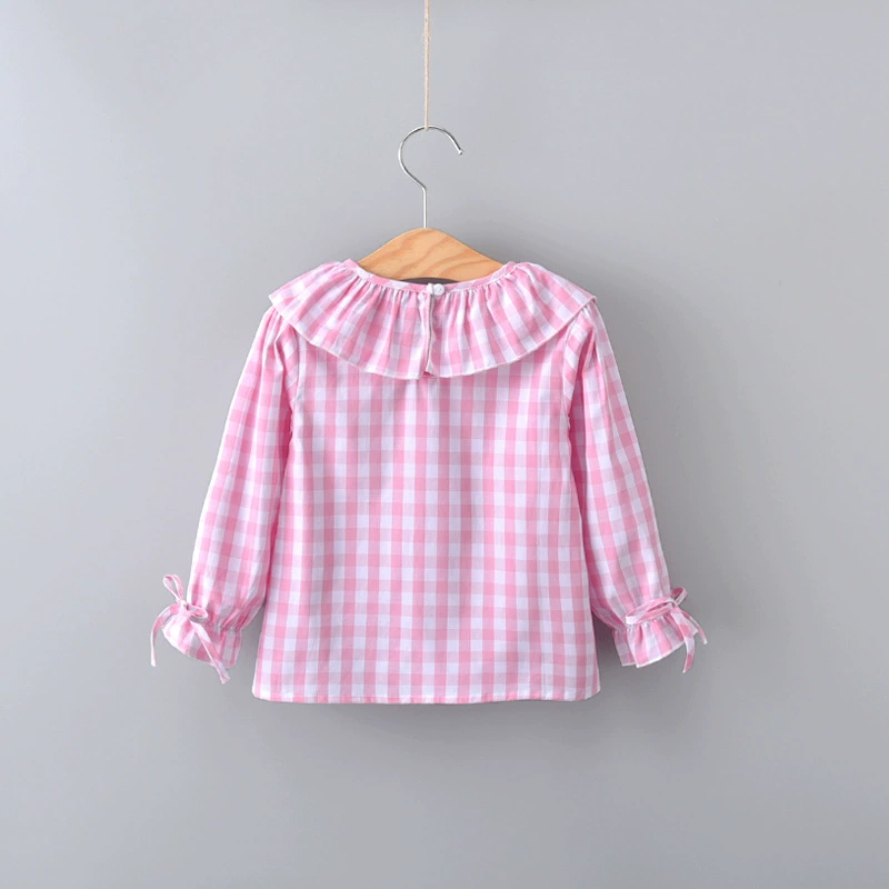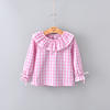 2018 Spring Baby Girls Full Sleeve Blouse Children Plaid Ruffles Collar Shirt Top Kids Flare Sleeve Jumper Girls Clothes