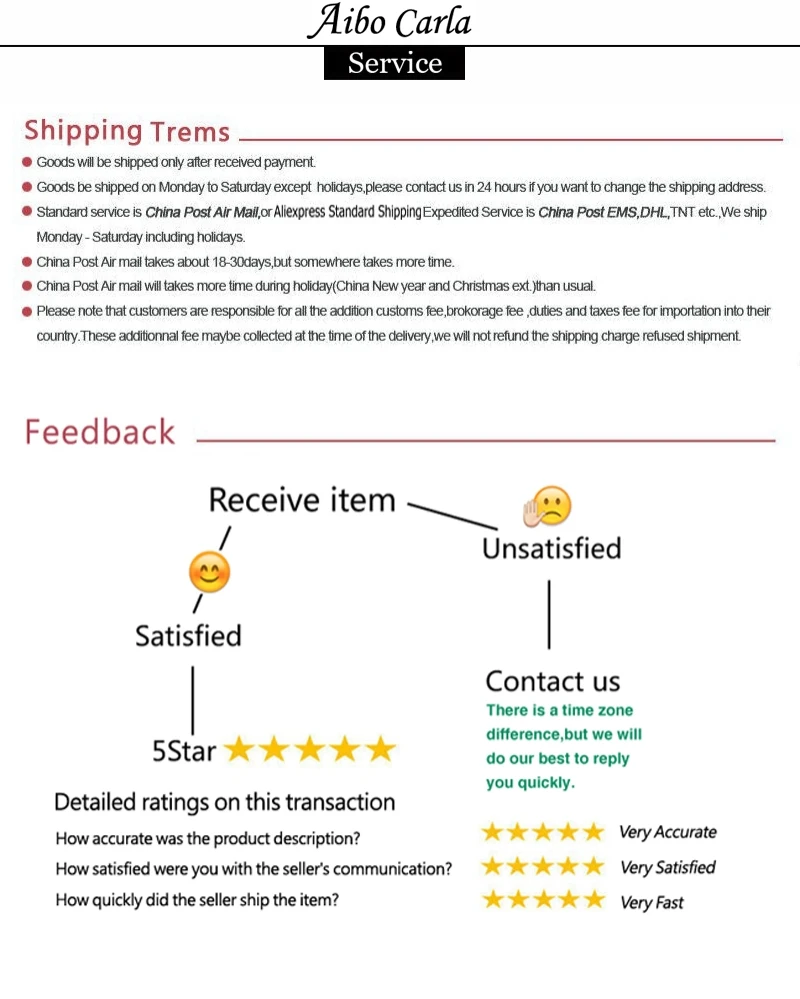 • If you did not receive the product within the guaranteed time( 45 days not including 2-5 day processing) you can request a refund or a reshipment.
