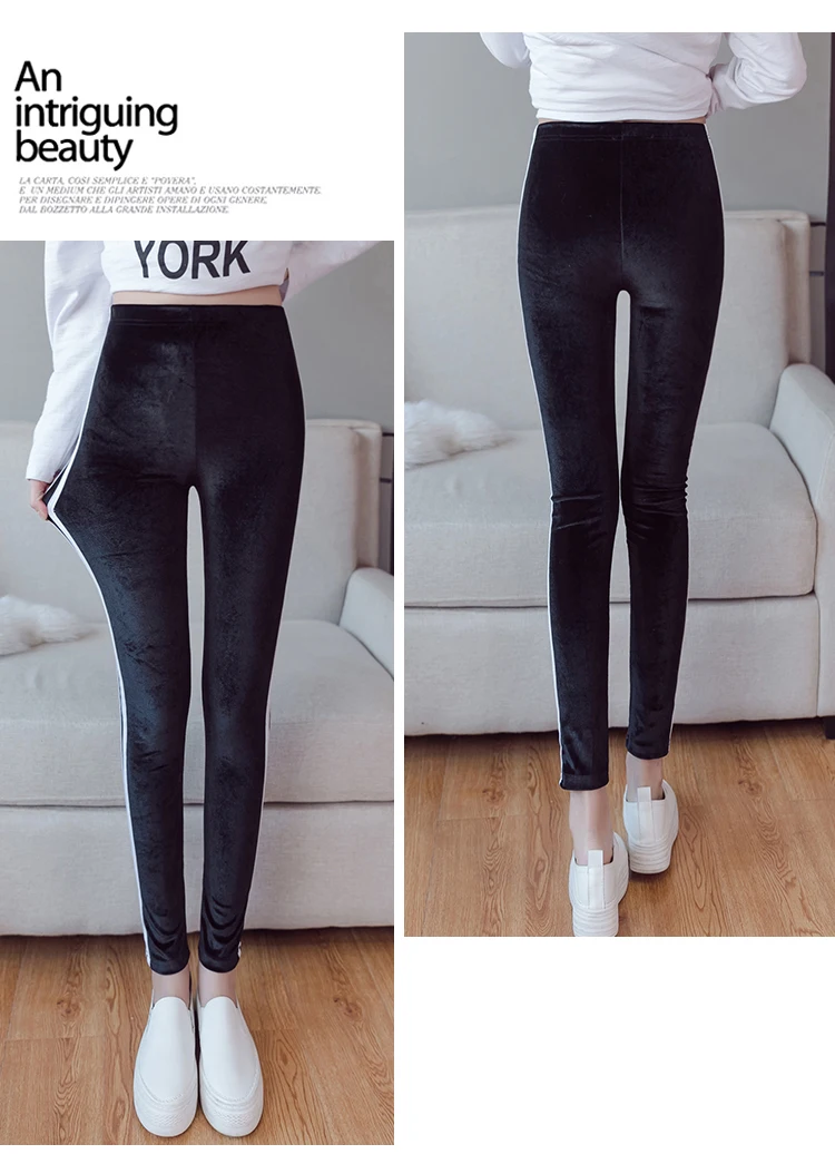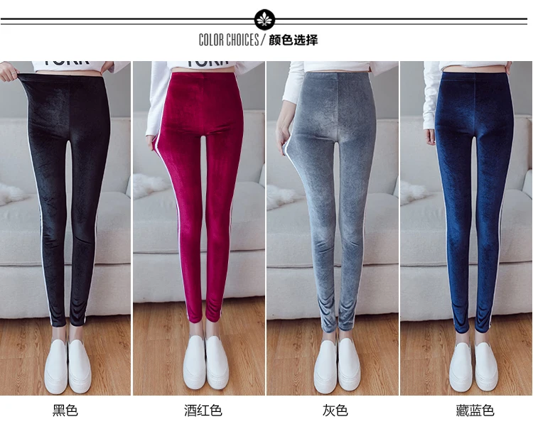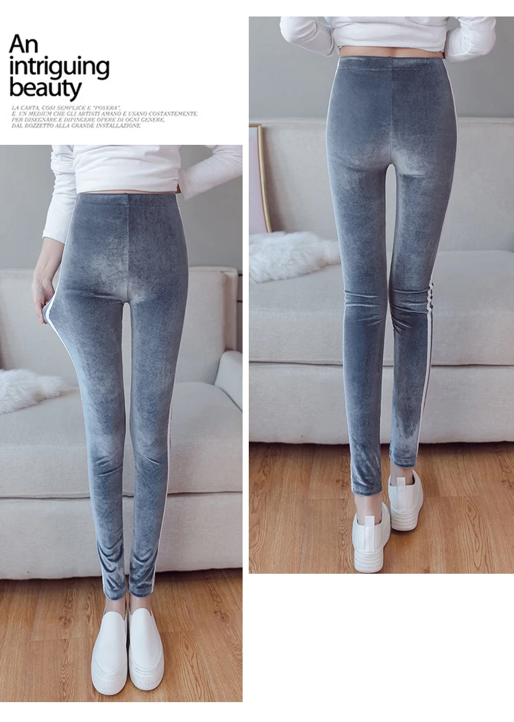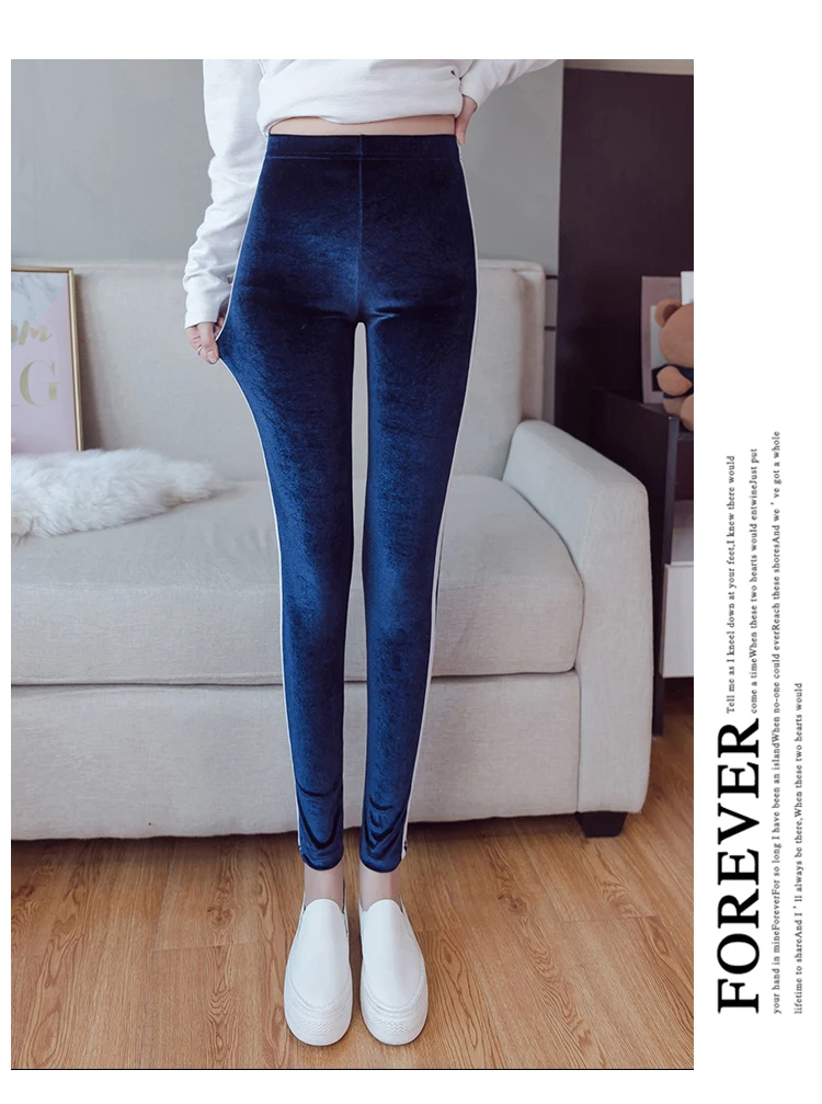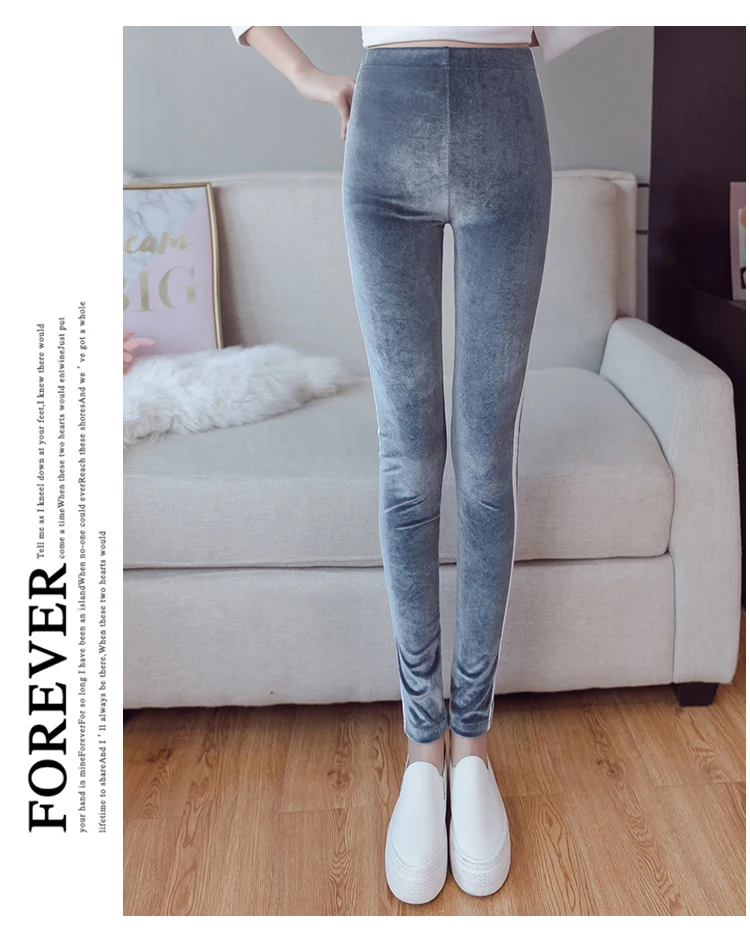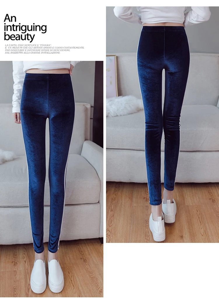 2018 Spring Summer Knitting Gold Velvet Leggings Slim was thin Women Casual Leggings Elastic Pencil Pants Ankle-Length Pants