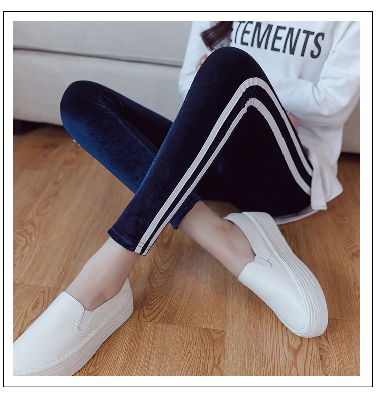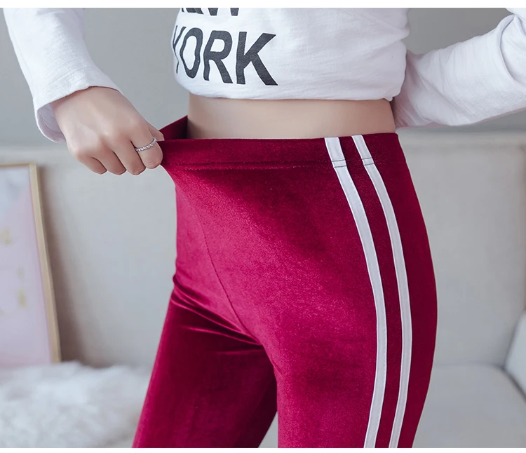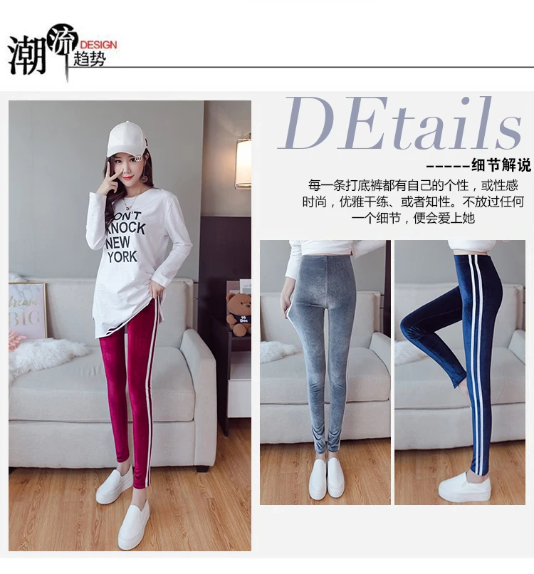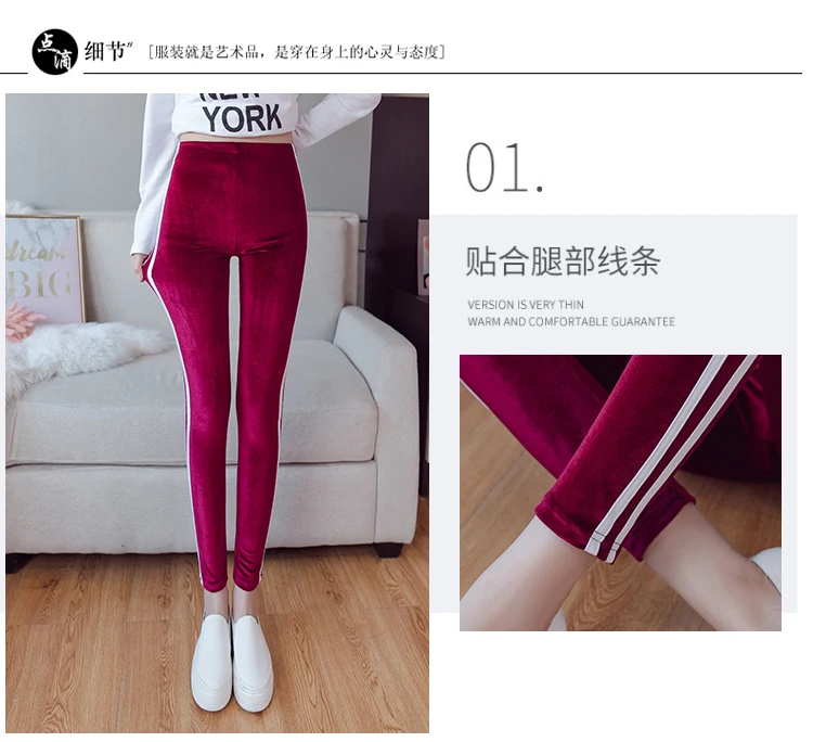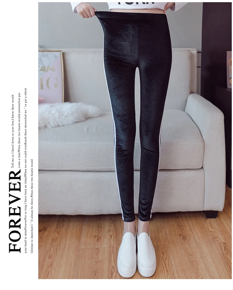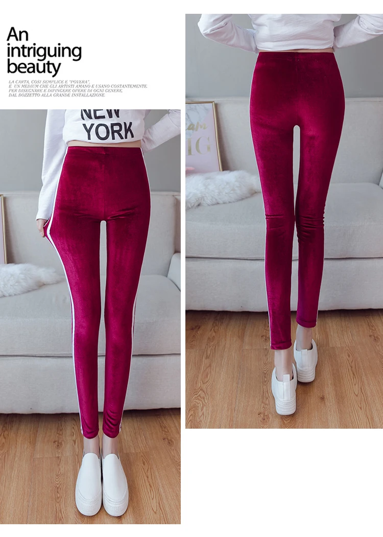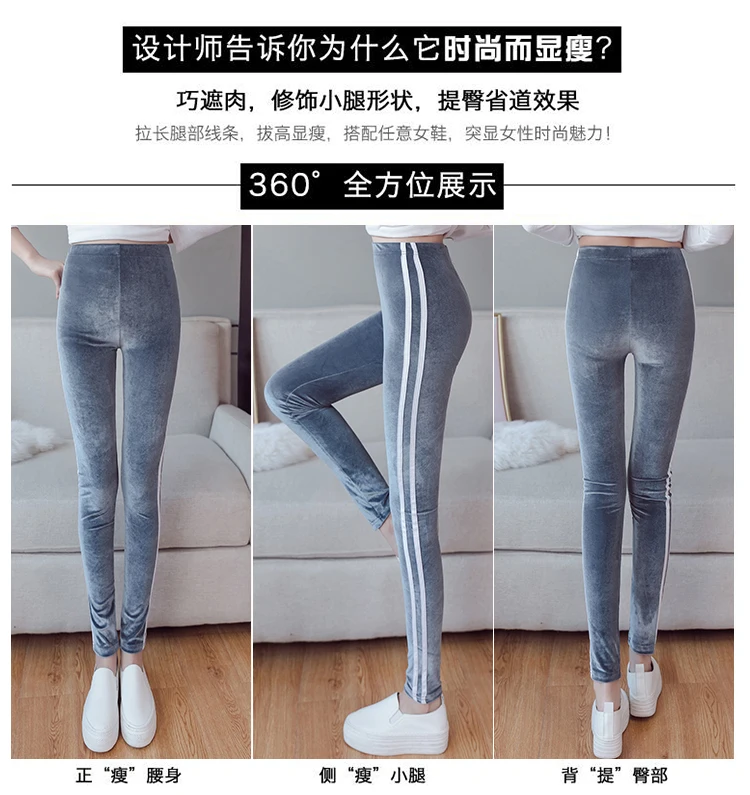 2018 Spring Summer Knitting Gold Velvet Leggings Slim was thin Women Casual Leggings Elastic Pencil Pants Ankle-Length Pants