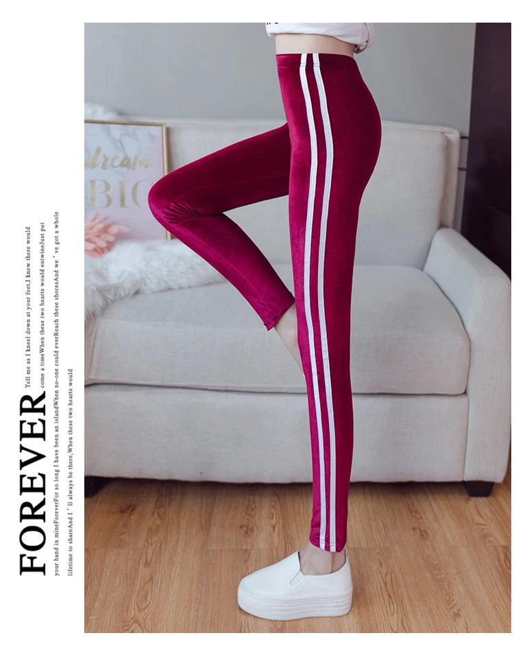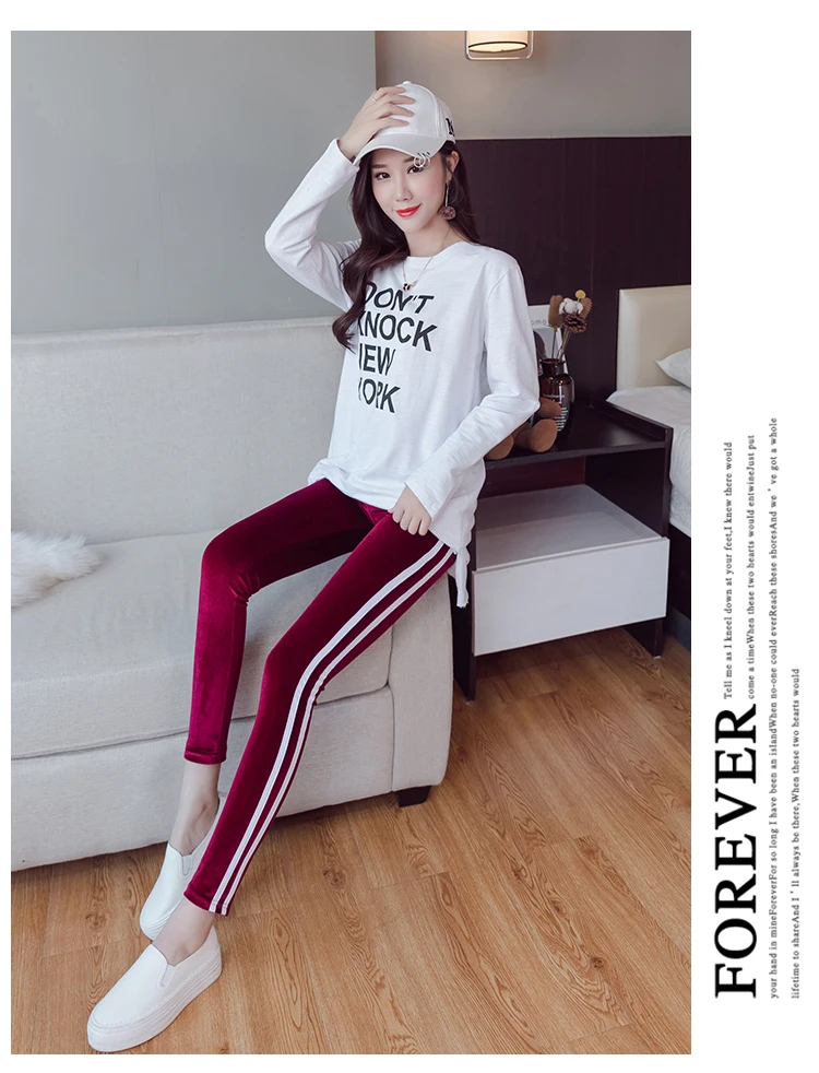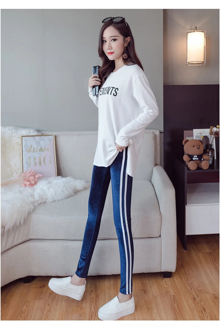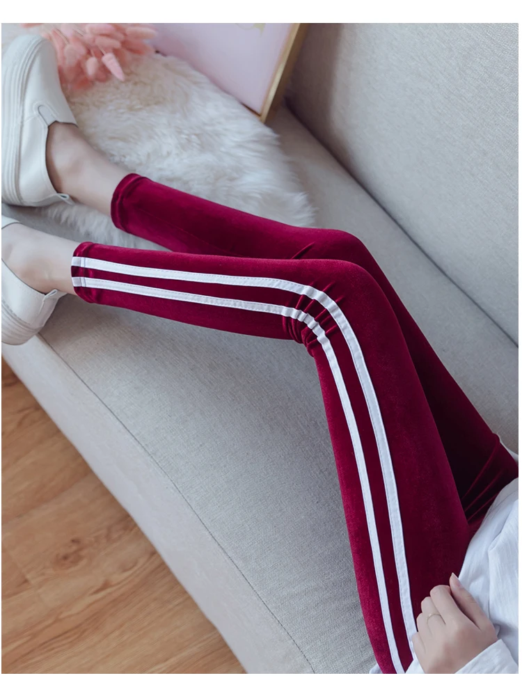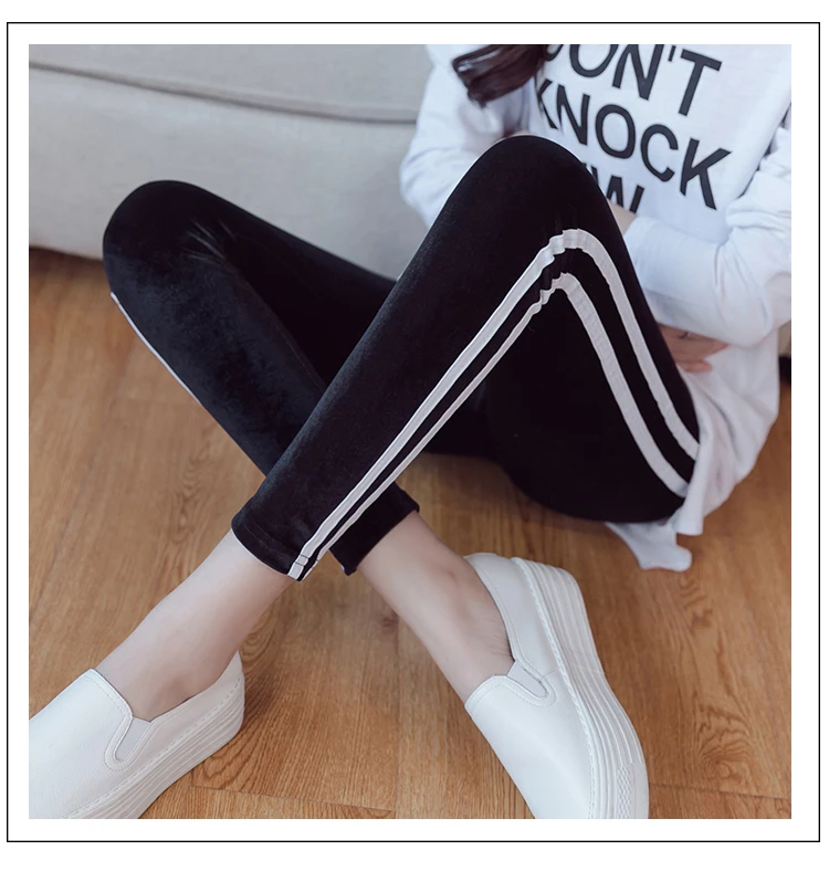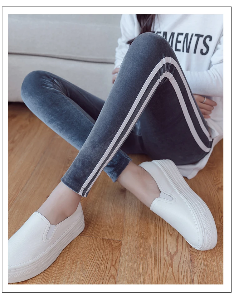 2018 Spring Summer Knitting Gold Velvet Leggings Slim was thin Women Casual Leggings Elastic Pencil Pants Ankle-Length Pants