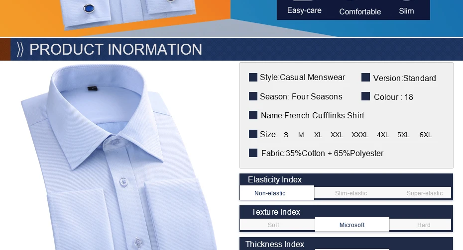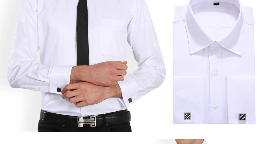 2018 Spring summer men’s Long sleeve Shirt casual menswear Men French Cuff Long Sleeves Fit Dress Shirts (Cufflink Included)