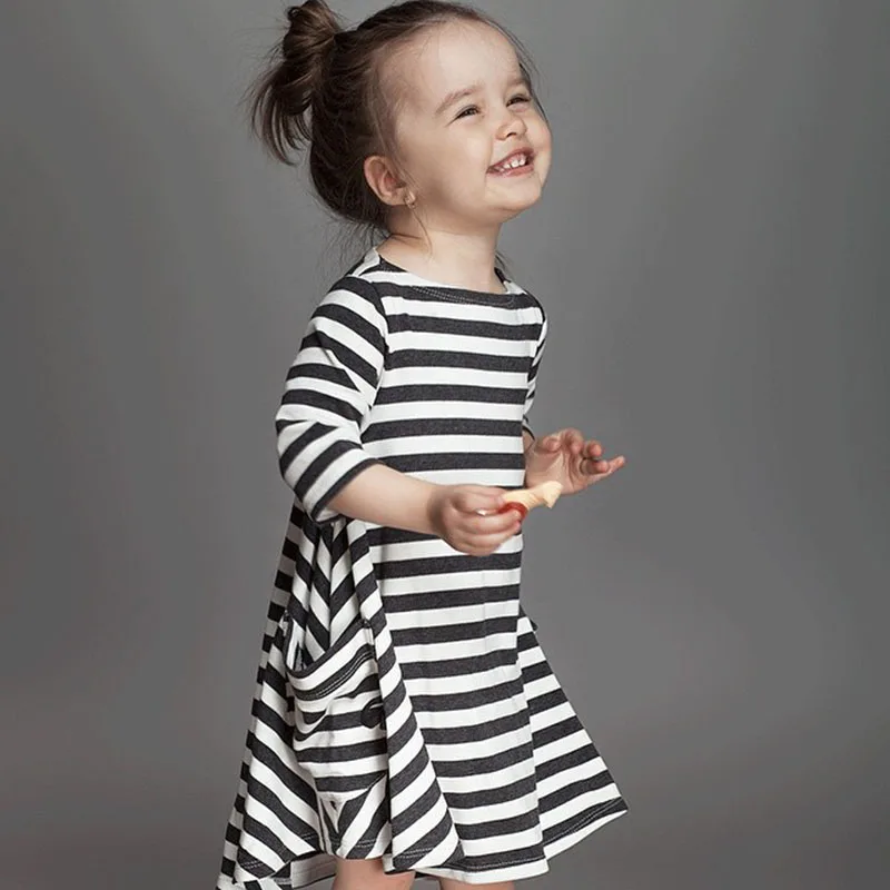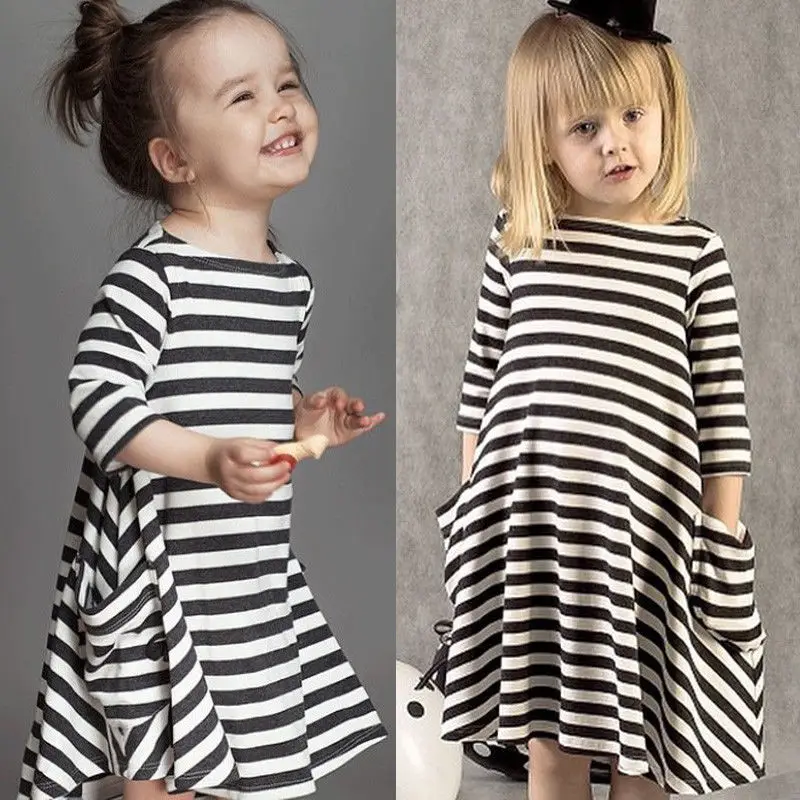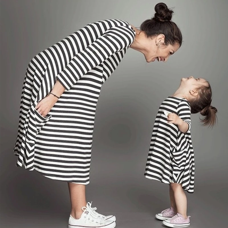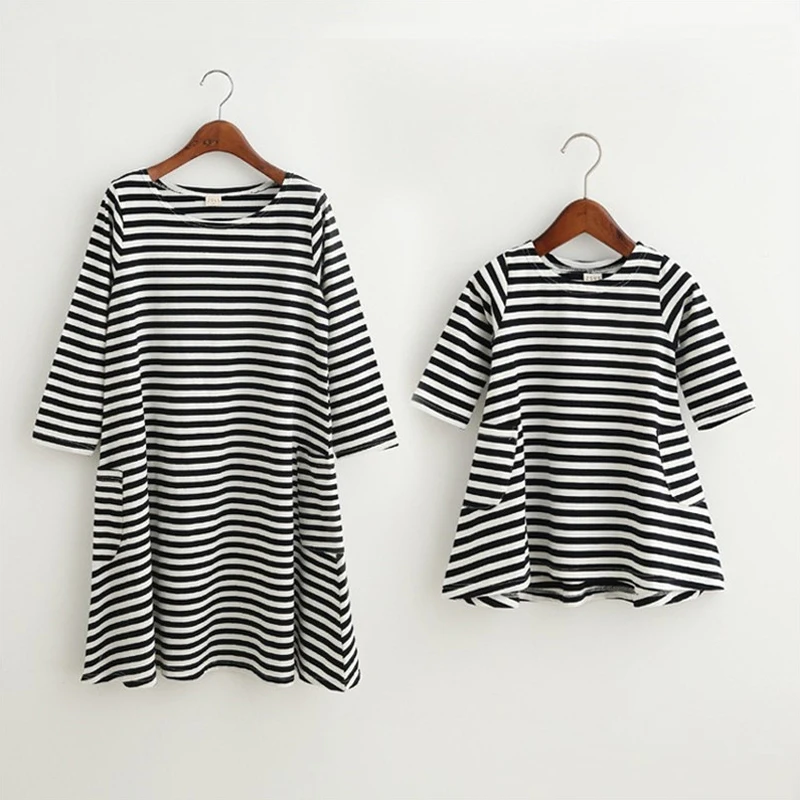 2018 Summer Autumn Vestido Mother Daughter Dresses Women 3/4 Sleeve Stripe Casual Loose Vestidos Family Clothes Girl Dress S-2XL