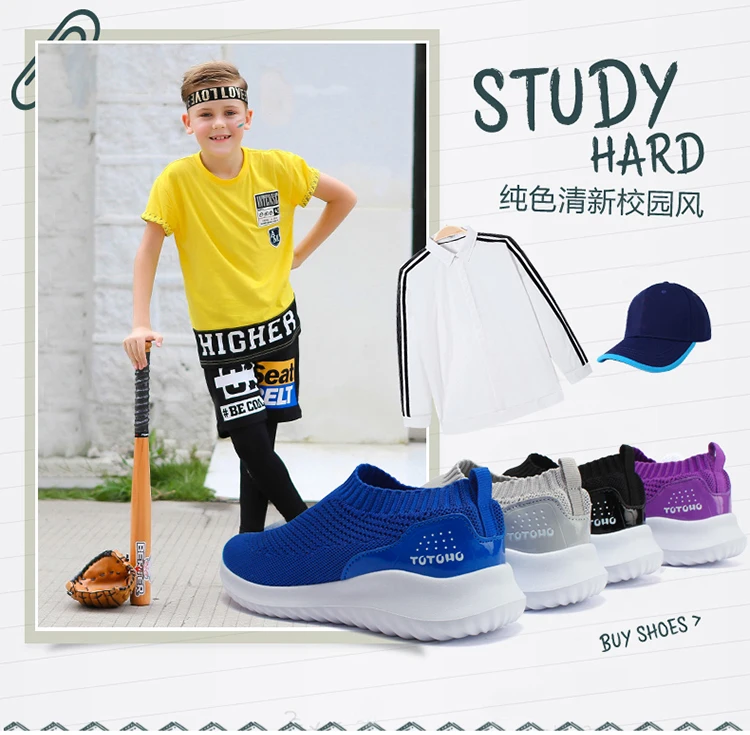 2018 Summer Breathable Boys Walking Shoes Flywire Kids Sneakers Girls Sport Shoes Easy Slip On Children’s Stretch Sock Shoe