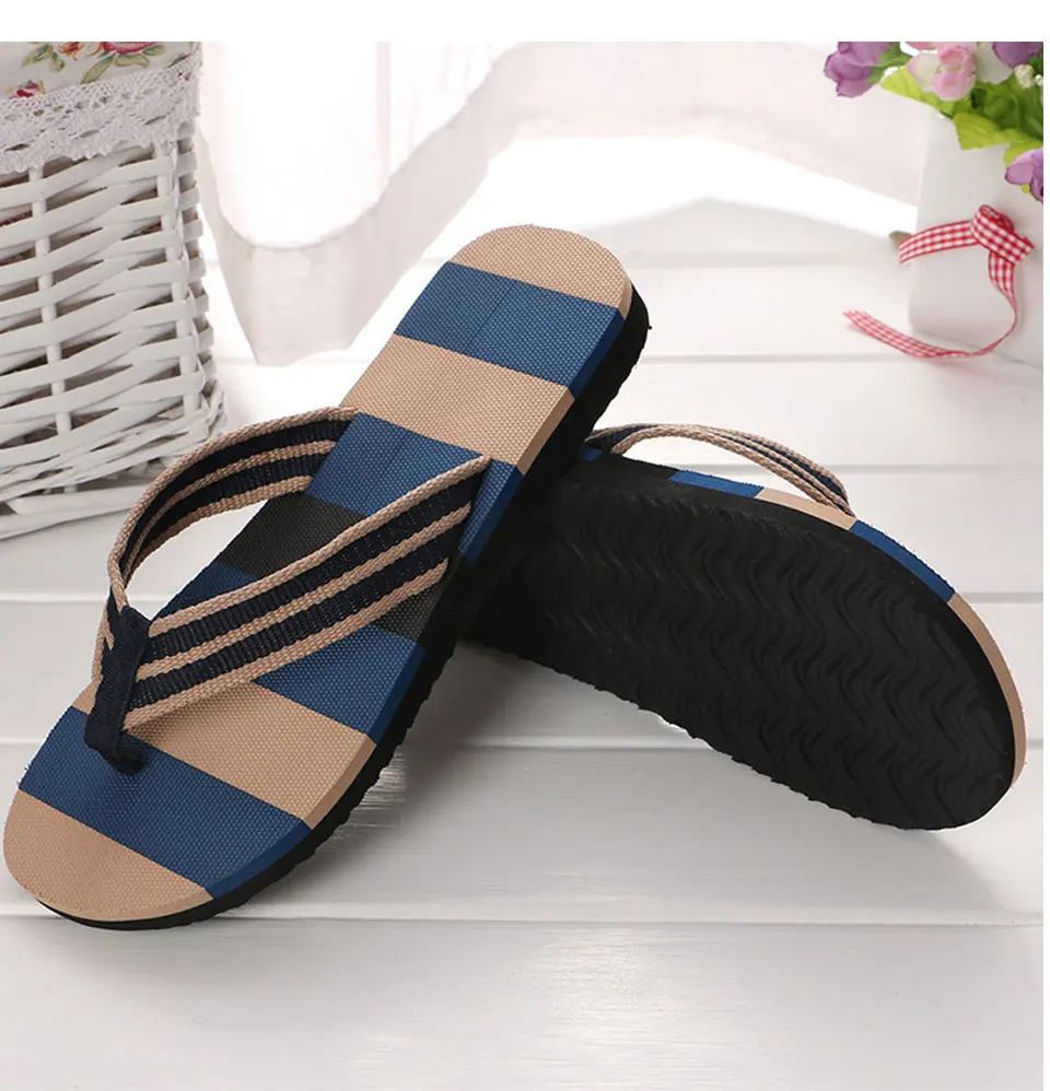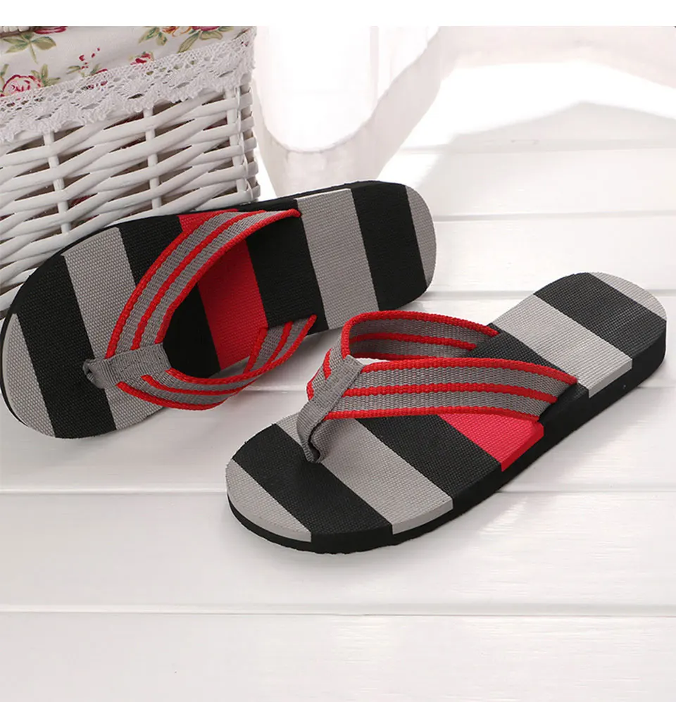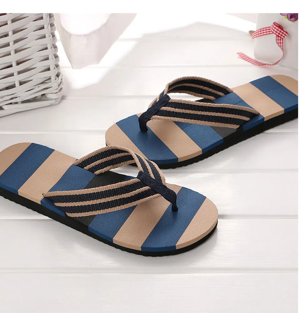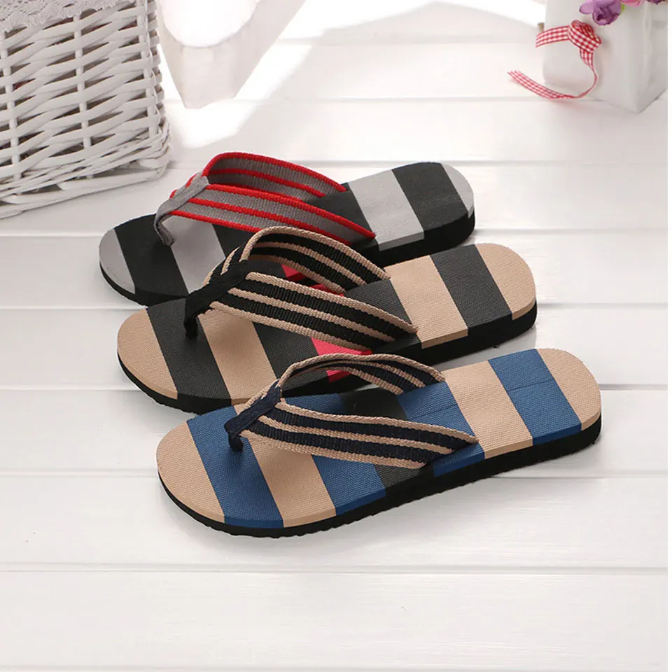 2018 Summer Casual men’s Flip Flops Flat Sandals Shoes For men Striped Flip Flops Beach Sandals Shoes Man Outside Shoes HS055