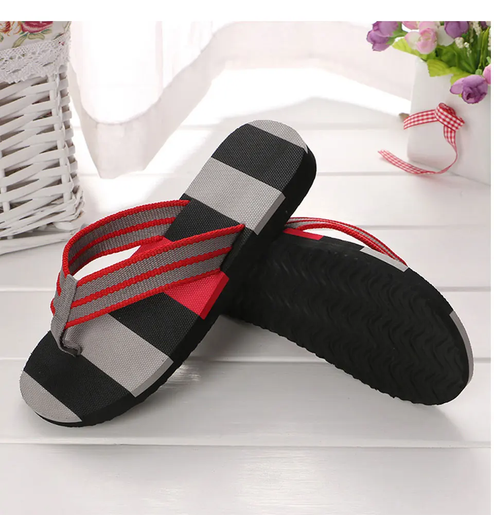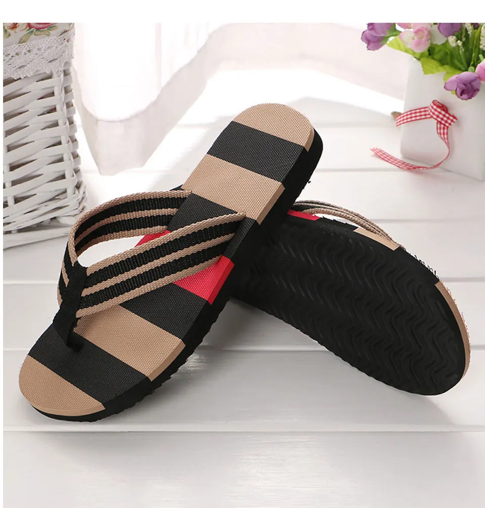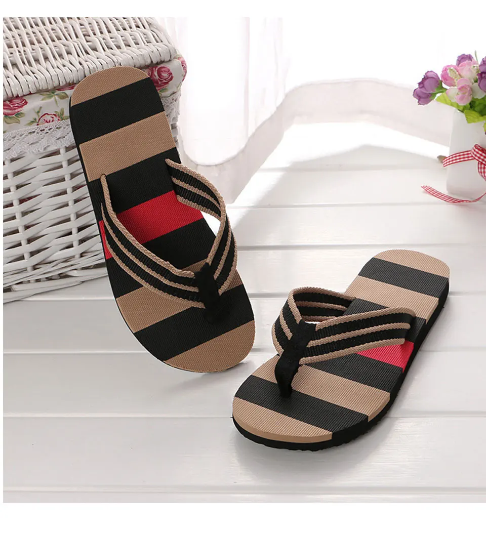 2018 Summer Casual men’s Flip Flops Flat Sandals Shoes For men Striped Flip Flops Beach Sandals Shoes Man Outside Shoes HS055