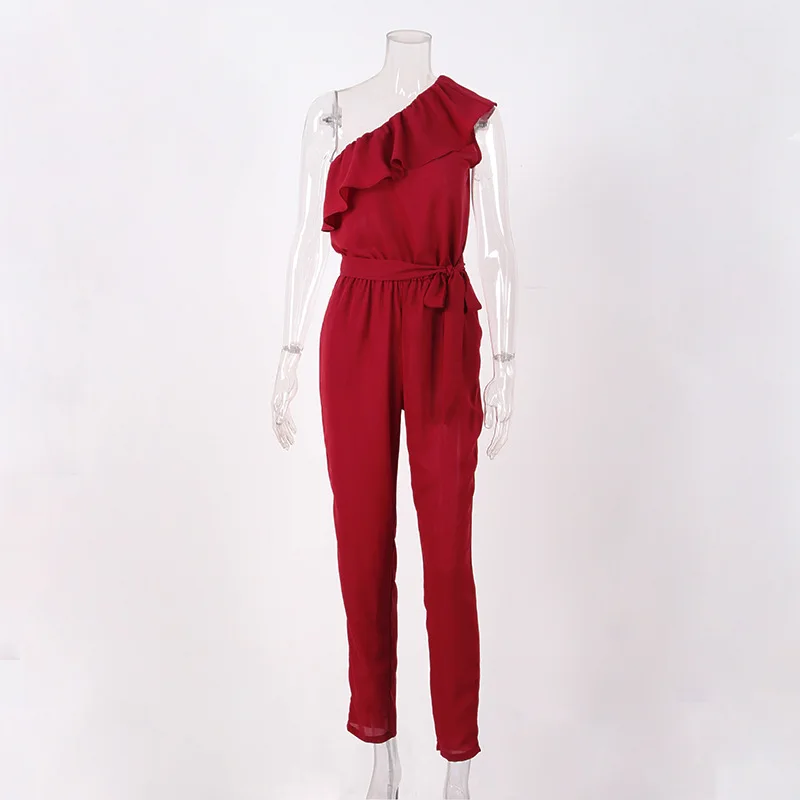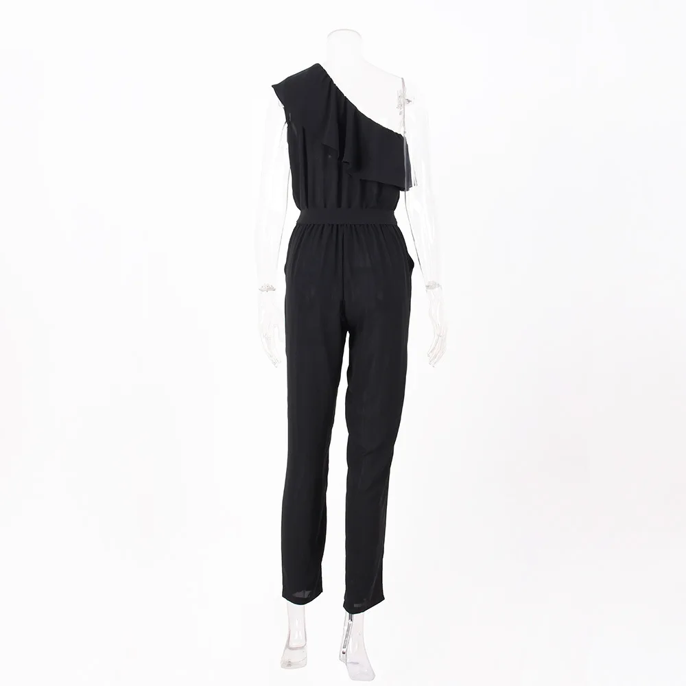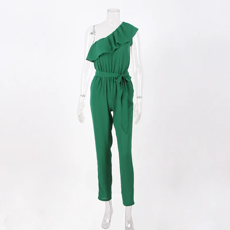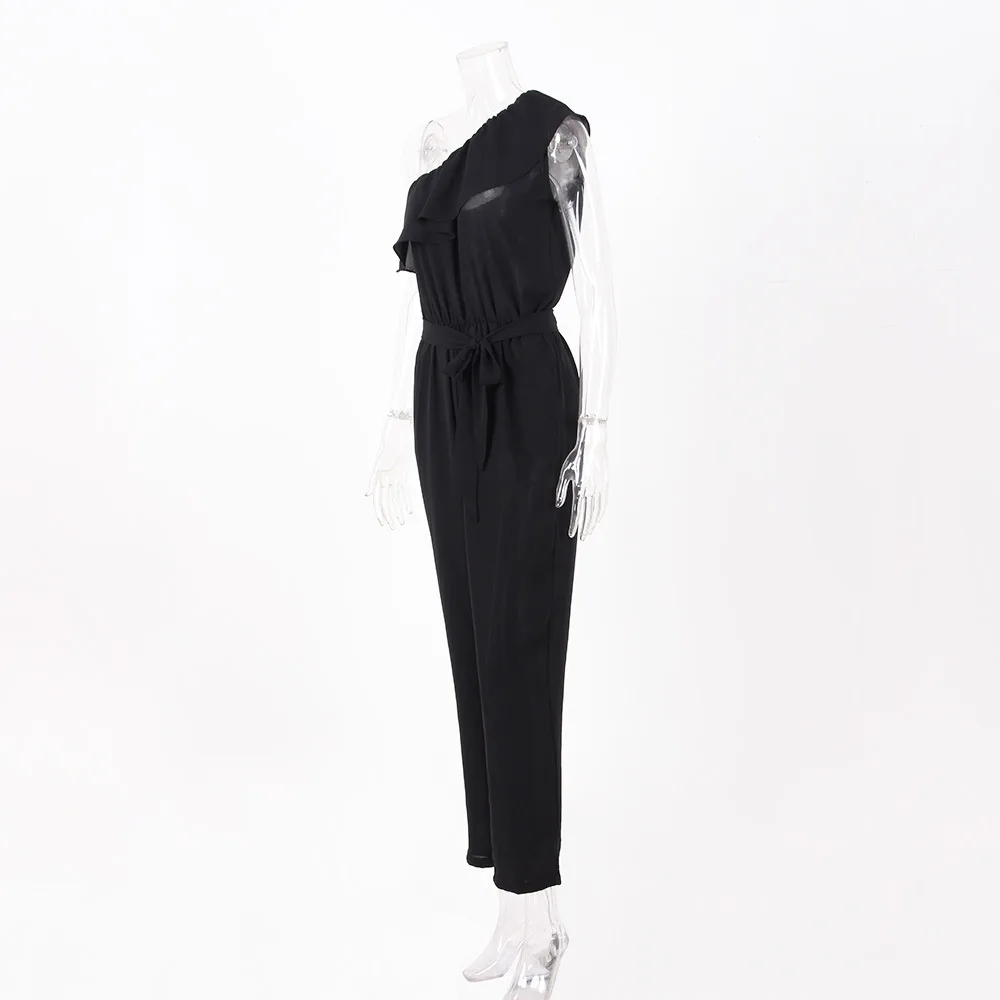 2018 summer Chiffon skinny solid jumpsuits irregular ruffles Bow tie belt jumpsuits office lady women jumpsuits