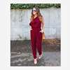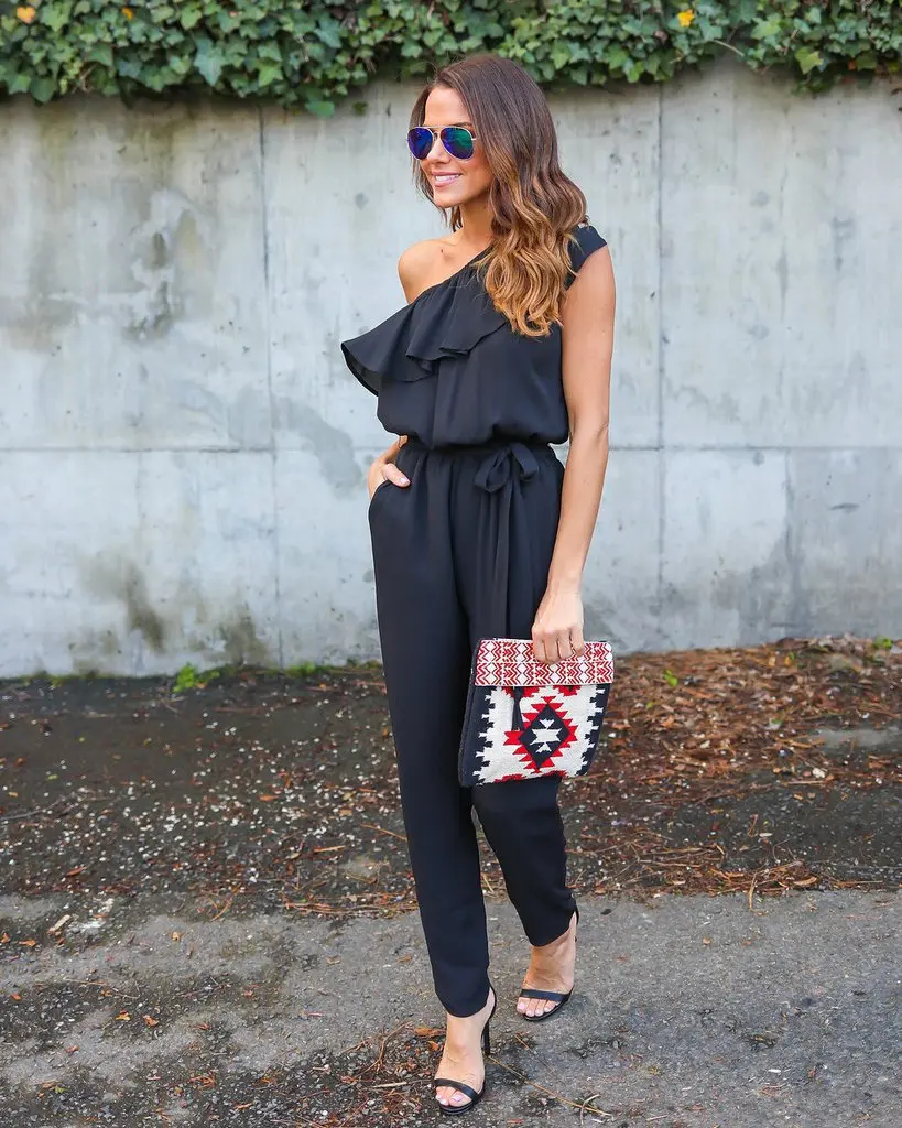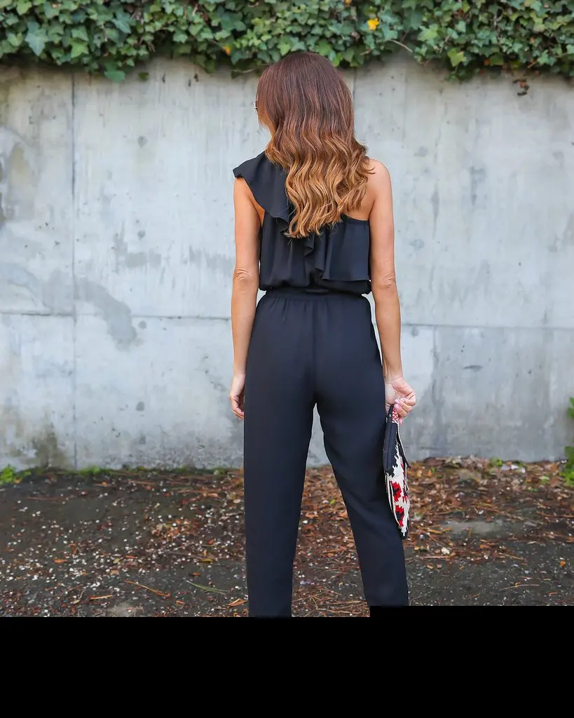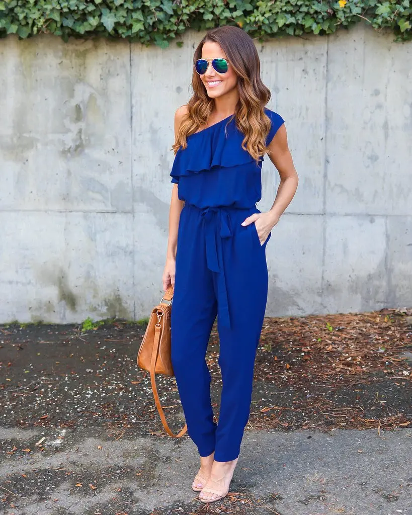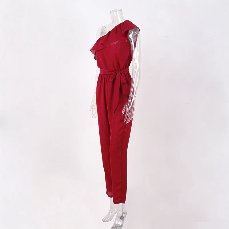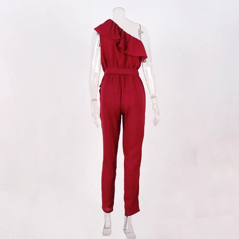 2018 summer Chiffon skinny solid jumpsuits irregular ruffles Bow tie belt jumpsuits office lady women jumpsuits