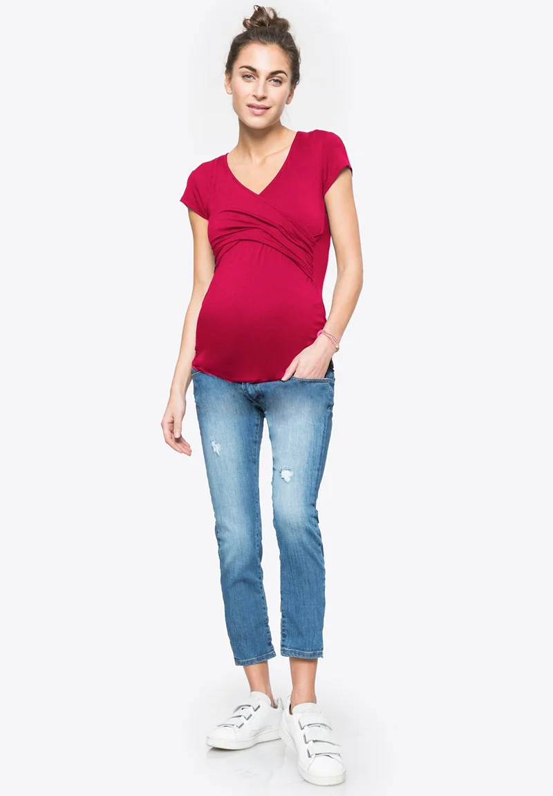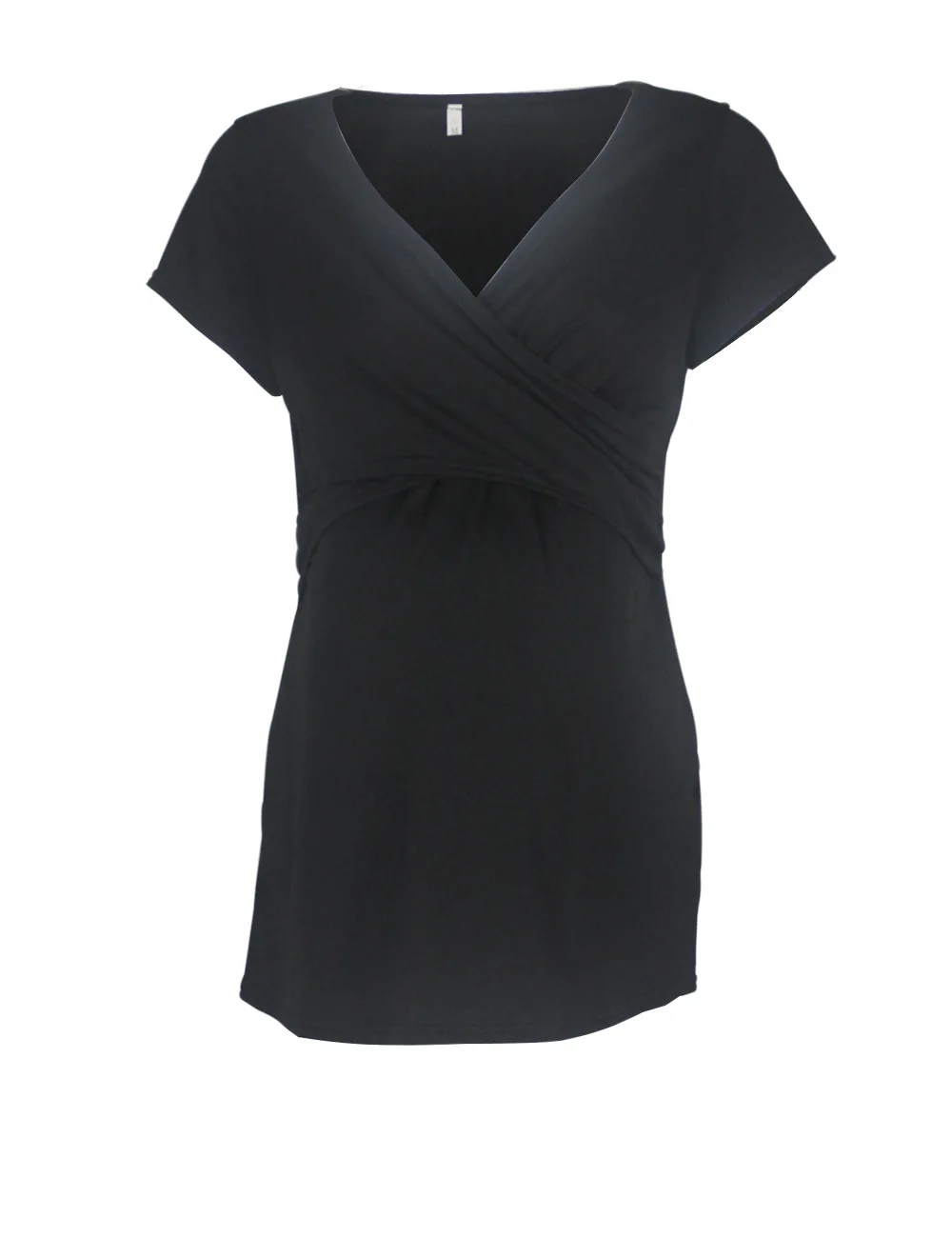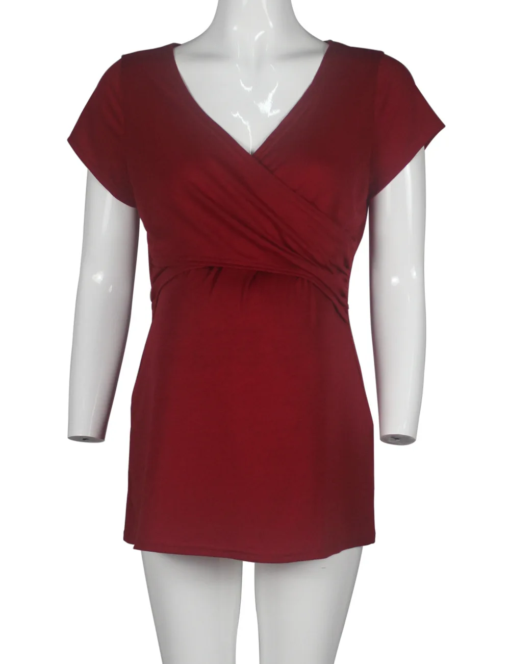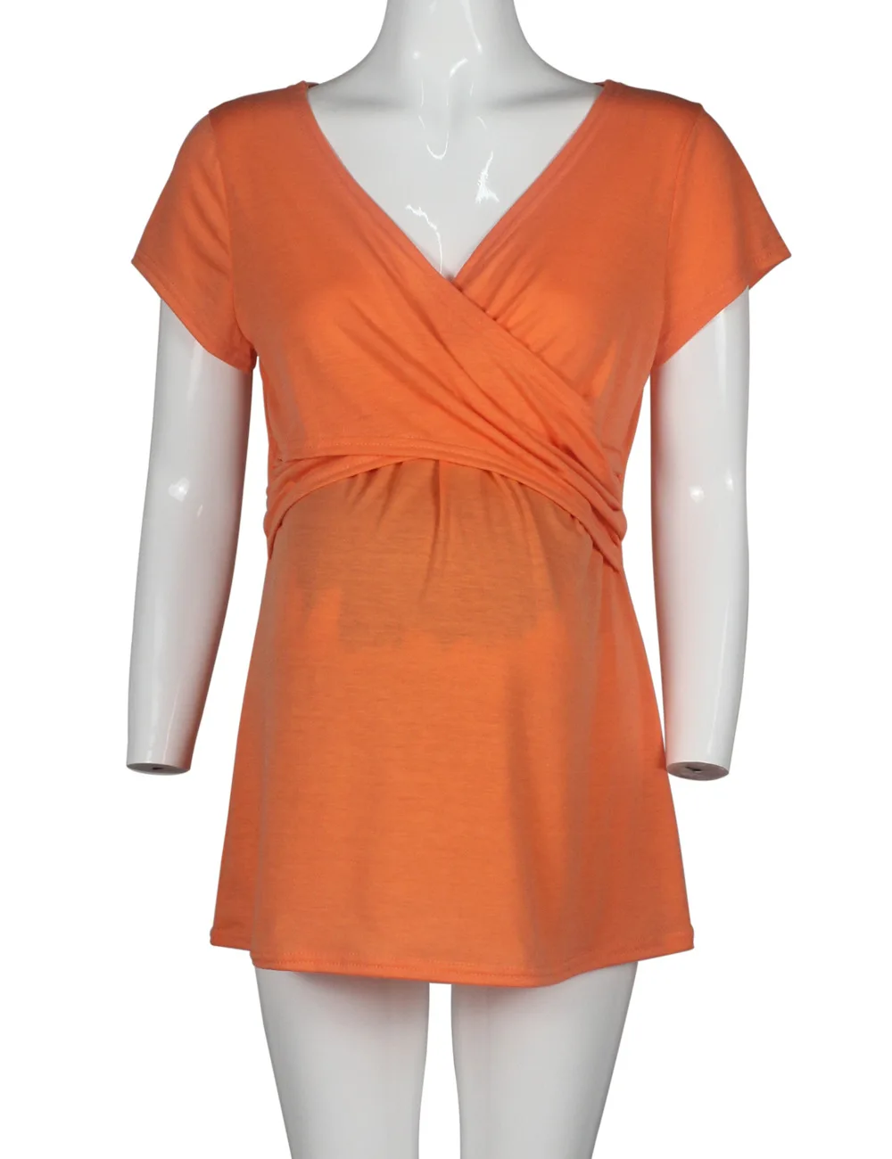 2018 Summer Fashion Solid Color Women Nursing Top Maternity T-shirts Mothers Breastfeeding Clothes Black Rose Orange Green 2xl