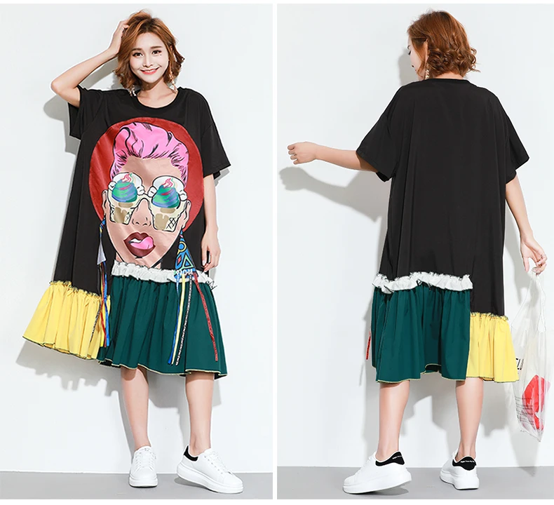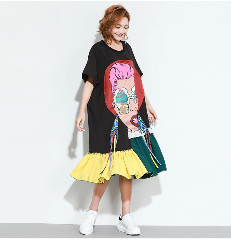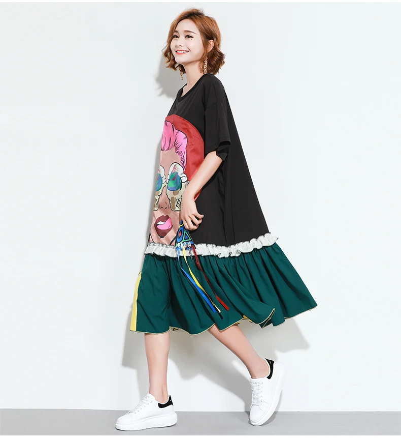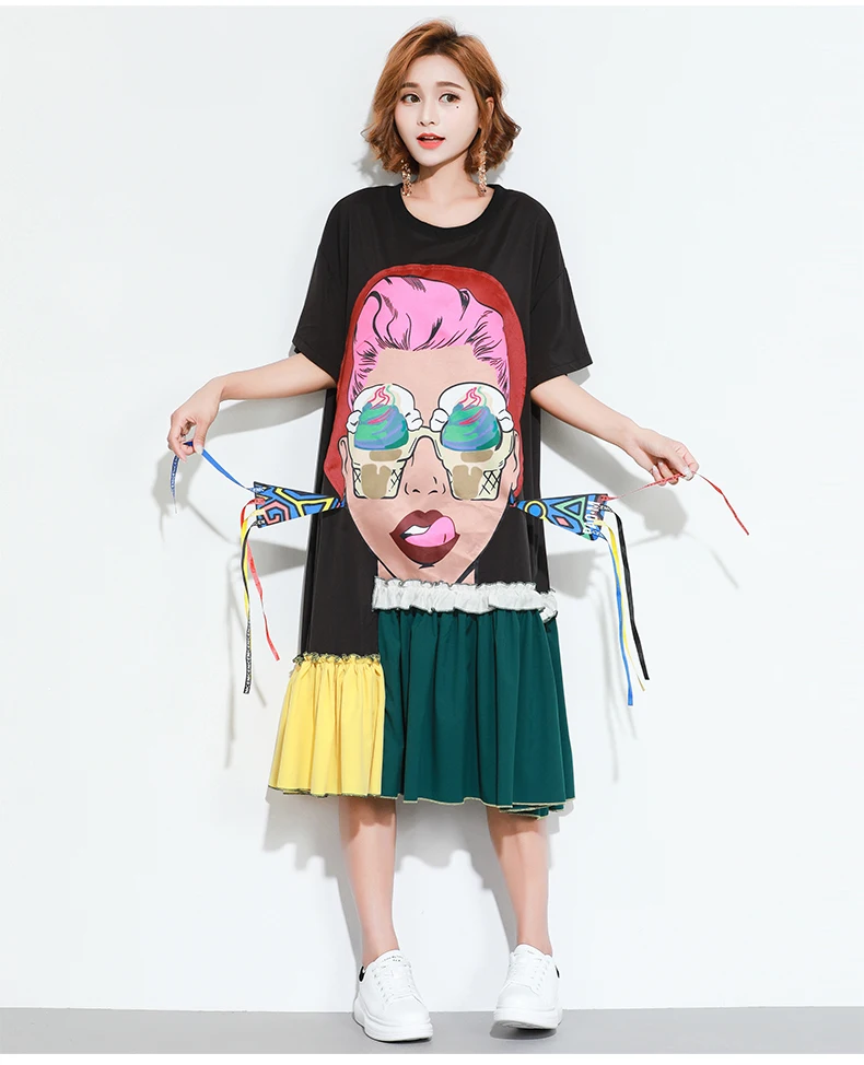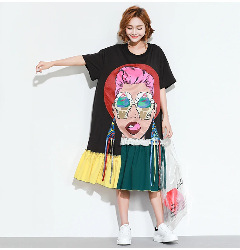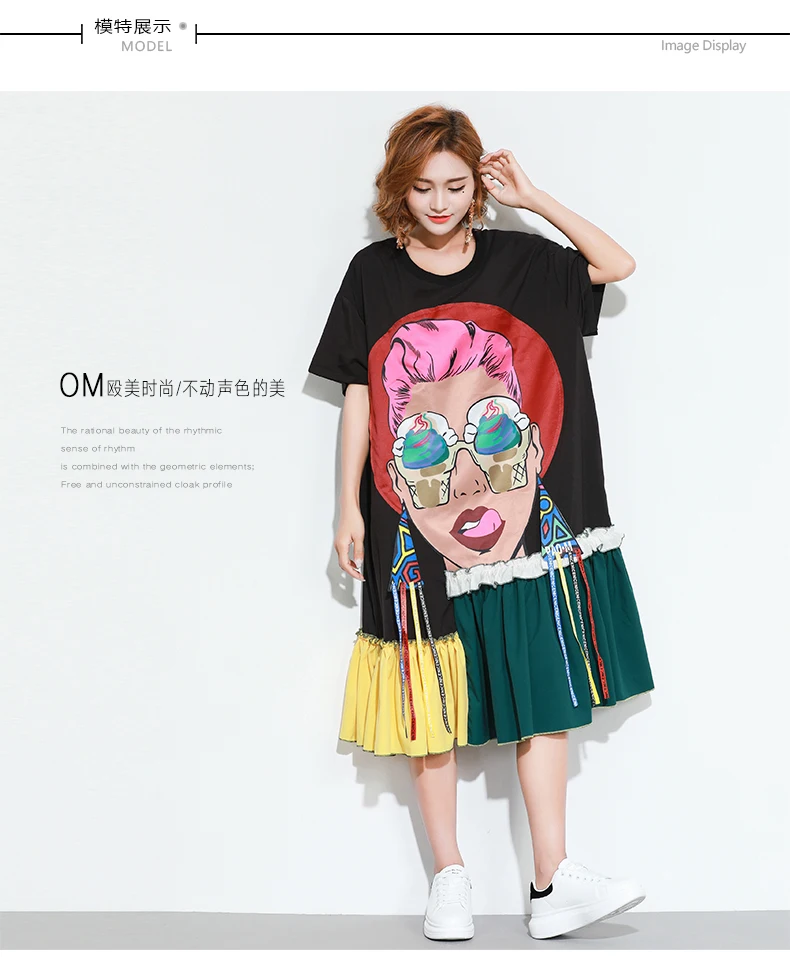 2018 Summer Korean Style Women Dress O Neck Patchwork Fashion Casual Elegance Sweet Tassel Pullovers Loose Dresses Hots D89223Q
