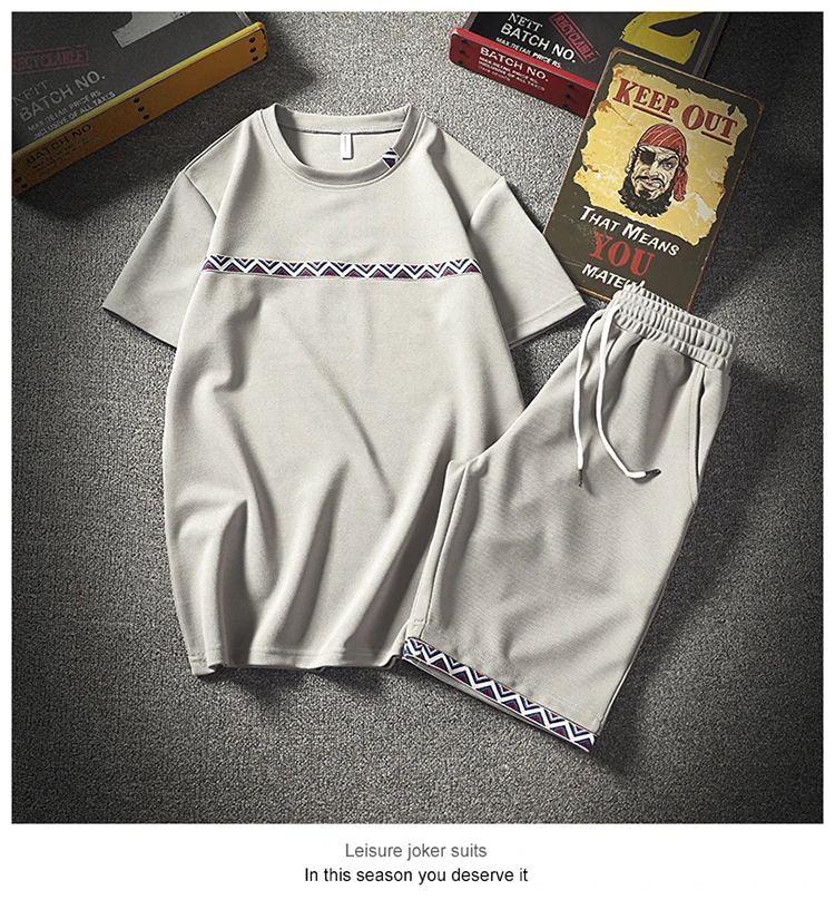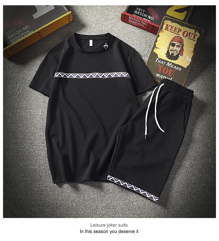 2018 Summer Men Set Sporting Suit Men Short Sleeve T shirt+Shorts Two Piece Fitness Set Sweat Suit Fashion Casual Tracksuit Men