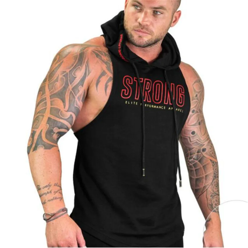 2018 Summer Men’s Tank Top Hoodie Fitness Bodybuilding Muscle Cut Stringer Crossfit Workout Tank Top Activewear Male
