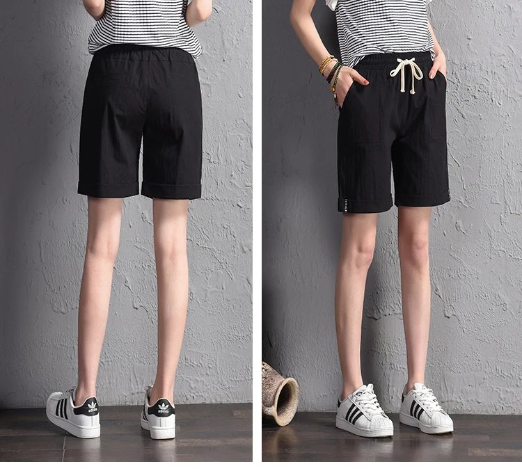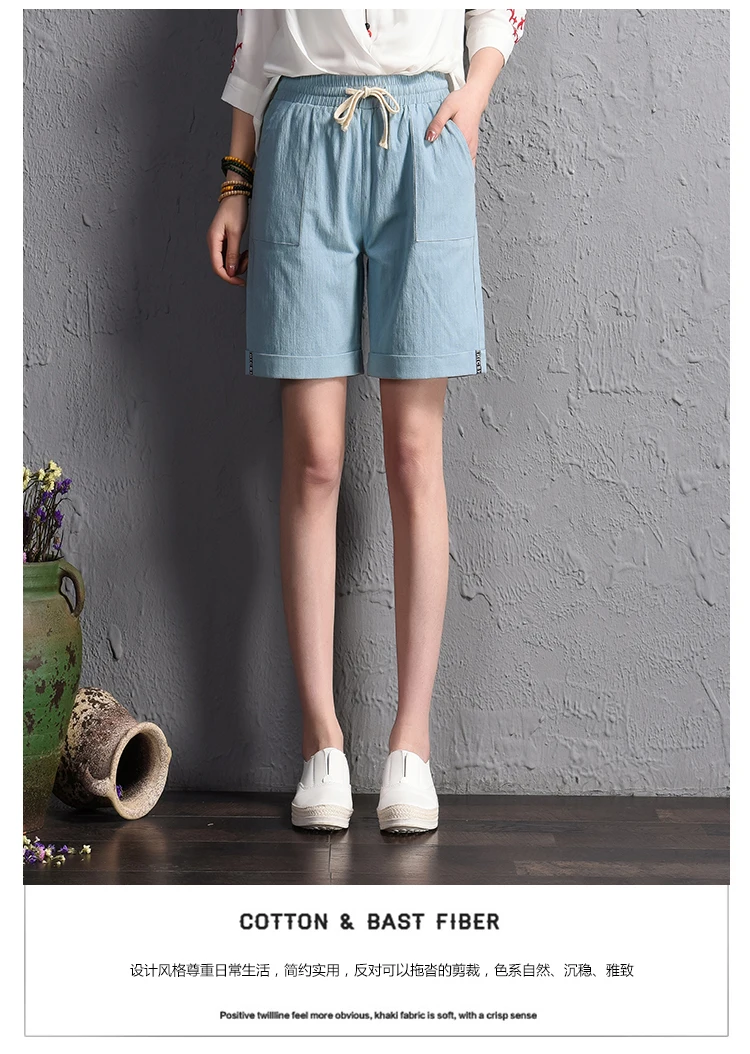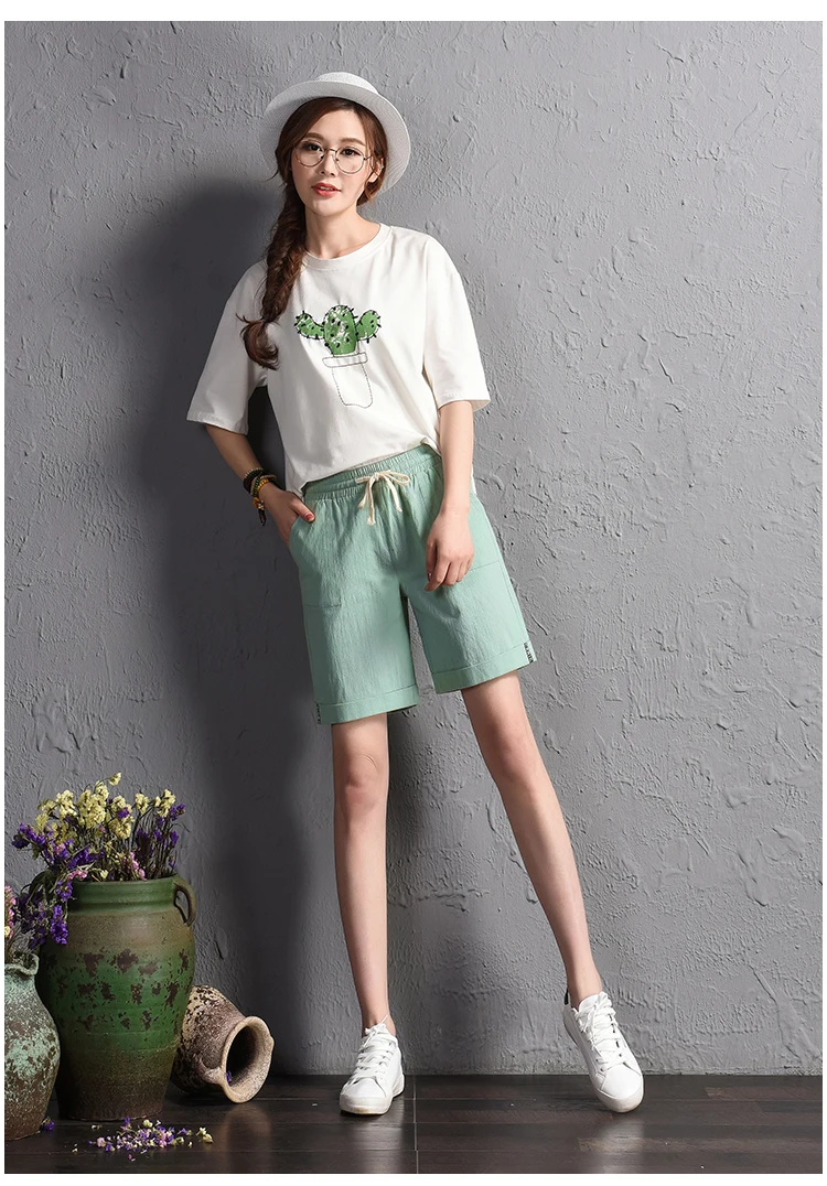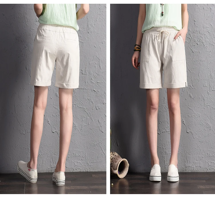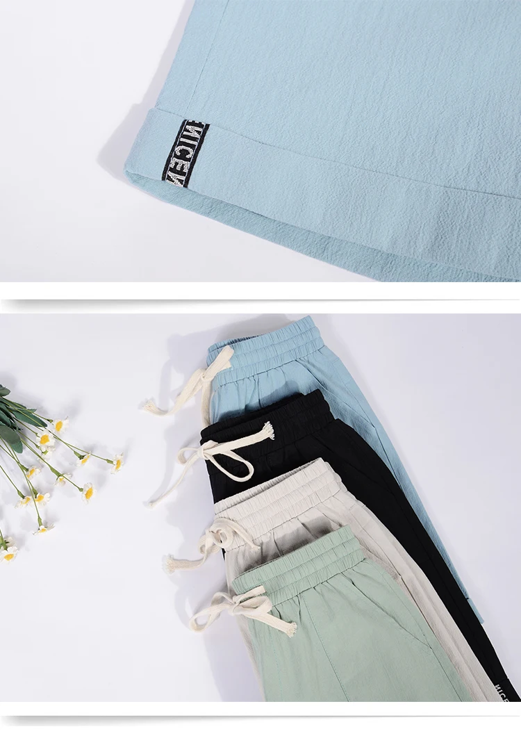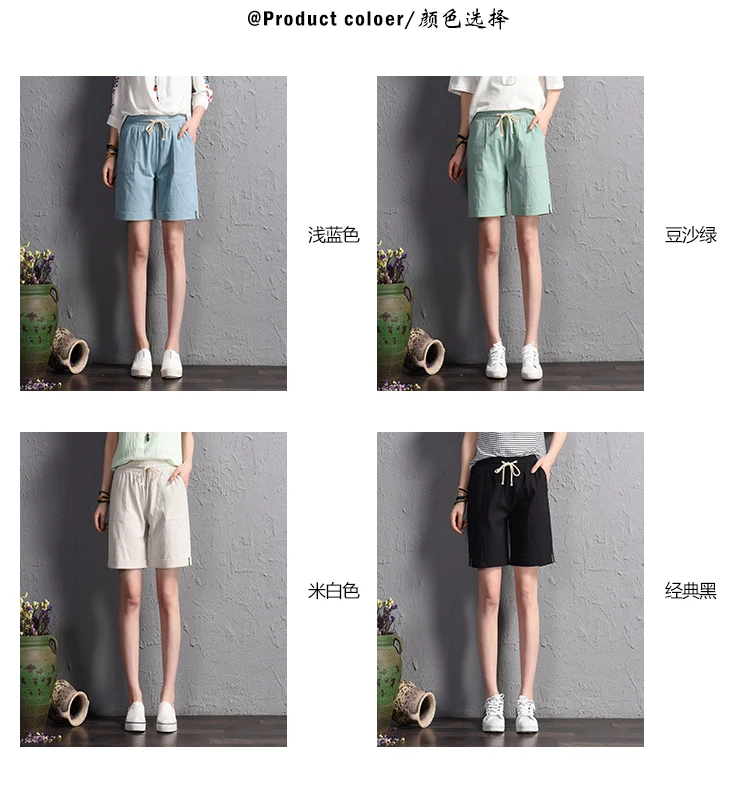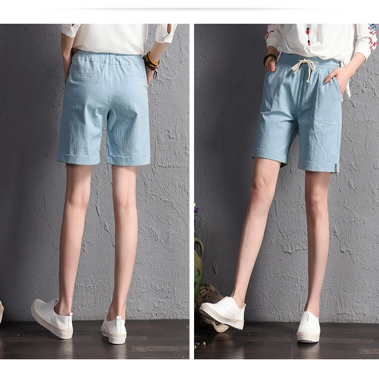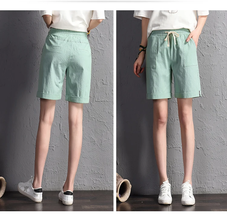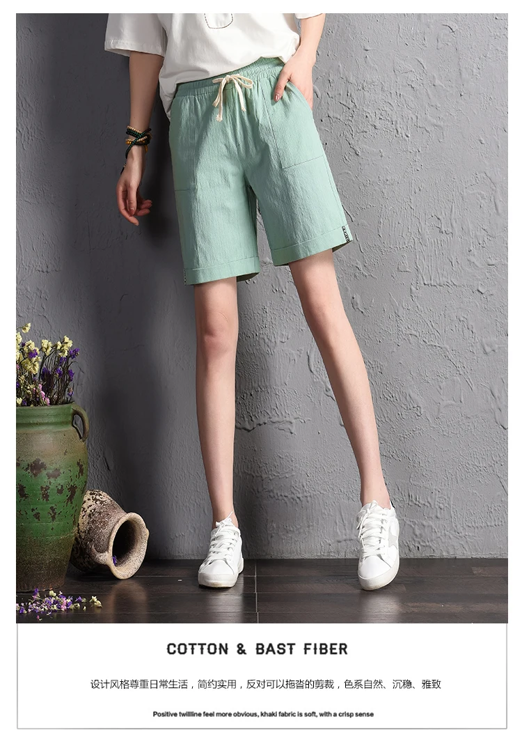 2018 summer new loose large size casual shorts Female fashion cotton and linen short Candy color plus size shorts girls