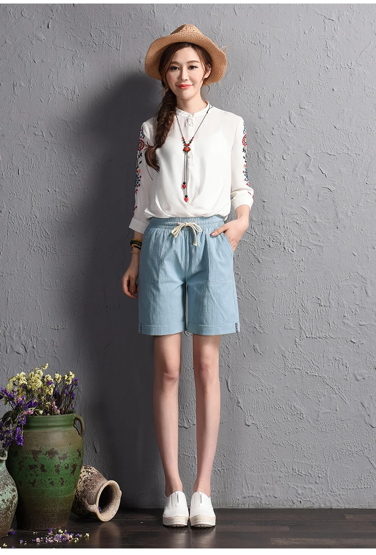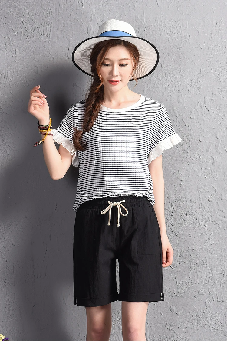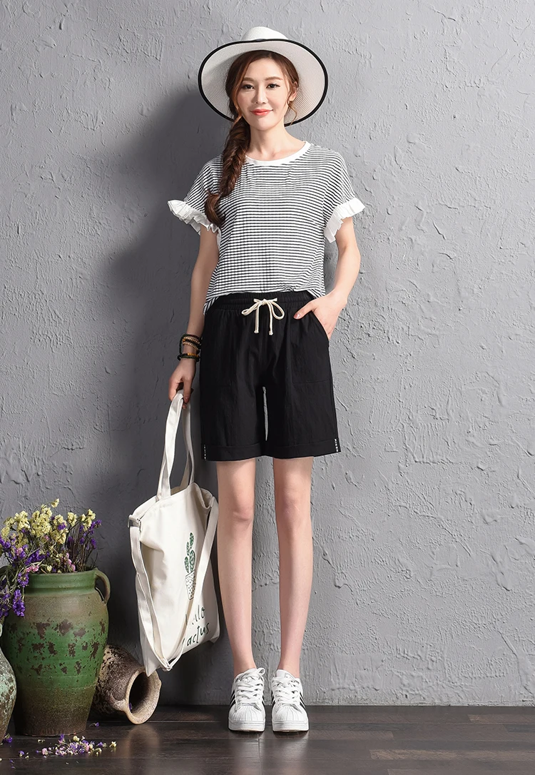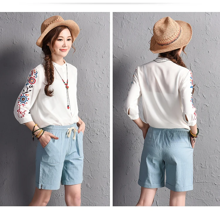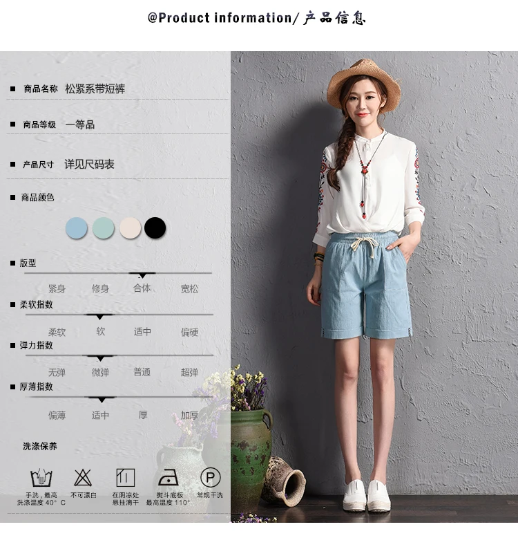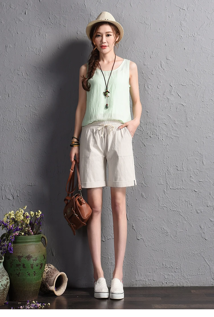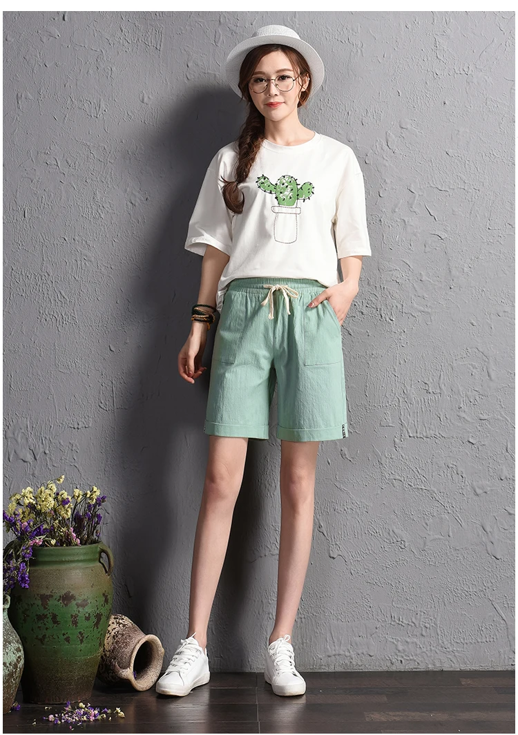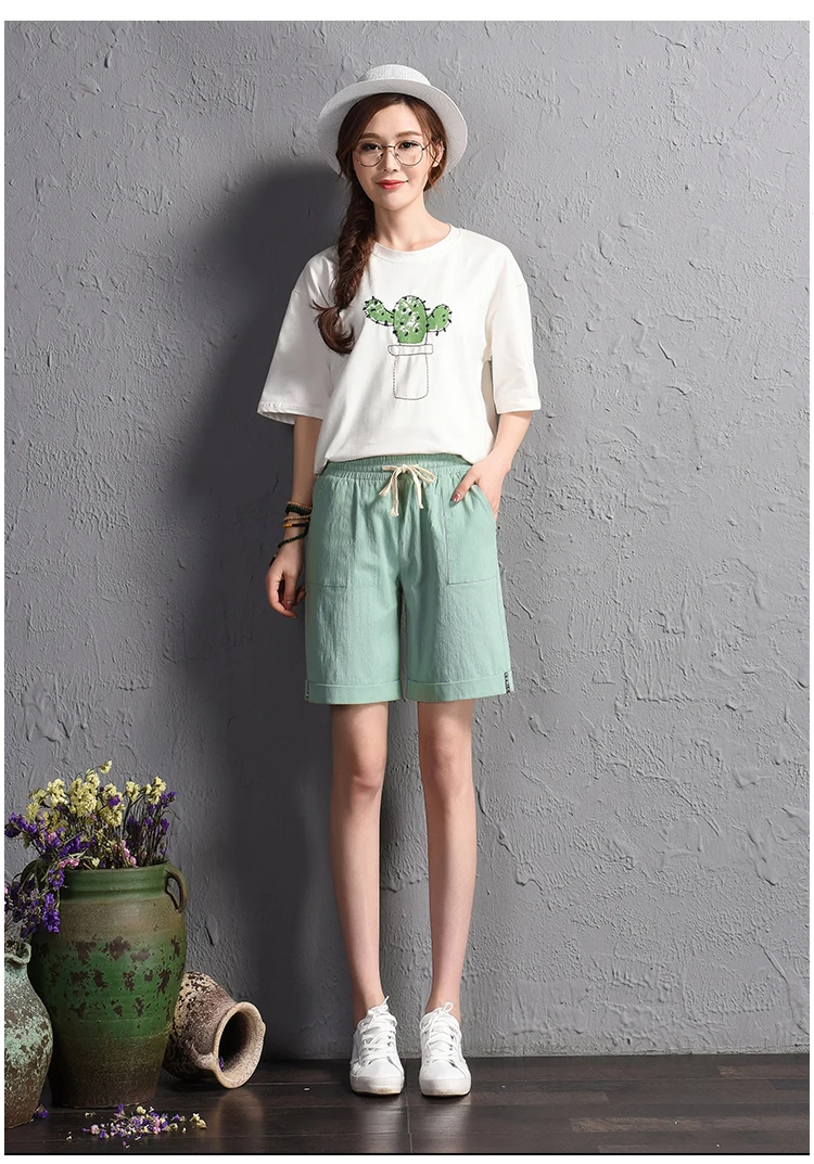 2018 summer new loose large size casual shorts Female fashion cotton and linen short Candy color plus size shorts girls