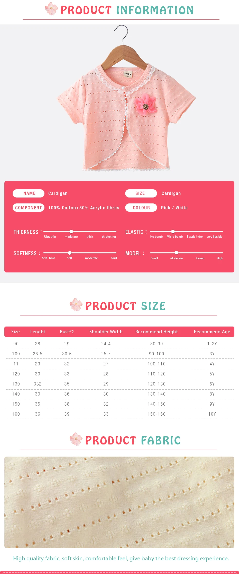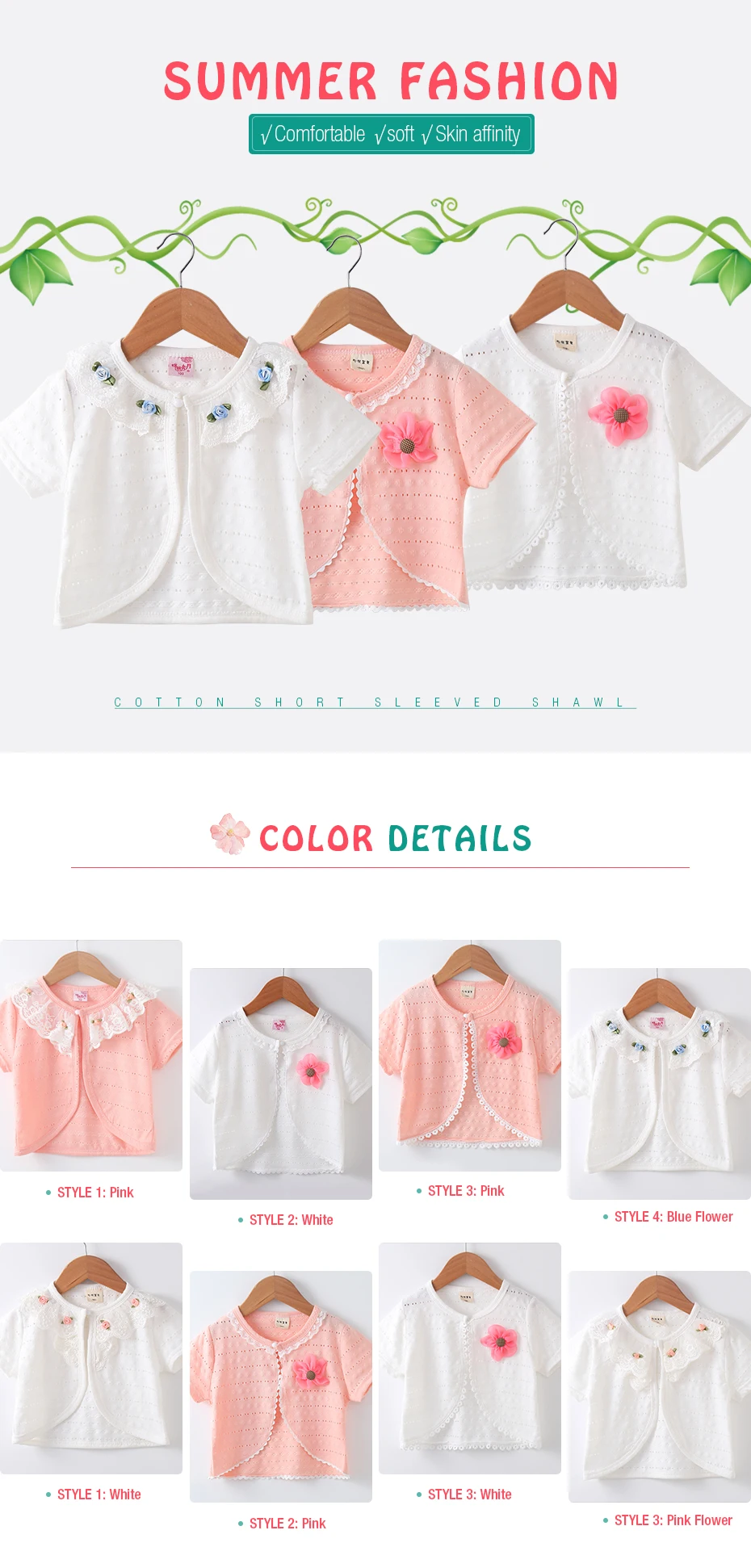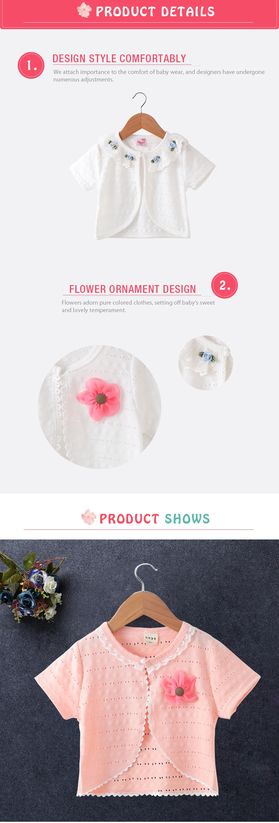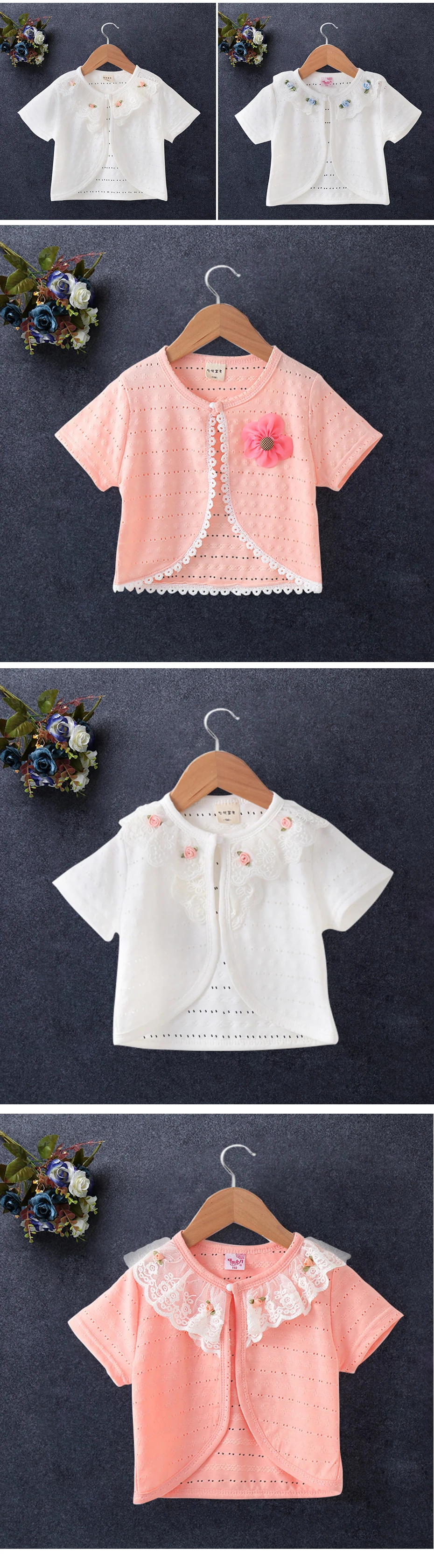 2018 Summer pure cotton girls short cardigan 2 colors short sleeves coat for baby girls floral appliques dress cardigan KC-1853