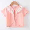 2018 Summer pure cotton girls short cardigan 2 colors short sleeves coat for baby girls floral appliques dress cardigan KC-1853